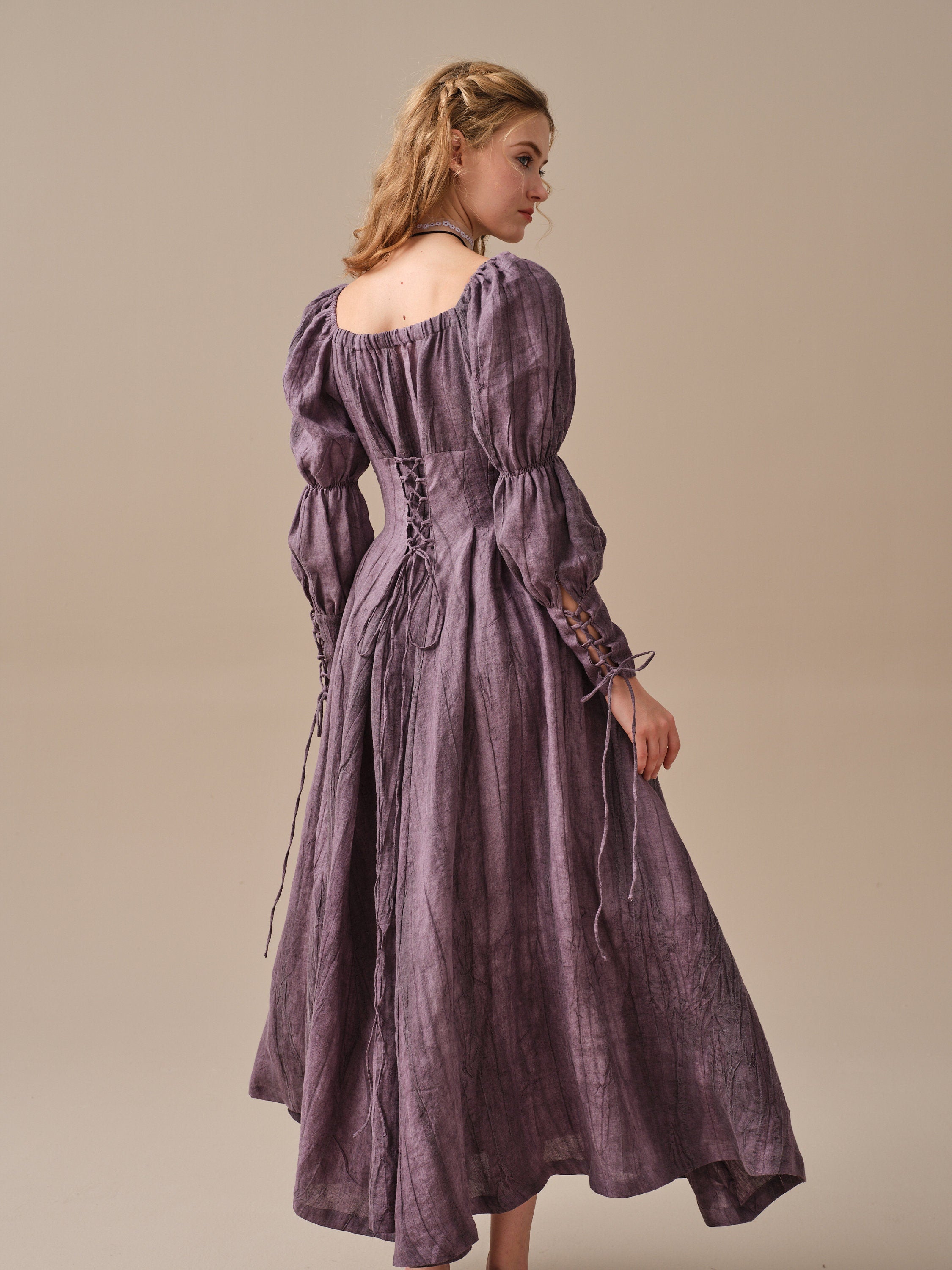 The colors in Teal green, DarkOrchid and Wheat color is made of tie-dyed linen. Other colors are made of yarn-dyed linen.