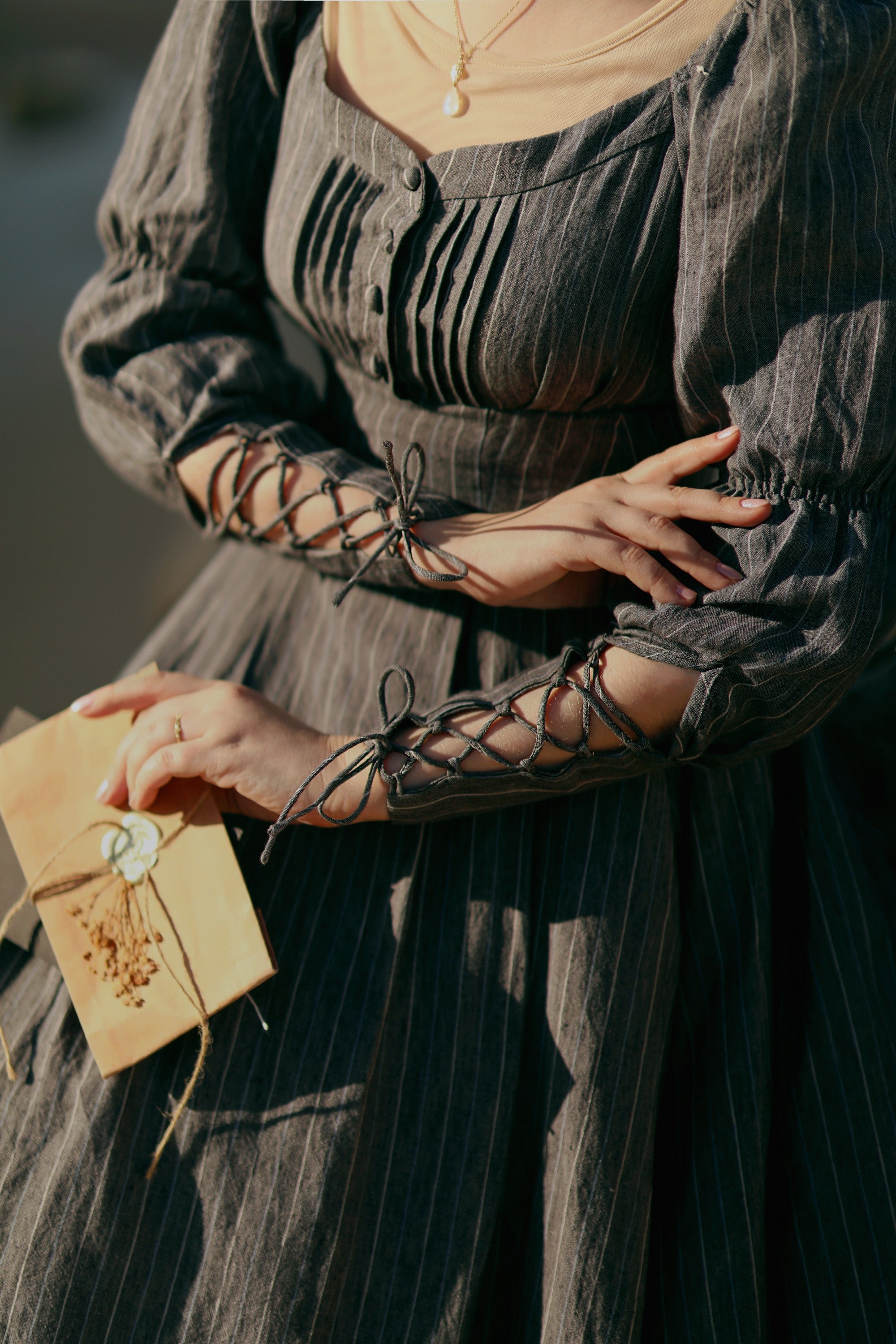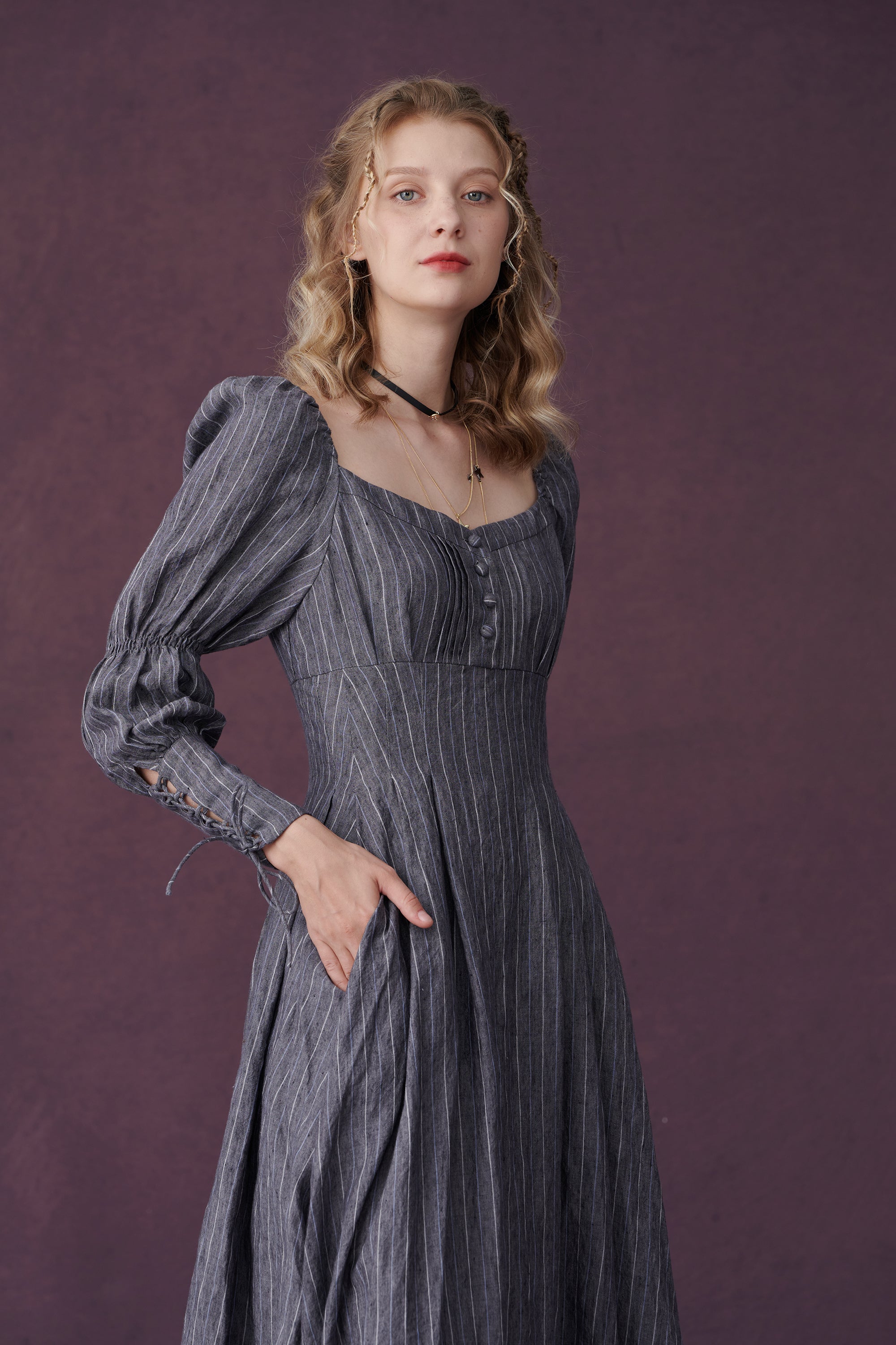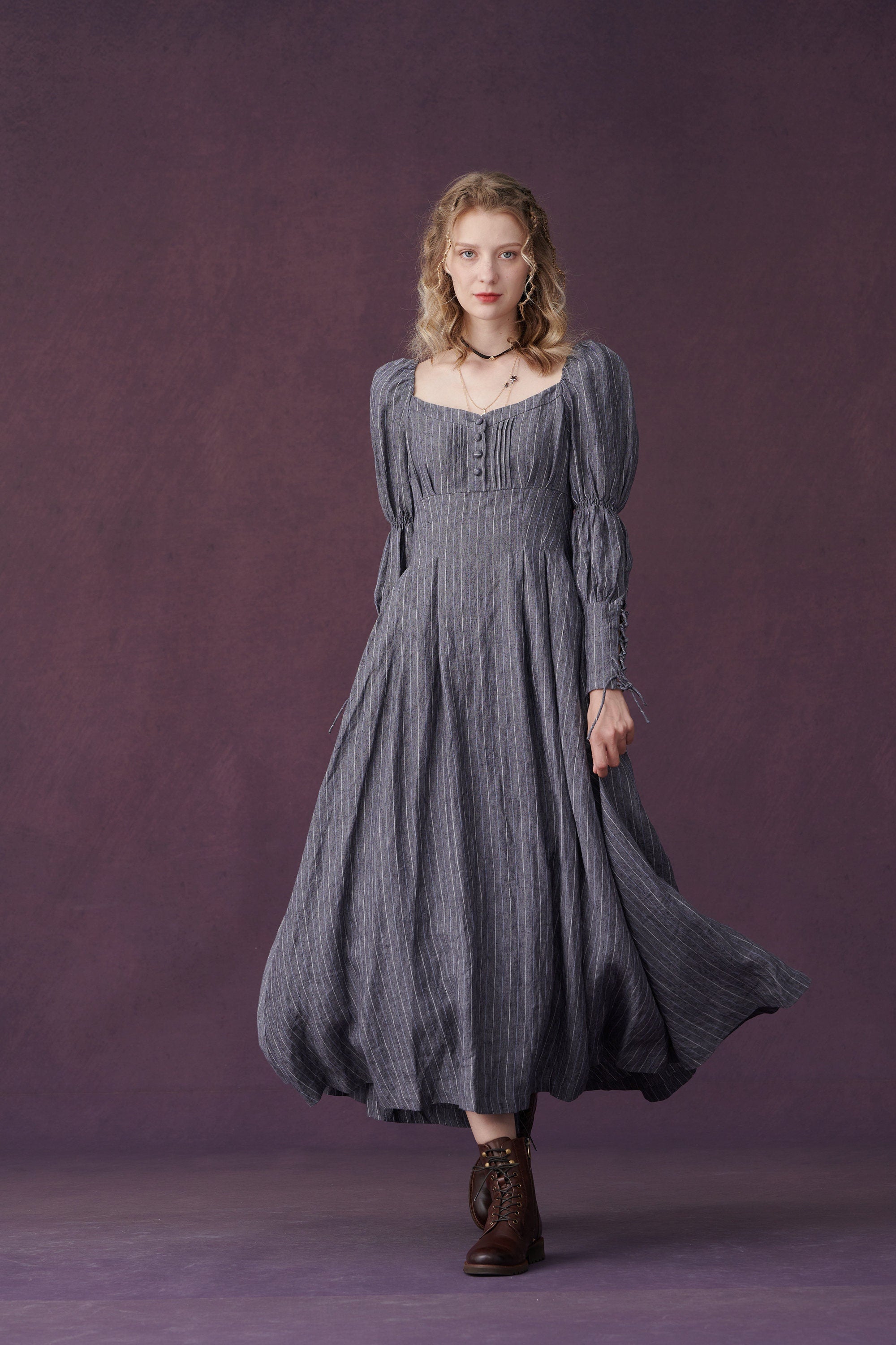 This dress from linennaive draws inspiration from Regency-era art and design. Equal parts elegantly feminine and cool, this linen dress will surely make a sophisticated addition to your wardrobe.