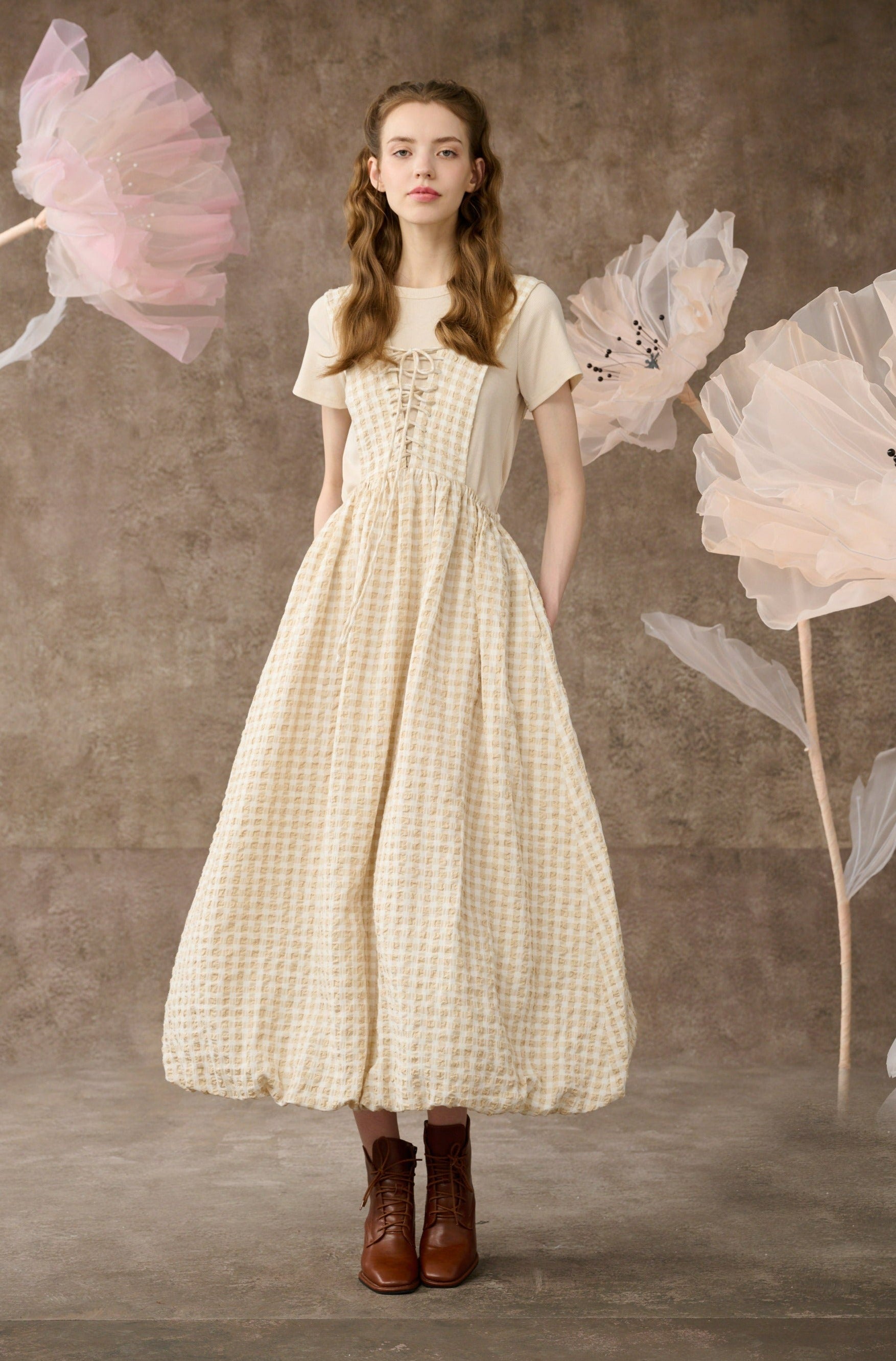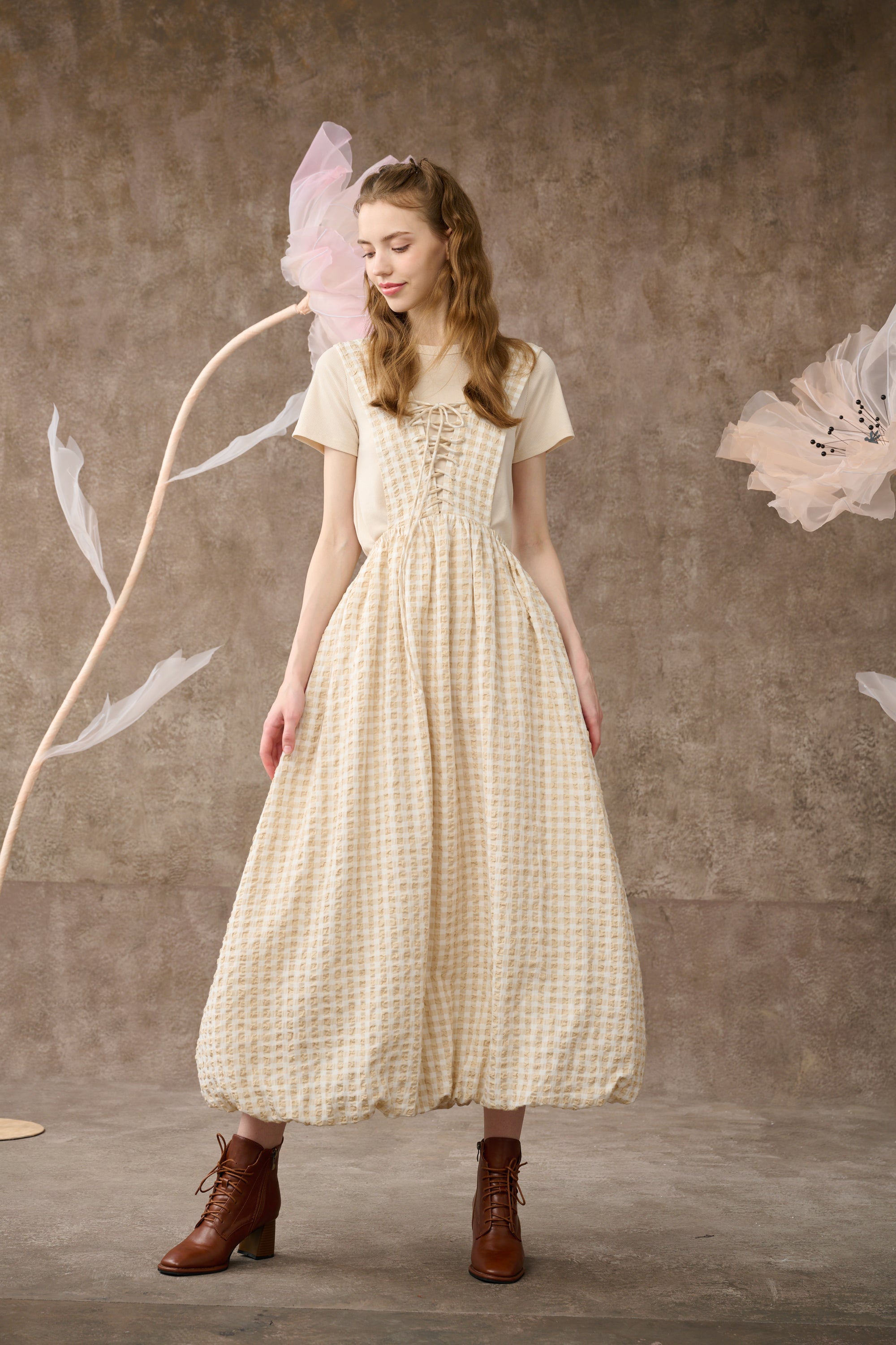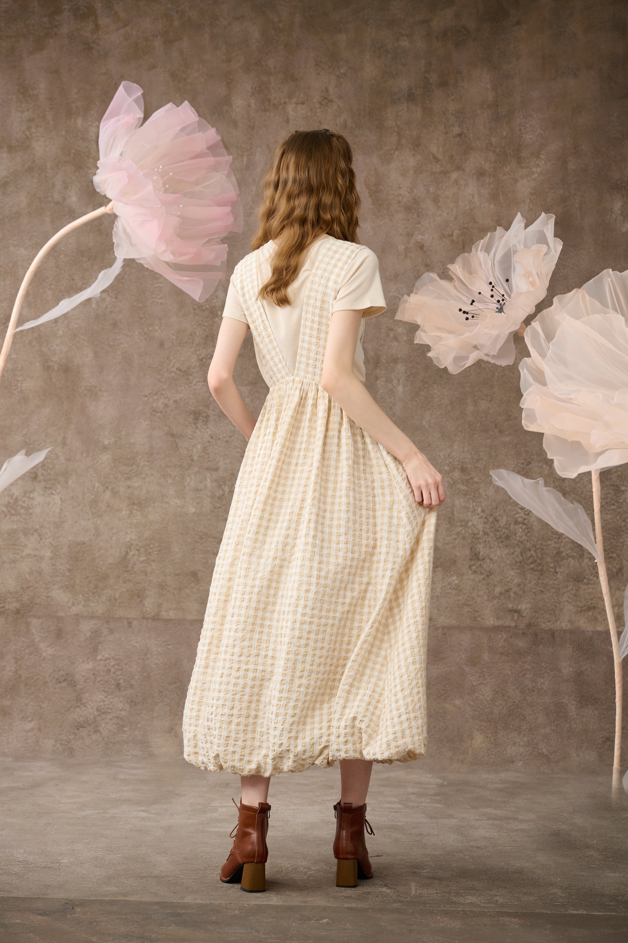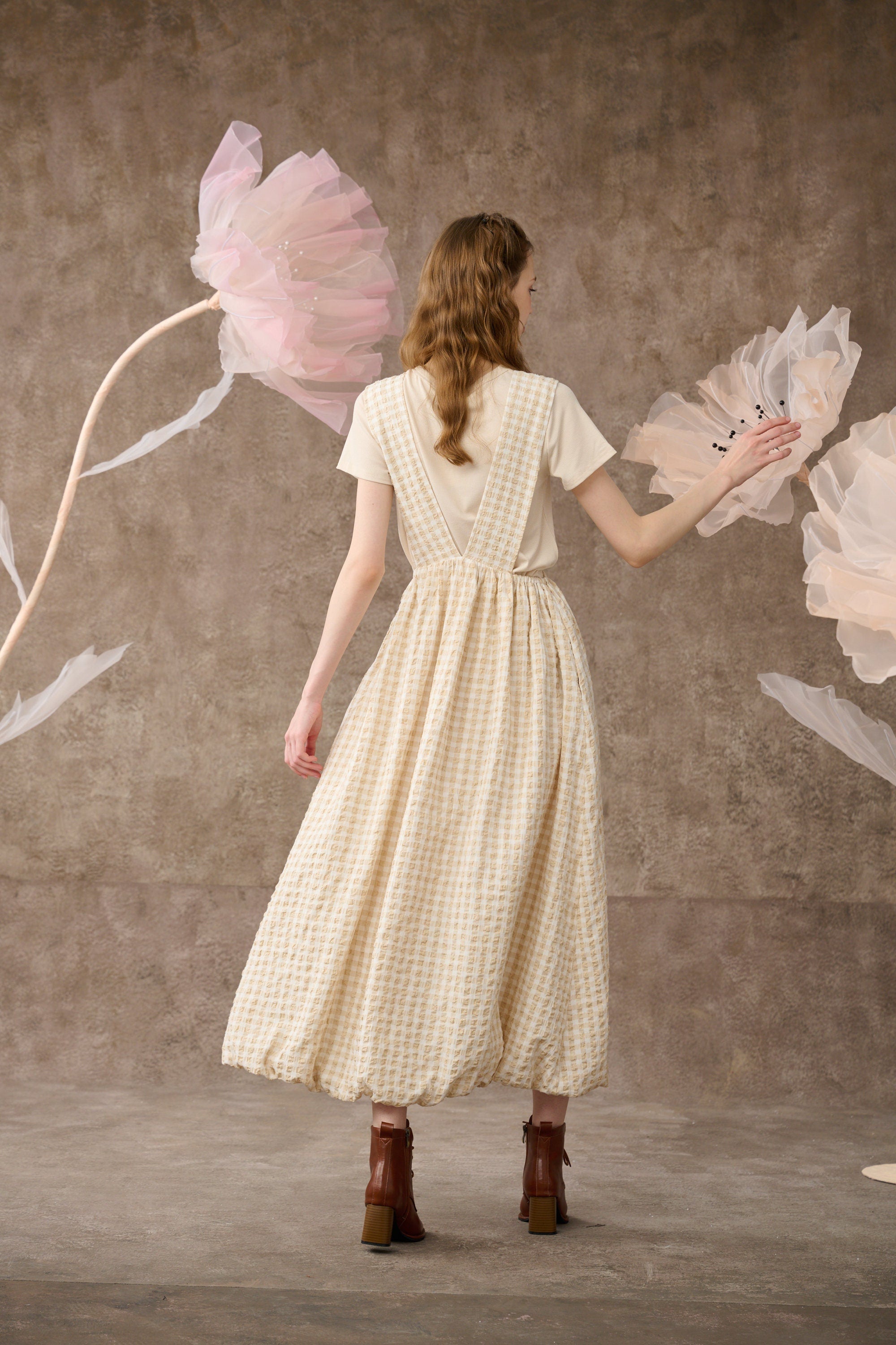 Inspired by romantic aesthetics, Linennaive presents this pinafore dress for the new collection.