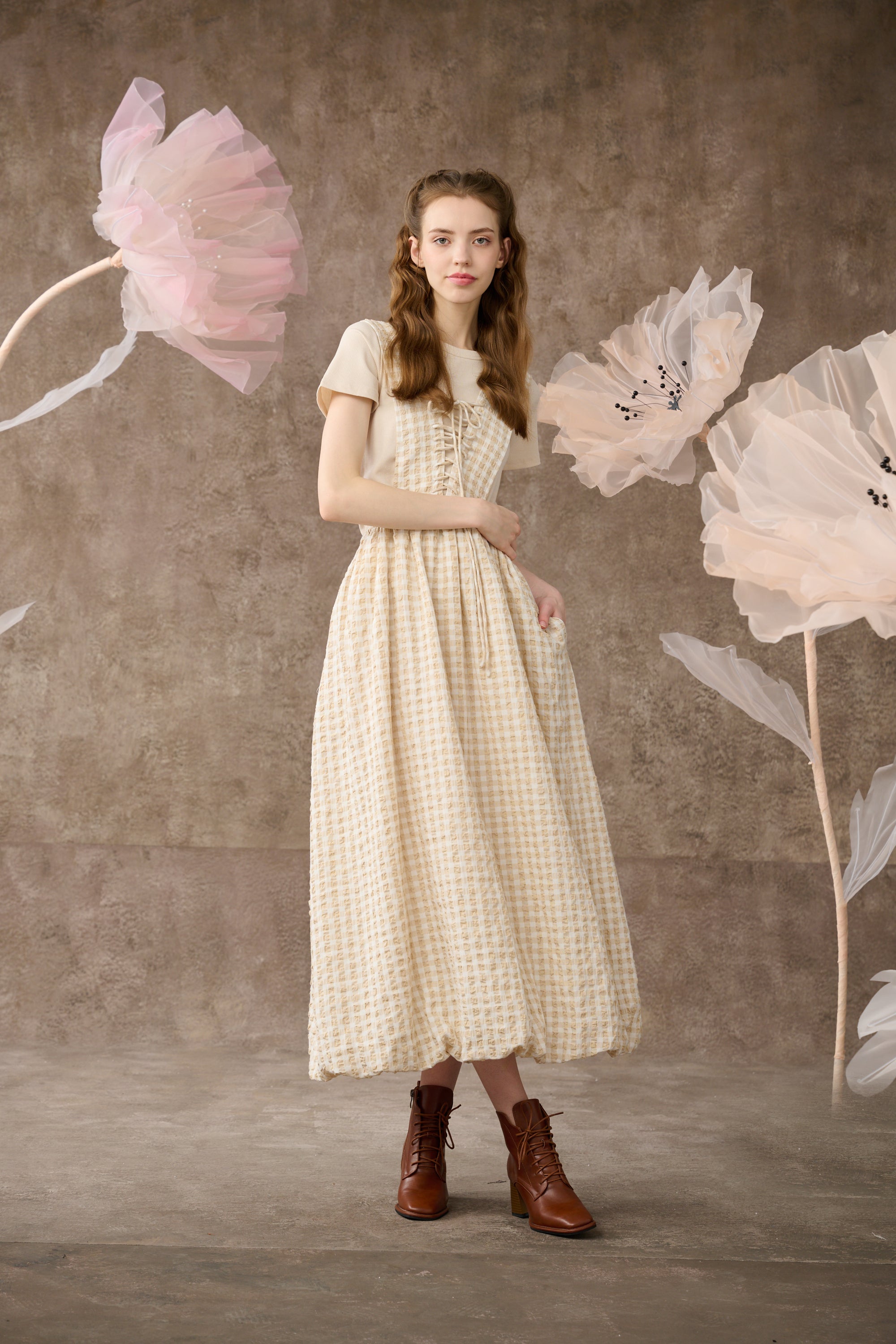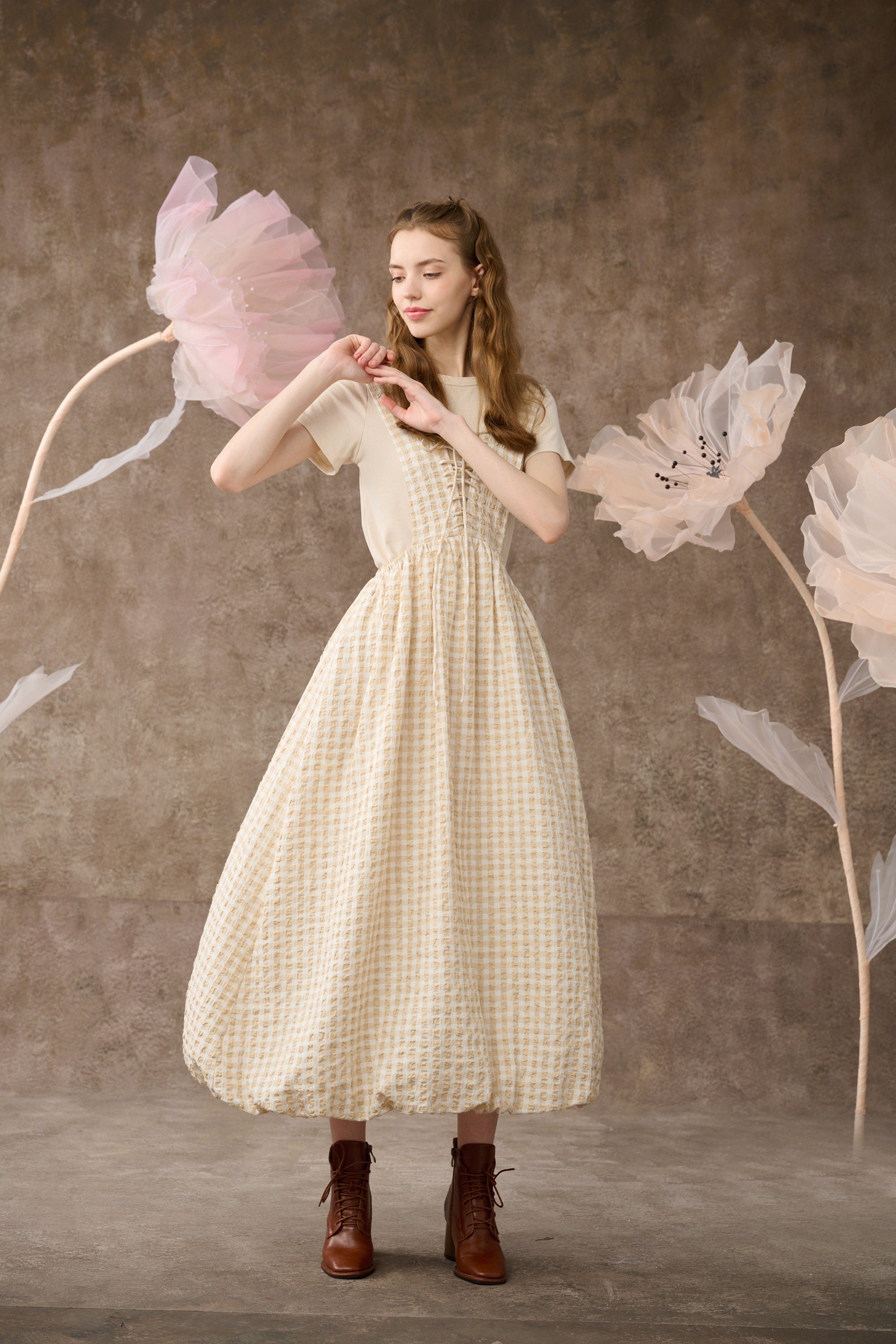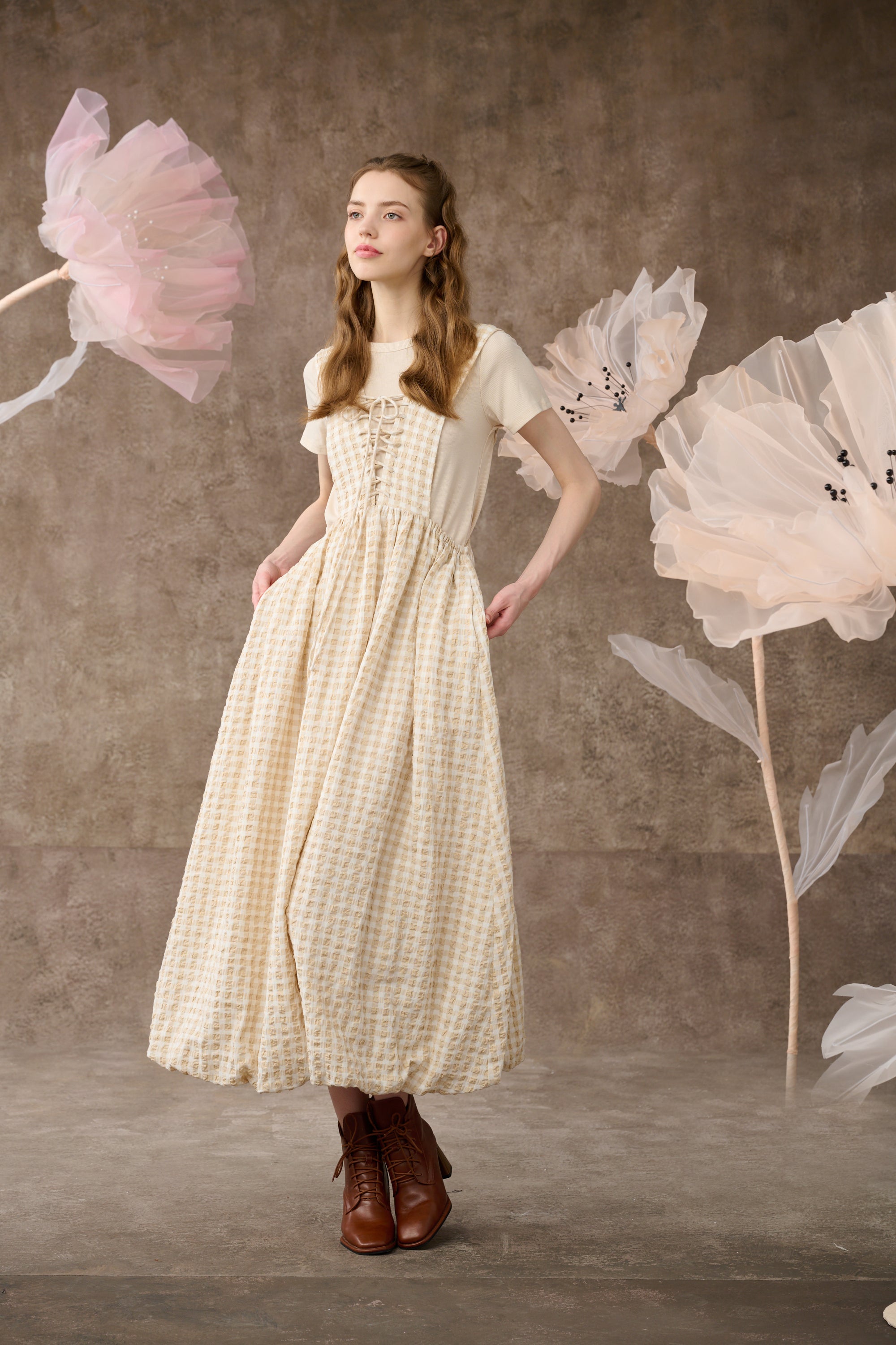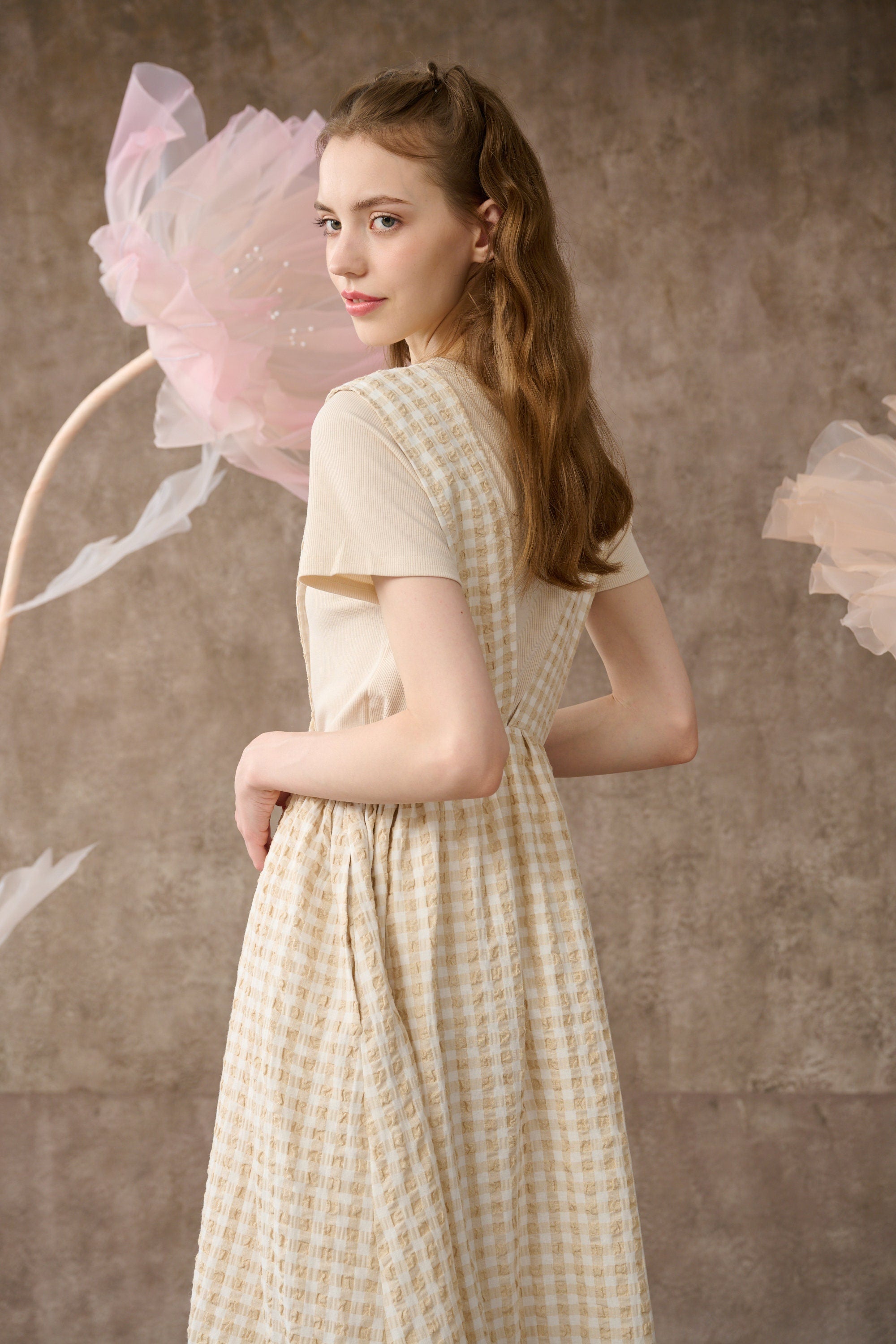 Inspired by romantic aesthetics, Linennaive presents this pinafore dress for the new collection.