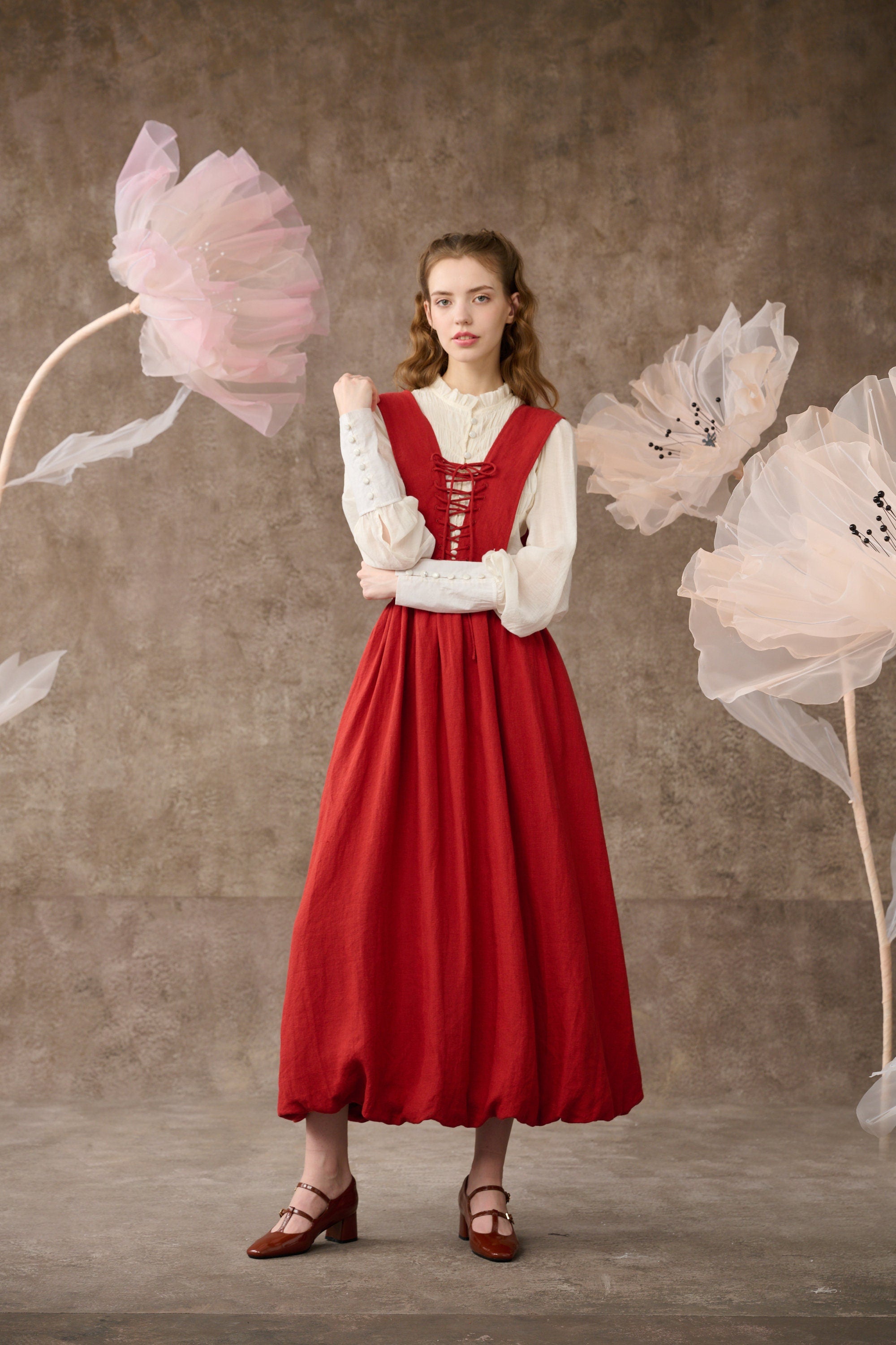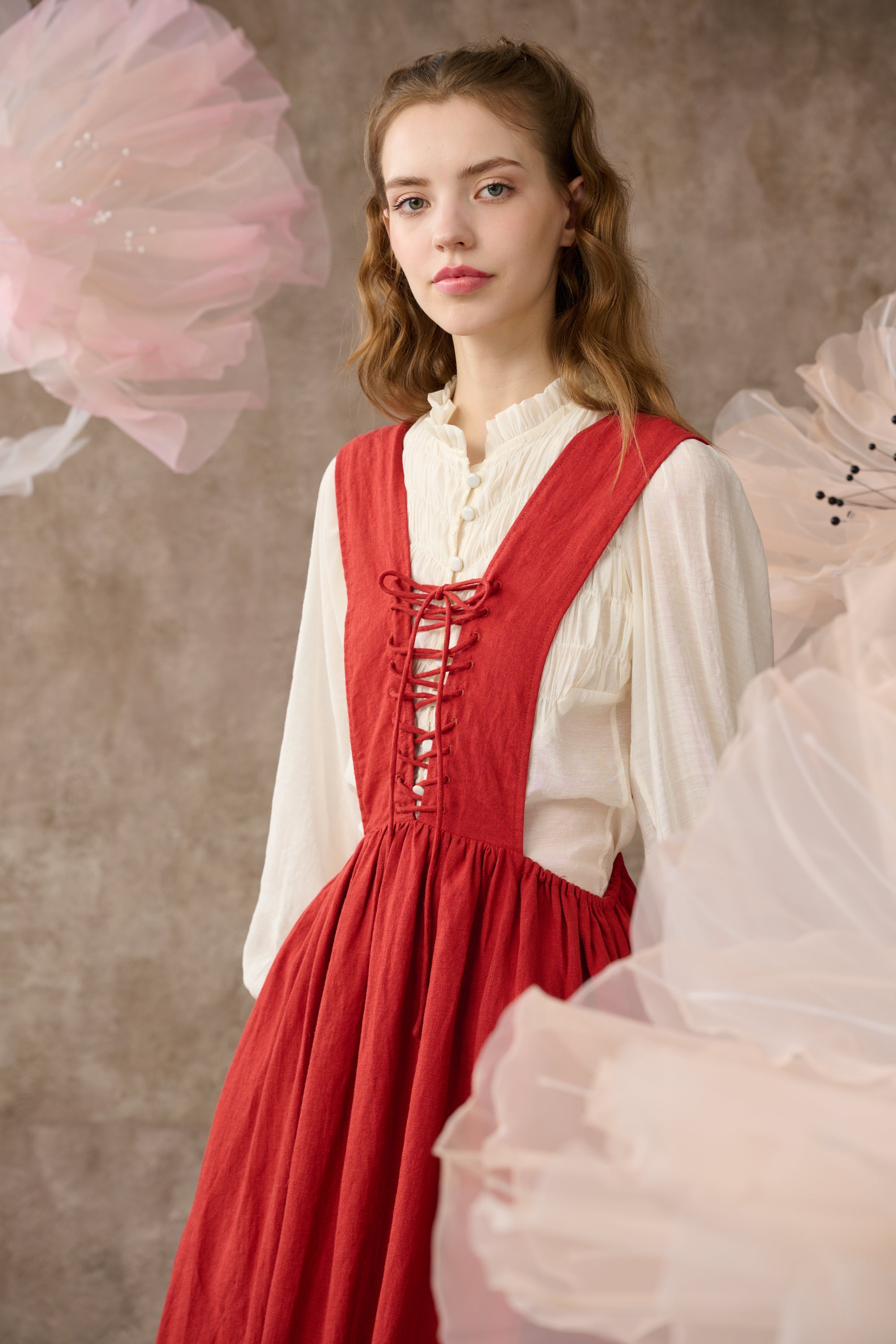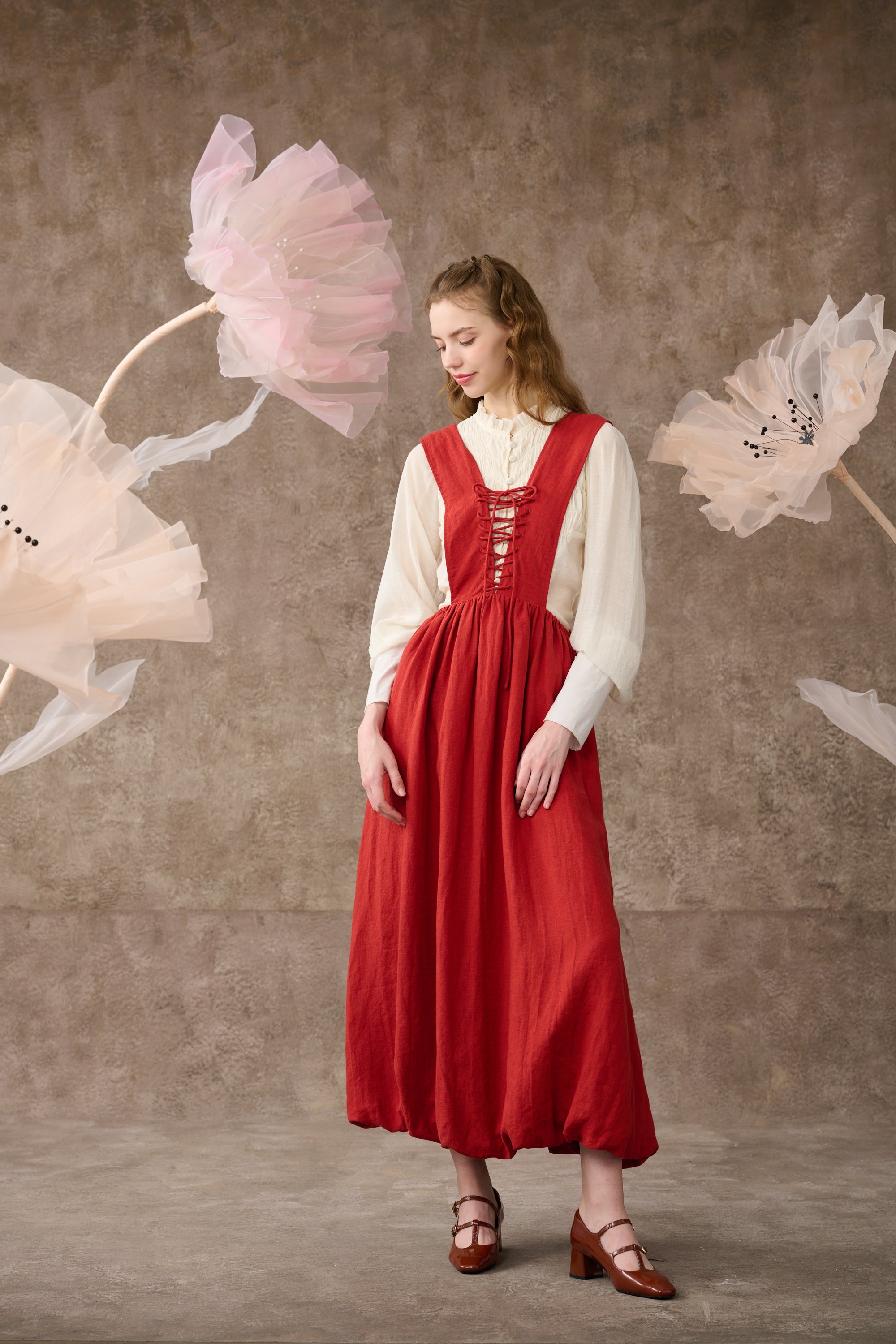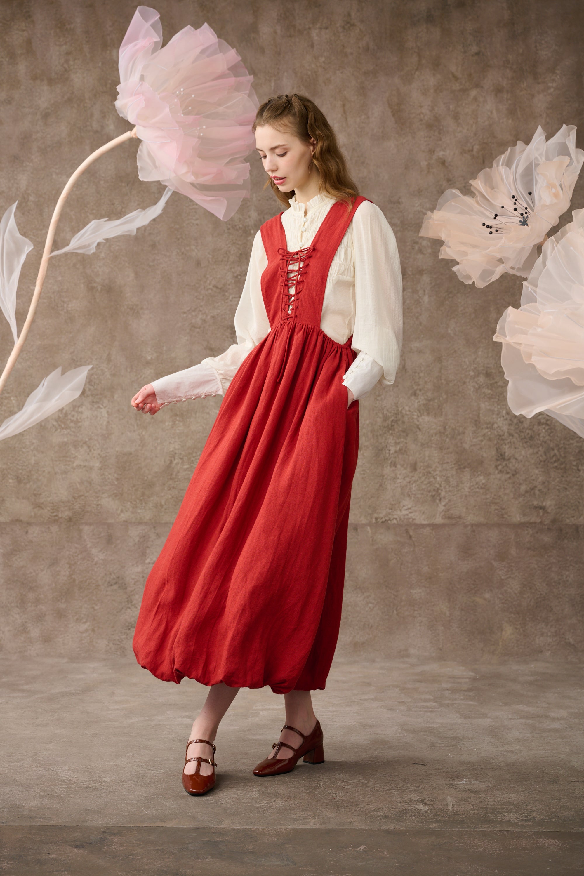 Crafted from Premium linen, this dress has a lace-up detail at the front for an elegant and romantic look. Also creates an eye-catching finish for the piece.