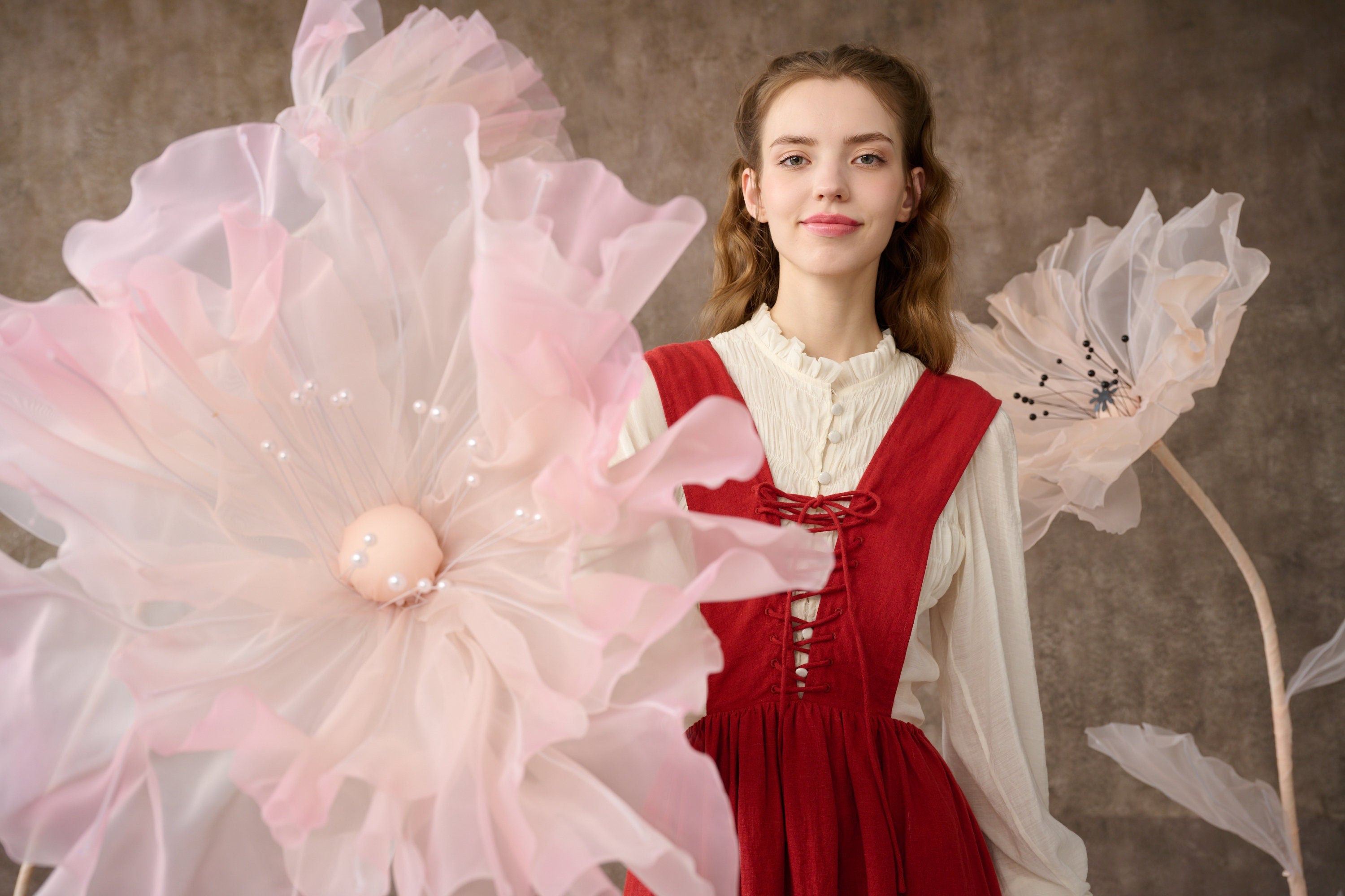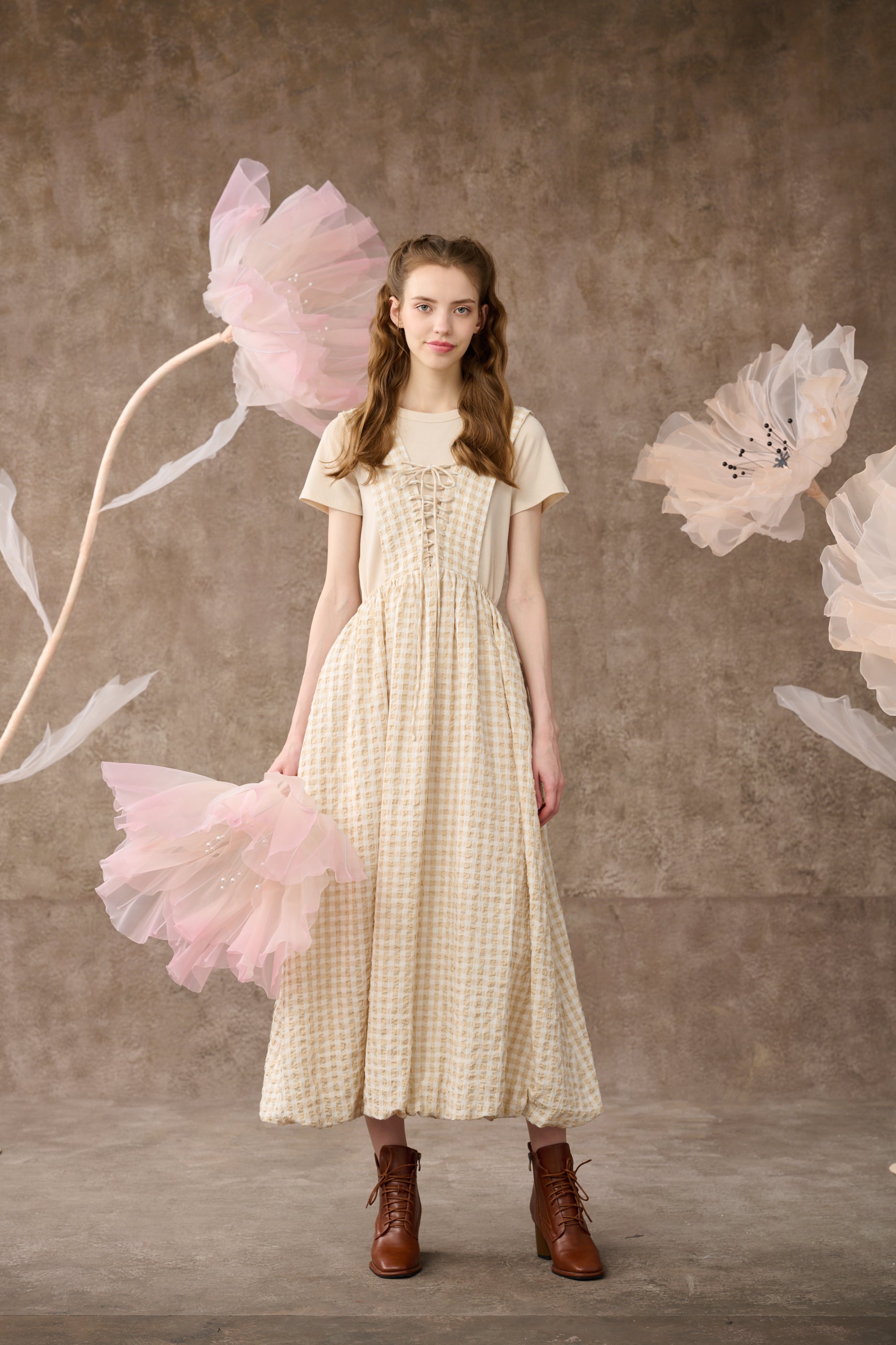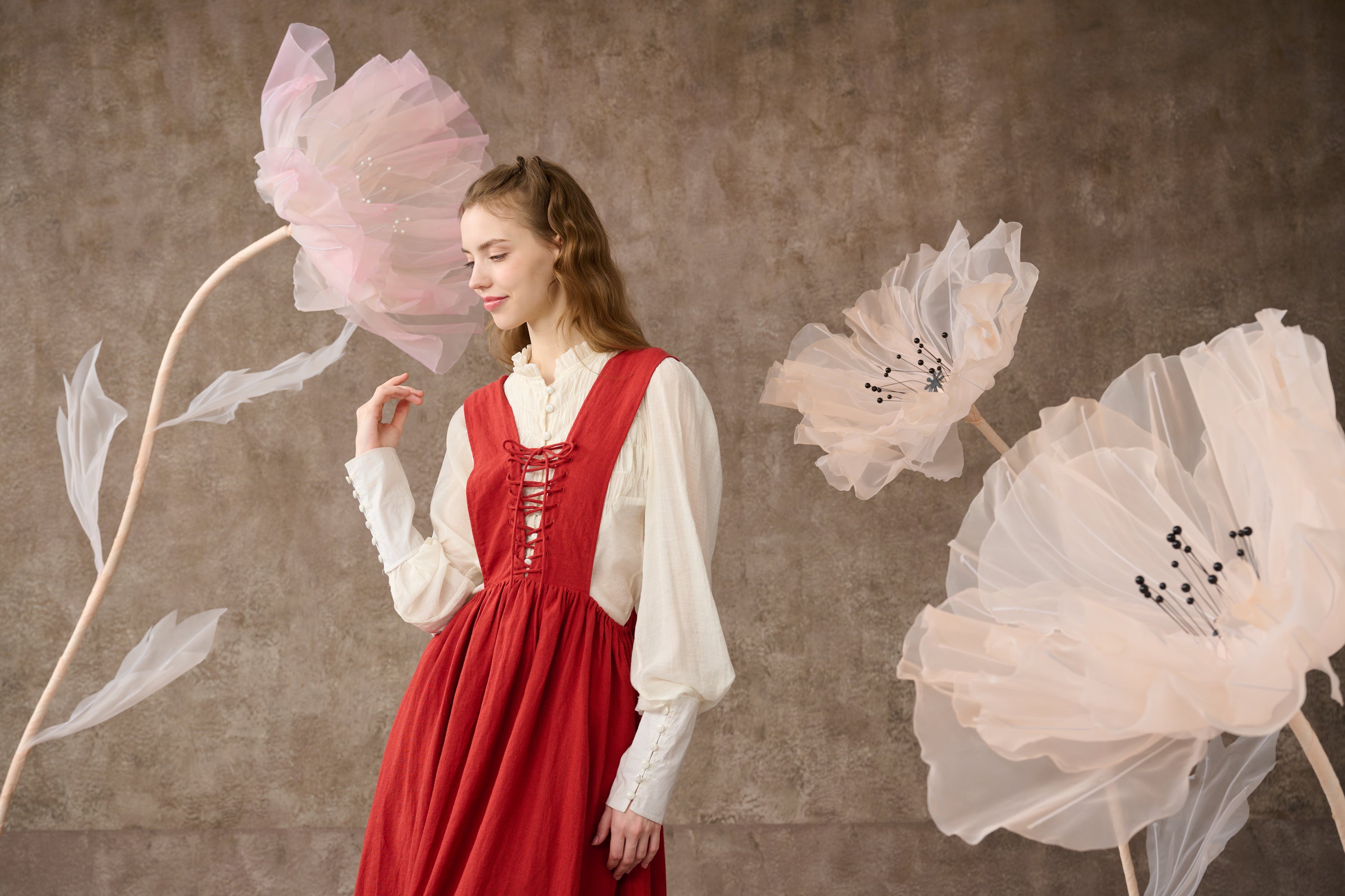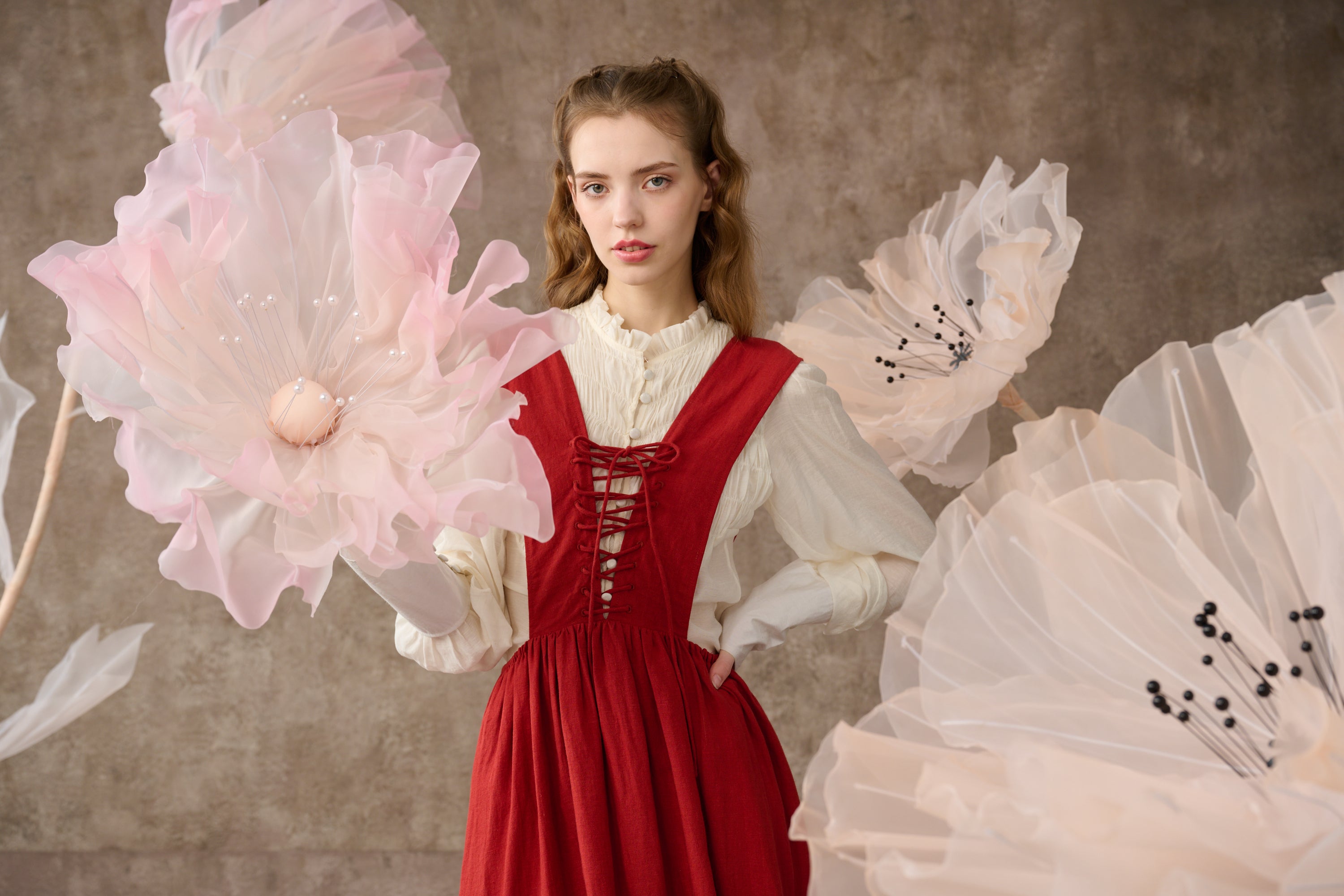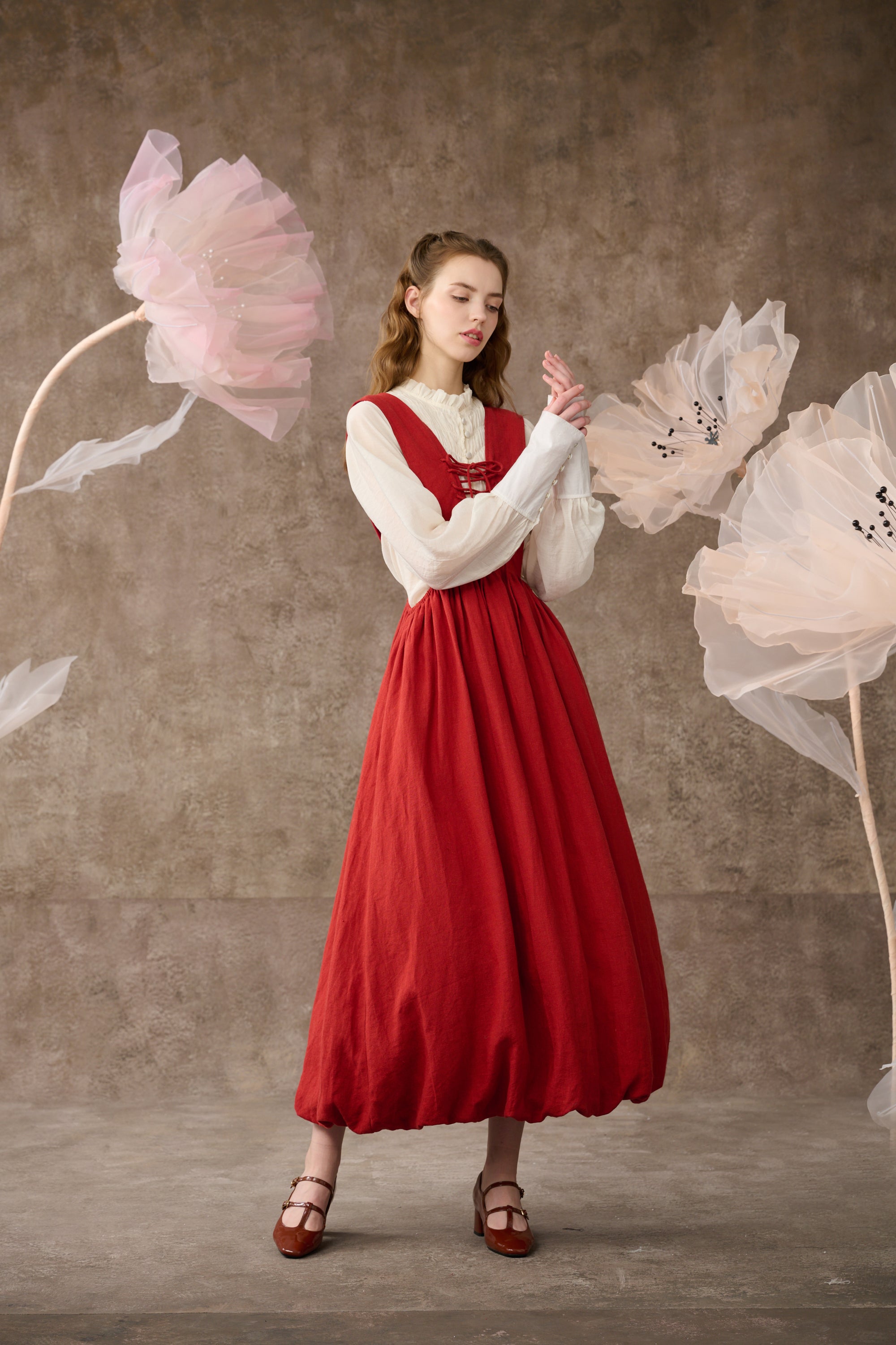 Crafted from Premium linen, this dress has a lace-up detail at the front for an elegant and romantic look. Also creates an eye-catching finish for the piece.
