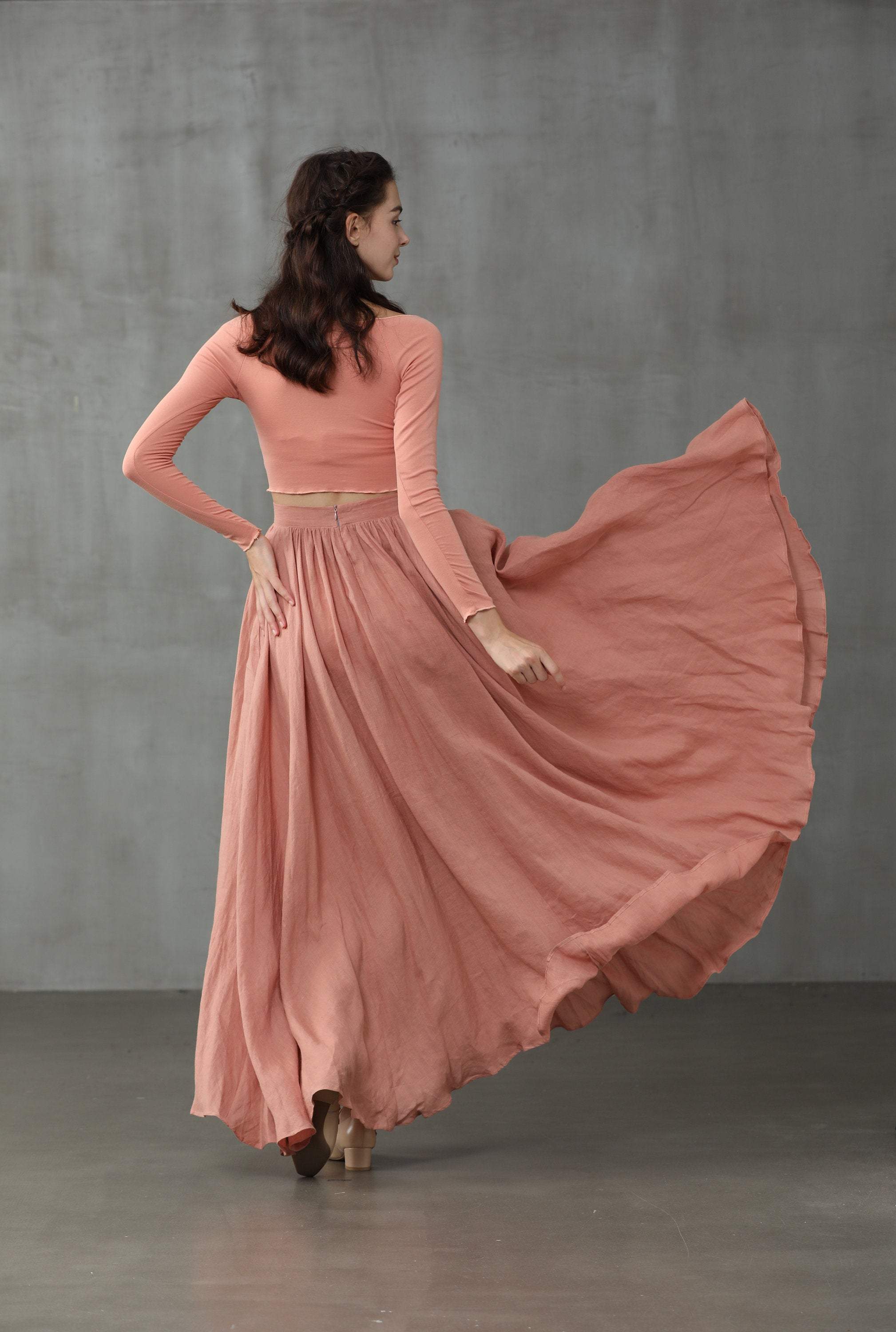 Featuring a high waist, a concealed fastening, a maxi-length, deep pockets.