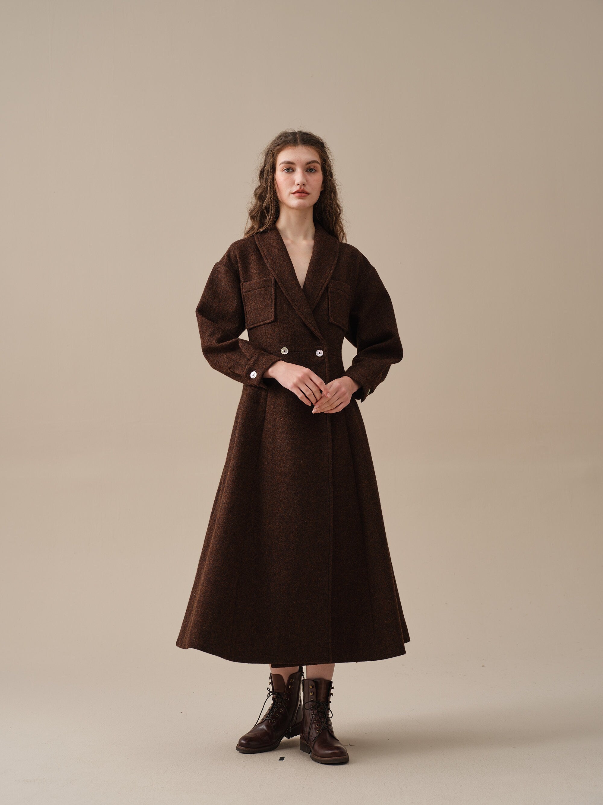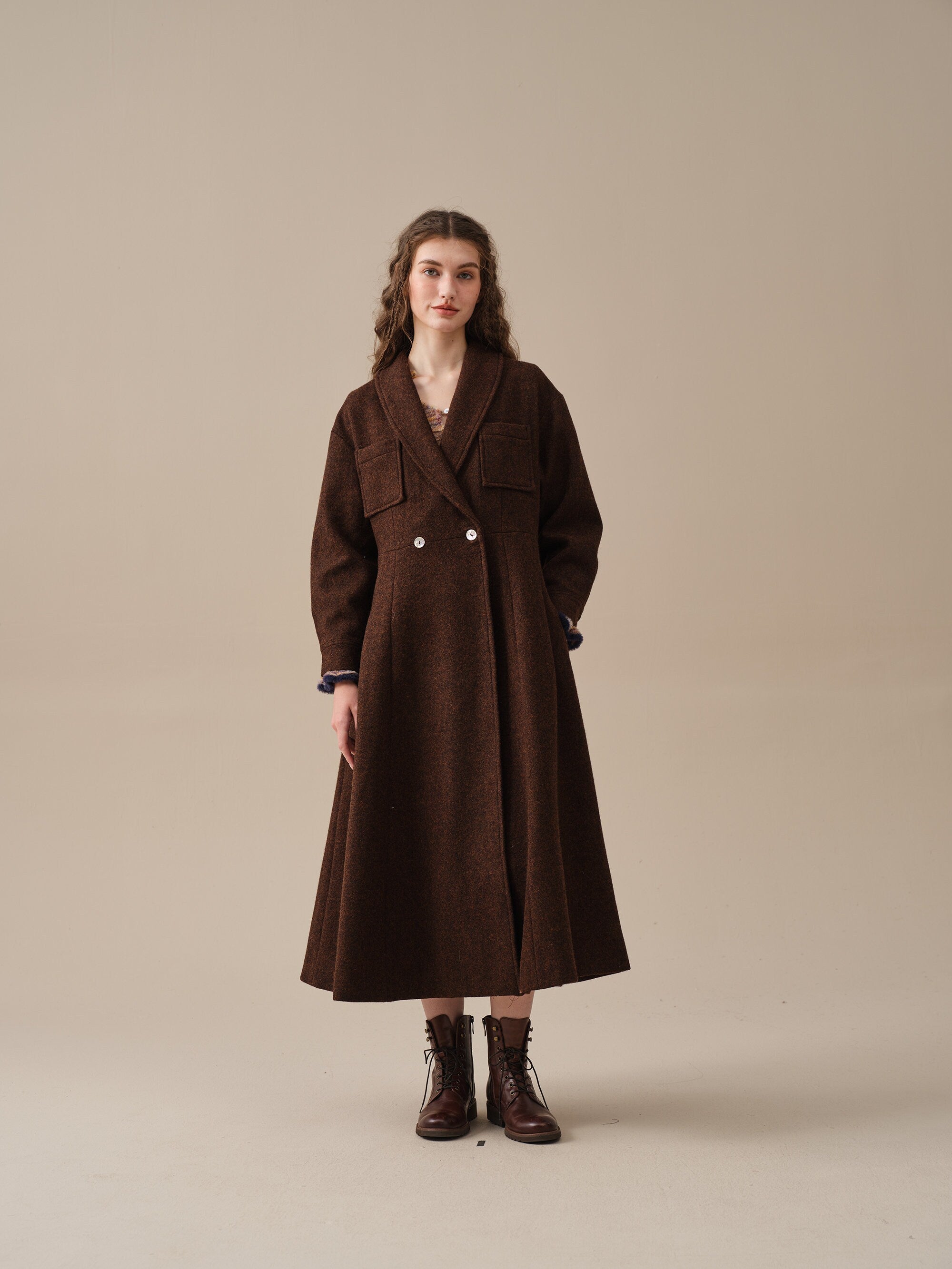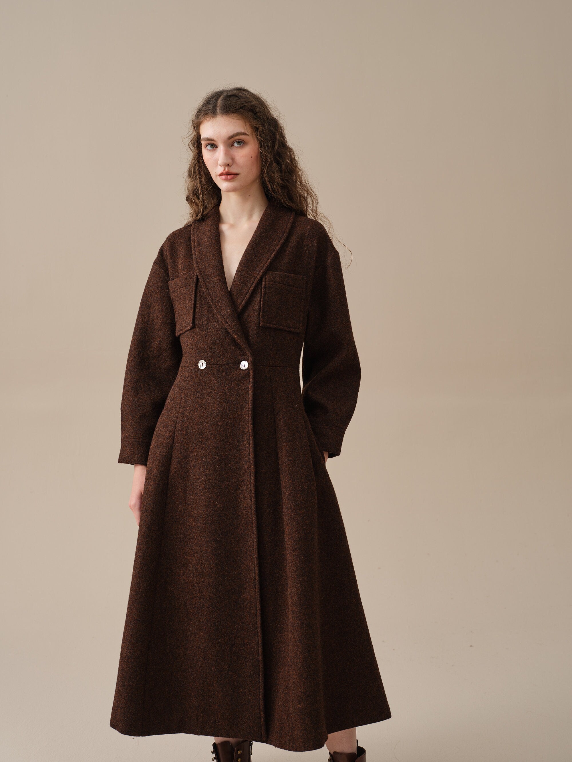 Indulge in the comfort, elegance, and romance of our wool coat. With its upgraded fabric, handcrafted lining and exclusive customization, it's a must-have addition to your wardrobe.