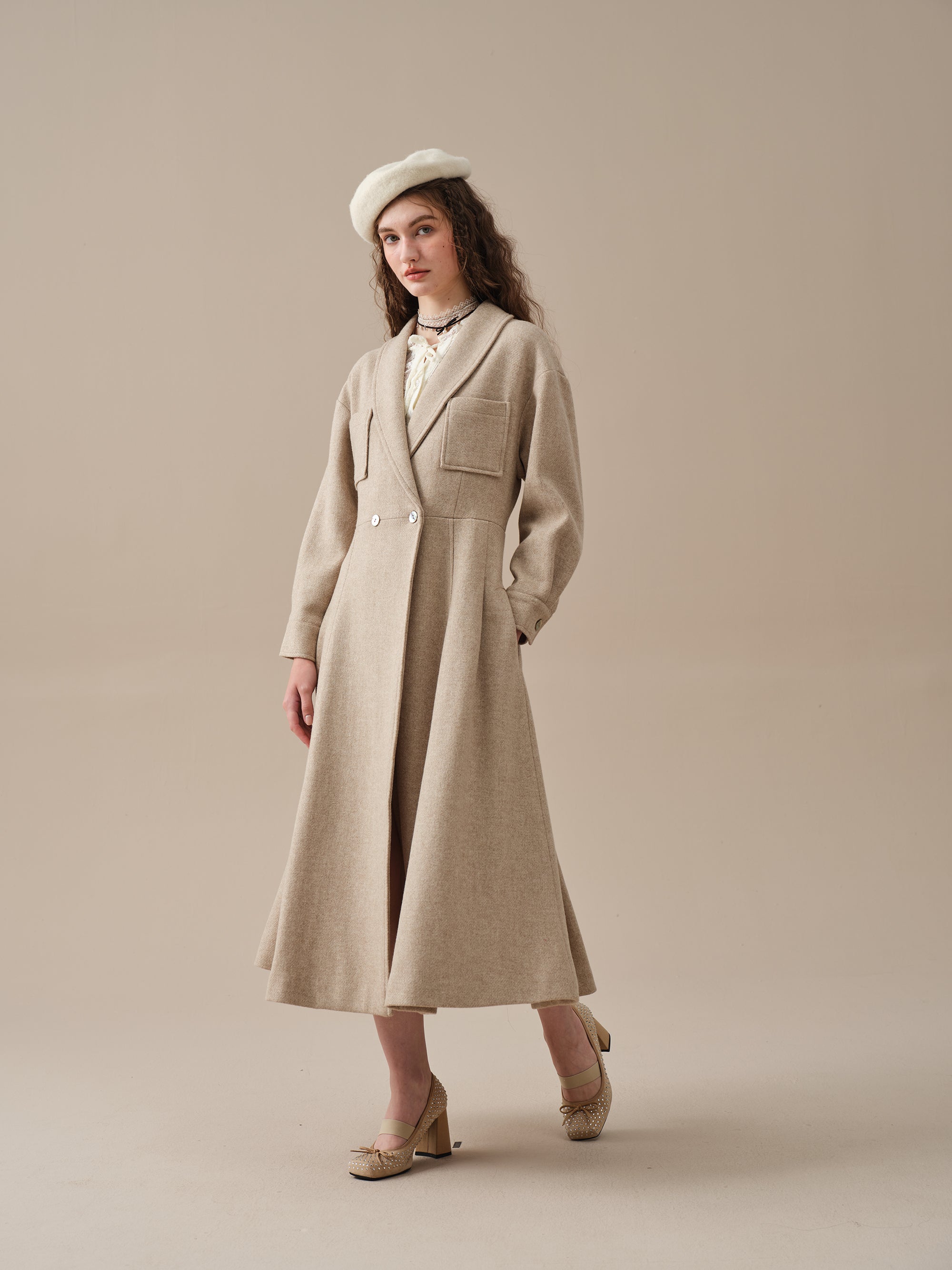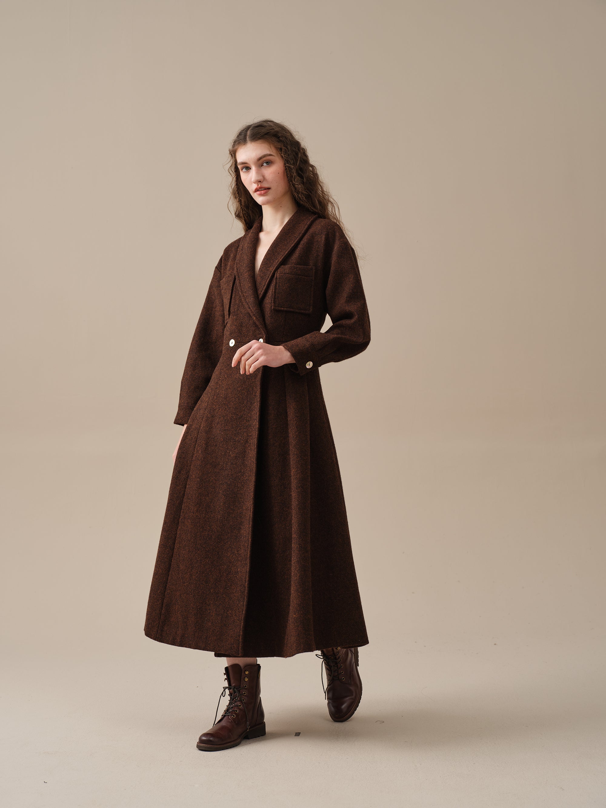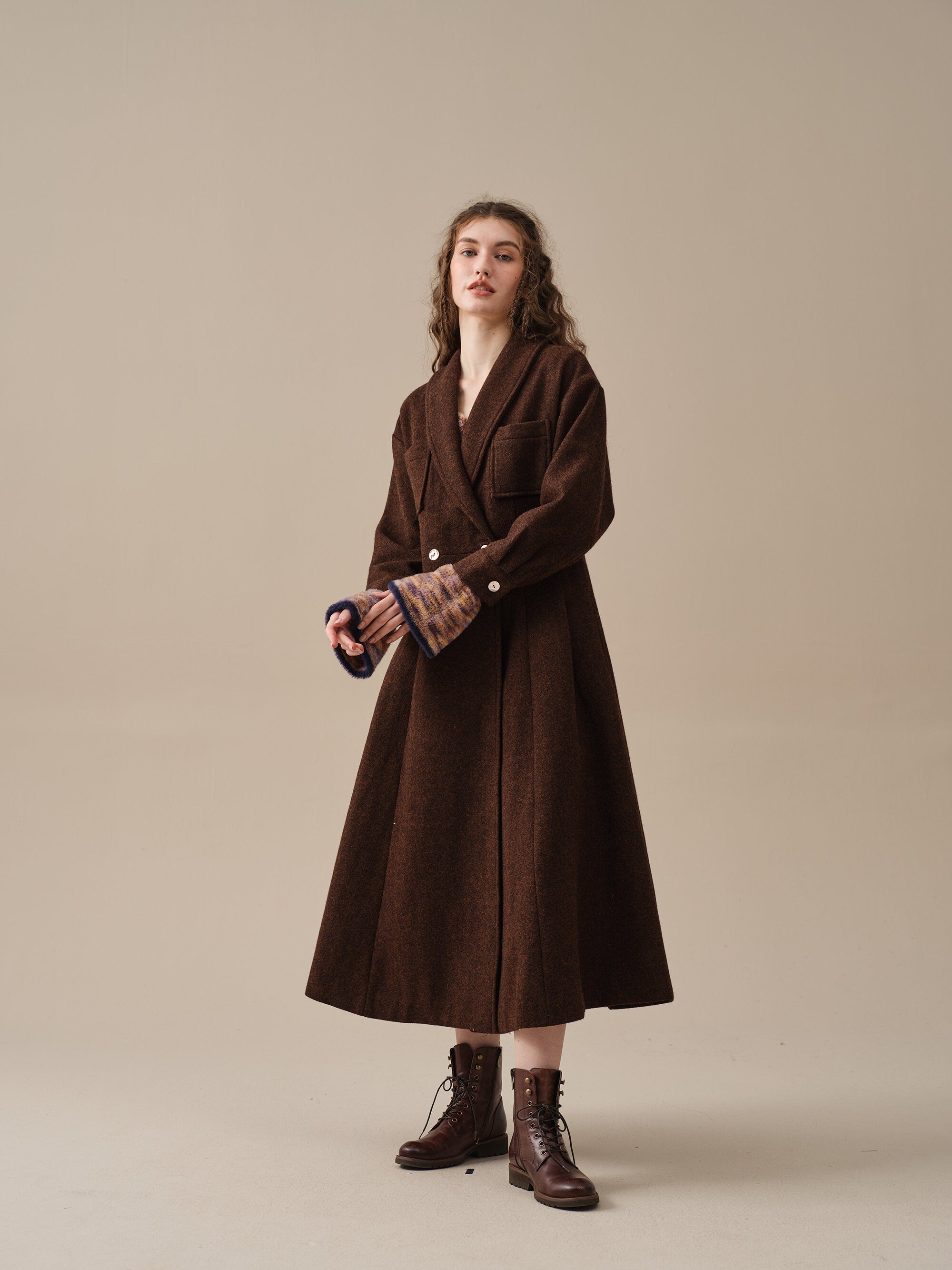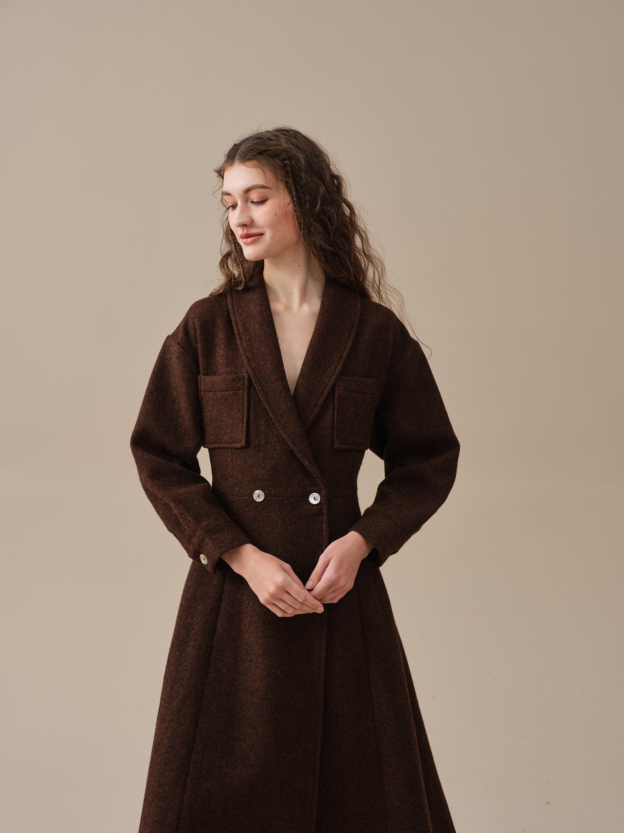Indulge in the comfort, elegance, and romance of our wool coat. With its upgraded fabric, handcrafted lining and exclusive customization, it's a must-have addition to your wardrobe.
