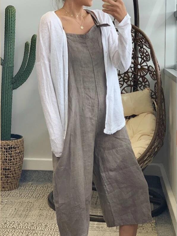 Type: JumpsuitGender: WomenSleeve Length: SleevelessNeckline: Square NeckPants Length: LongDecoration: Print/Solid ColorMaterial: Cotton/LinenEdition Type:LoosenOccasion: DailyStyle: Casual/FashionTheme: Spring,Summer,Fall,WinterColor: As PicturePlease Note: All Dimensions Are Measured Manually With A Deviation Of 1 To 3cm.