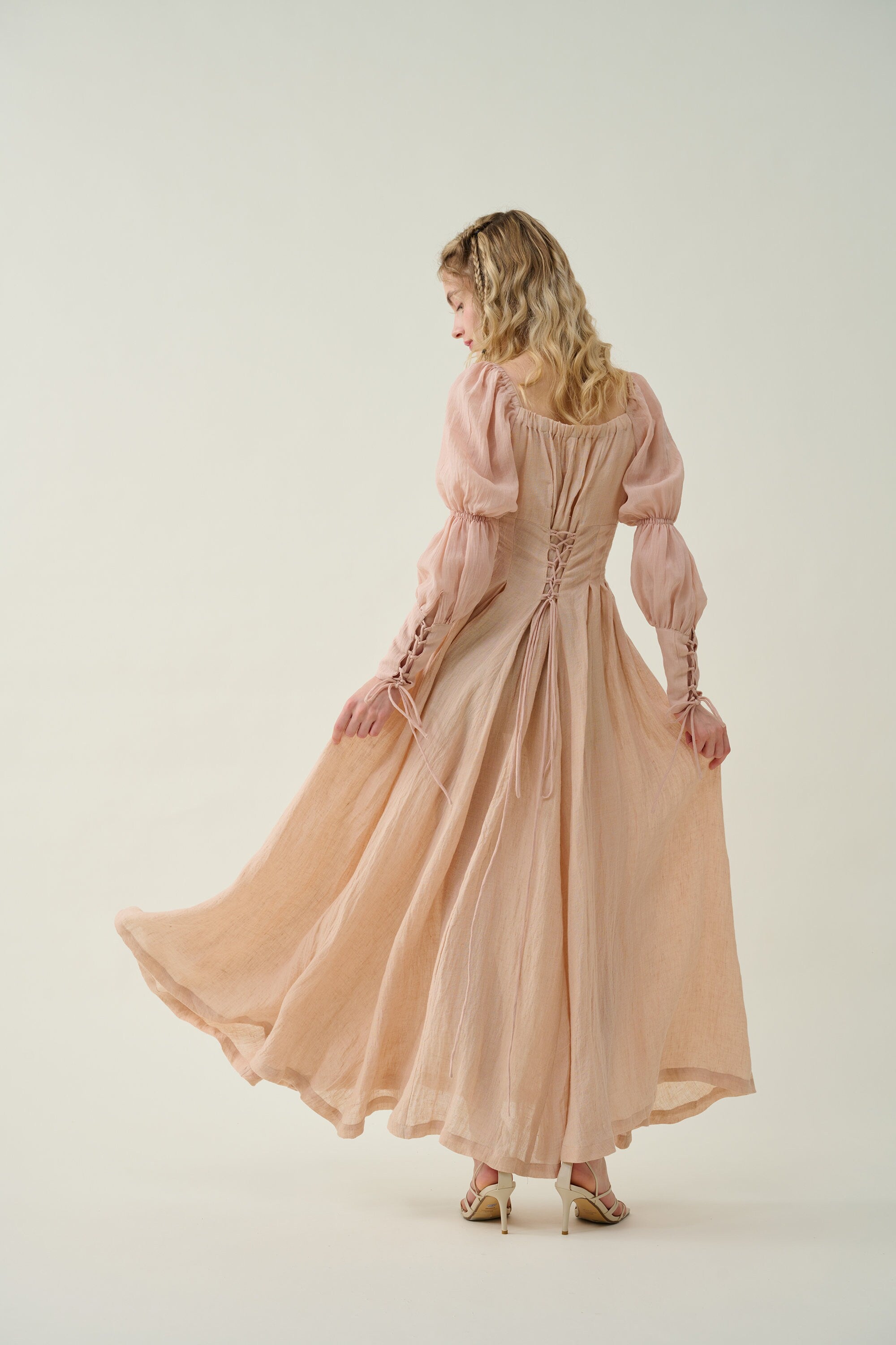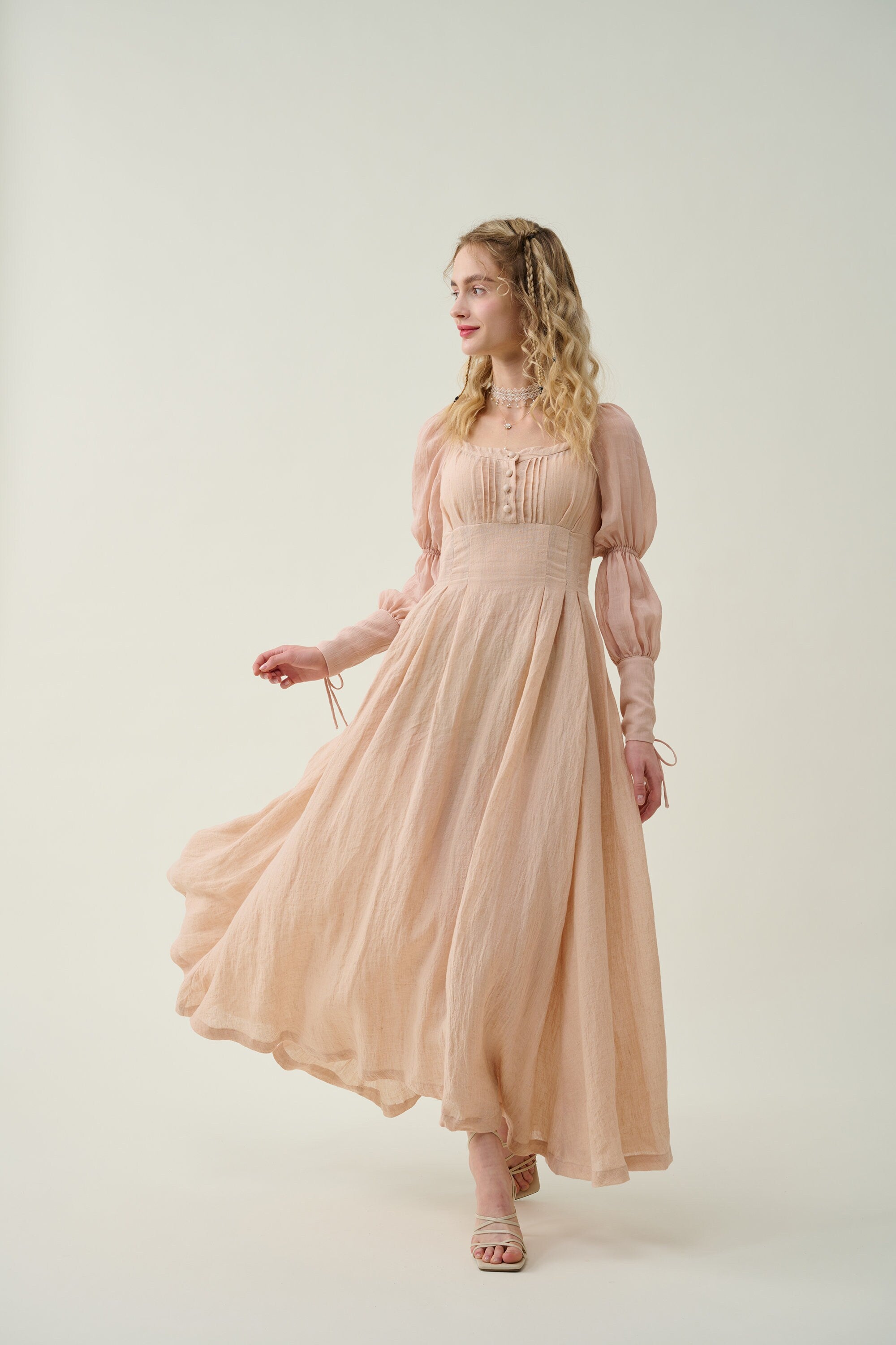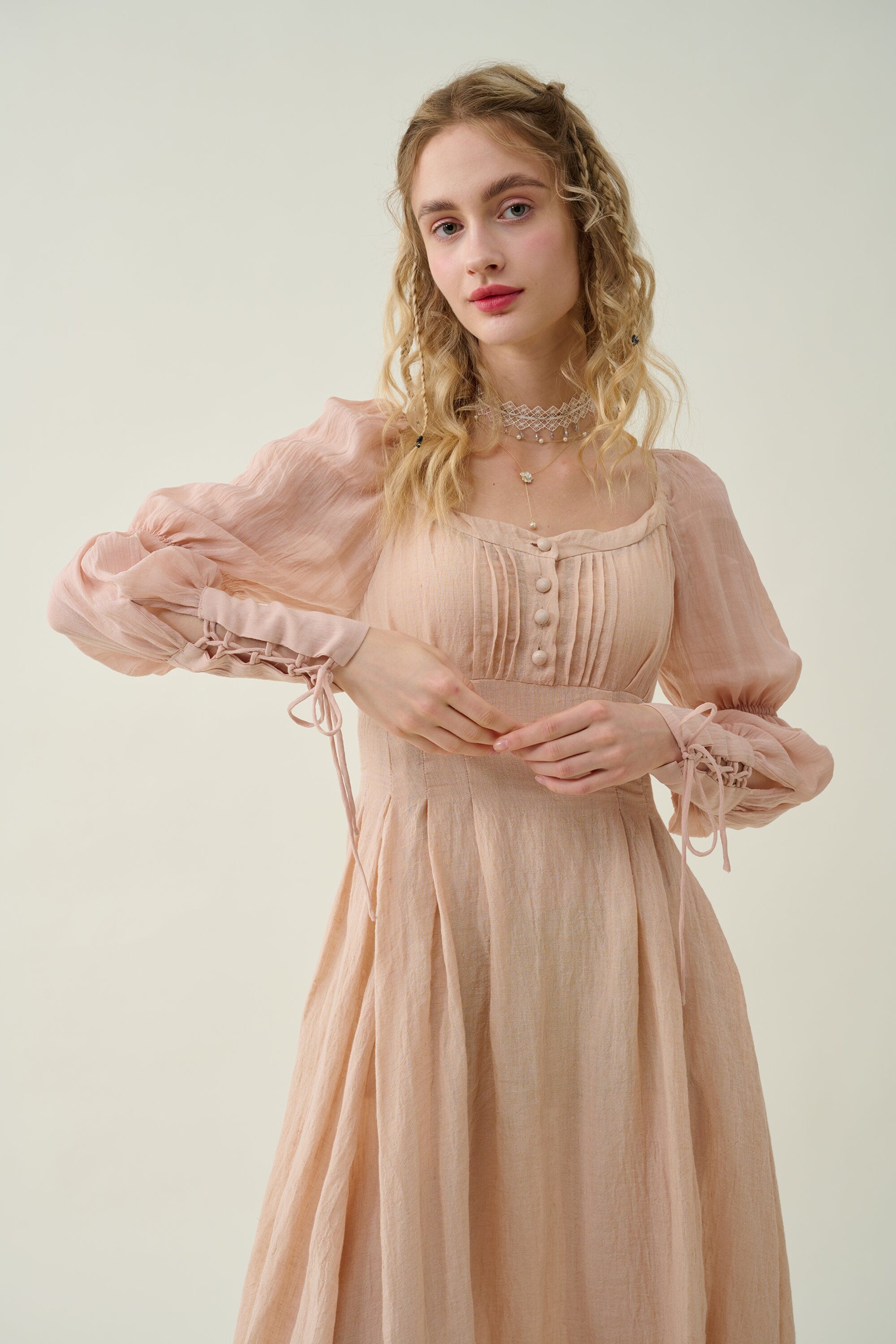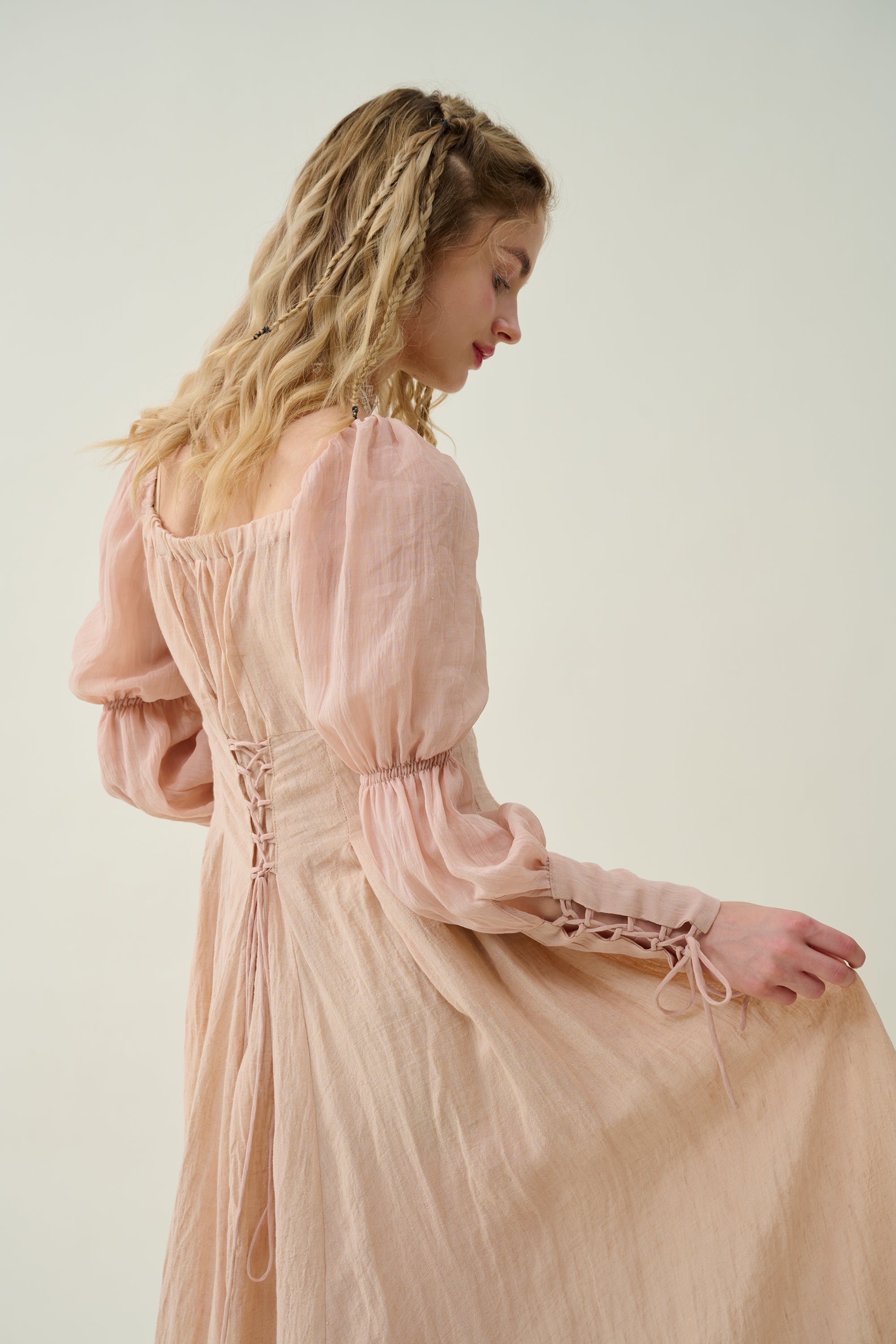 Sleeves: 80% silk, 20% linen. Dyed in same color as the main dress.