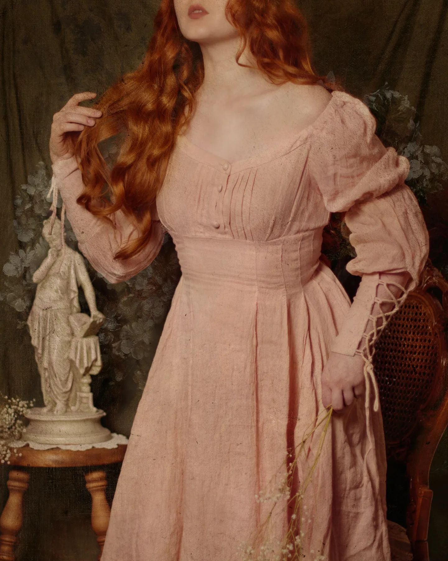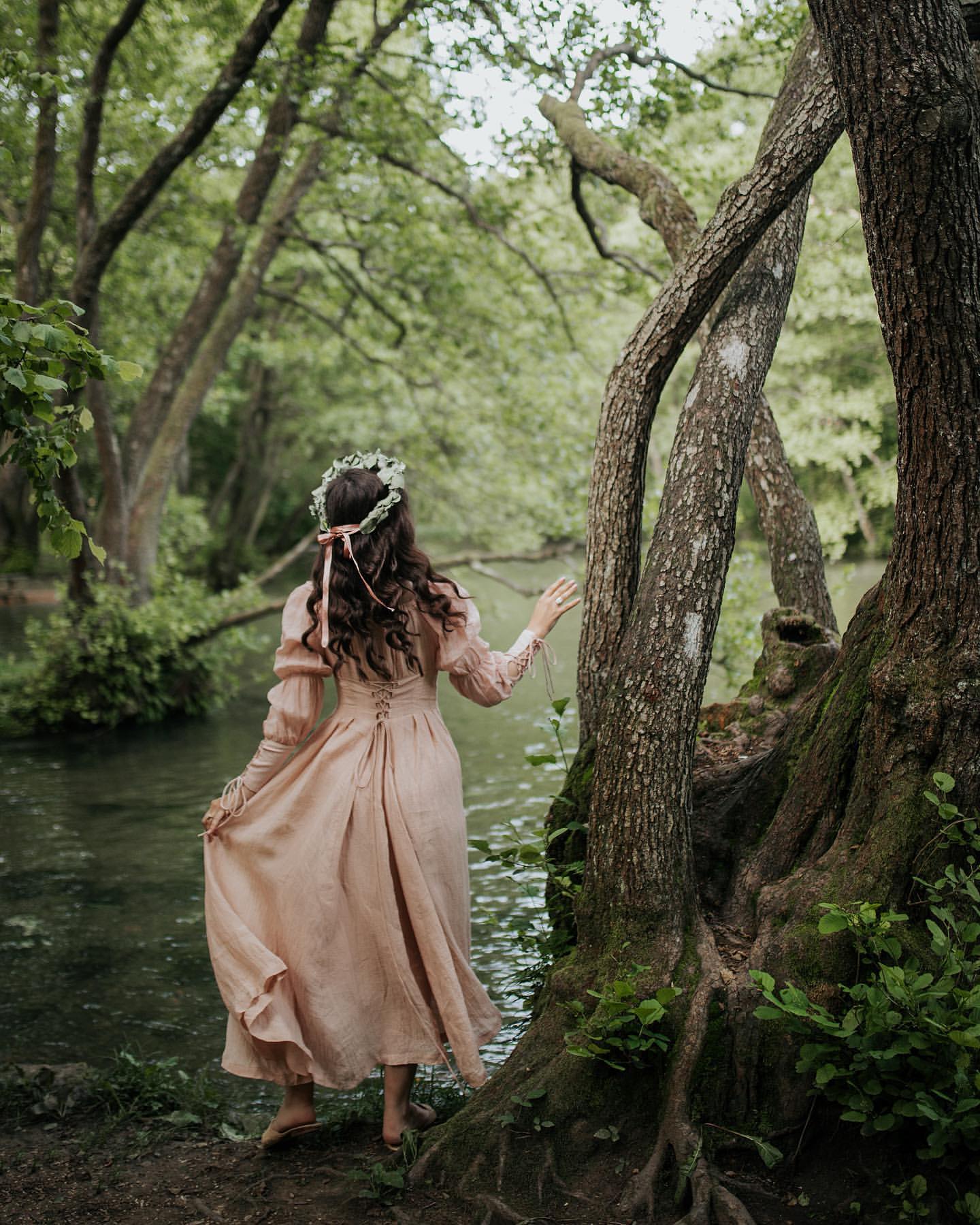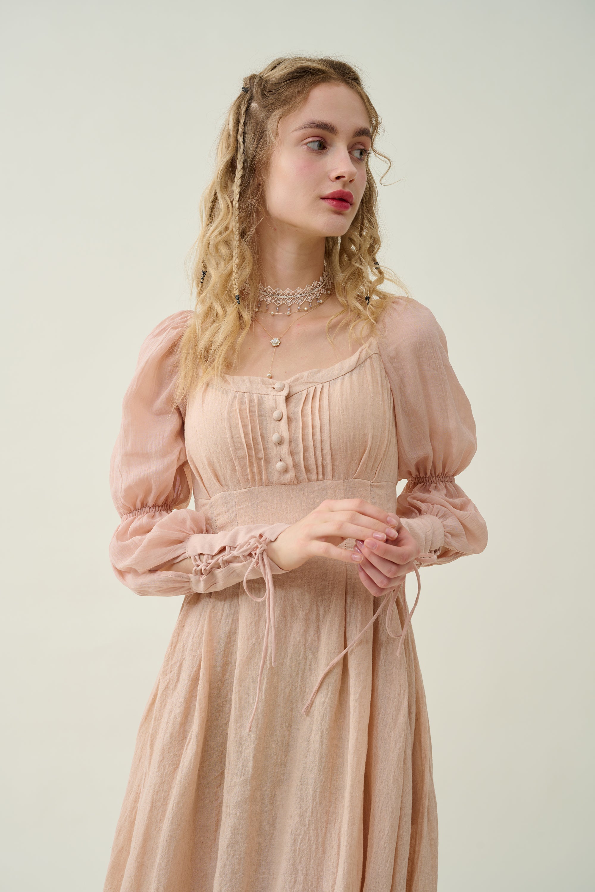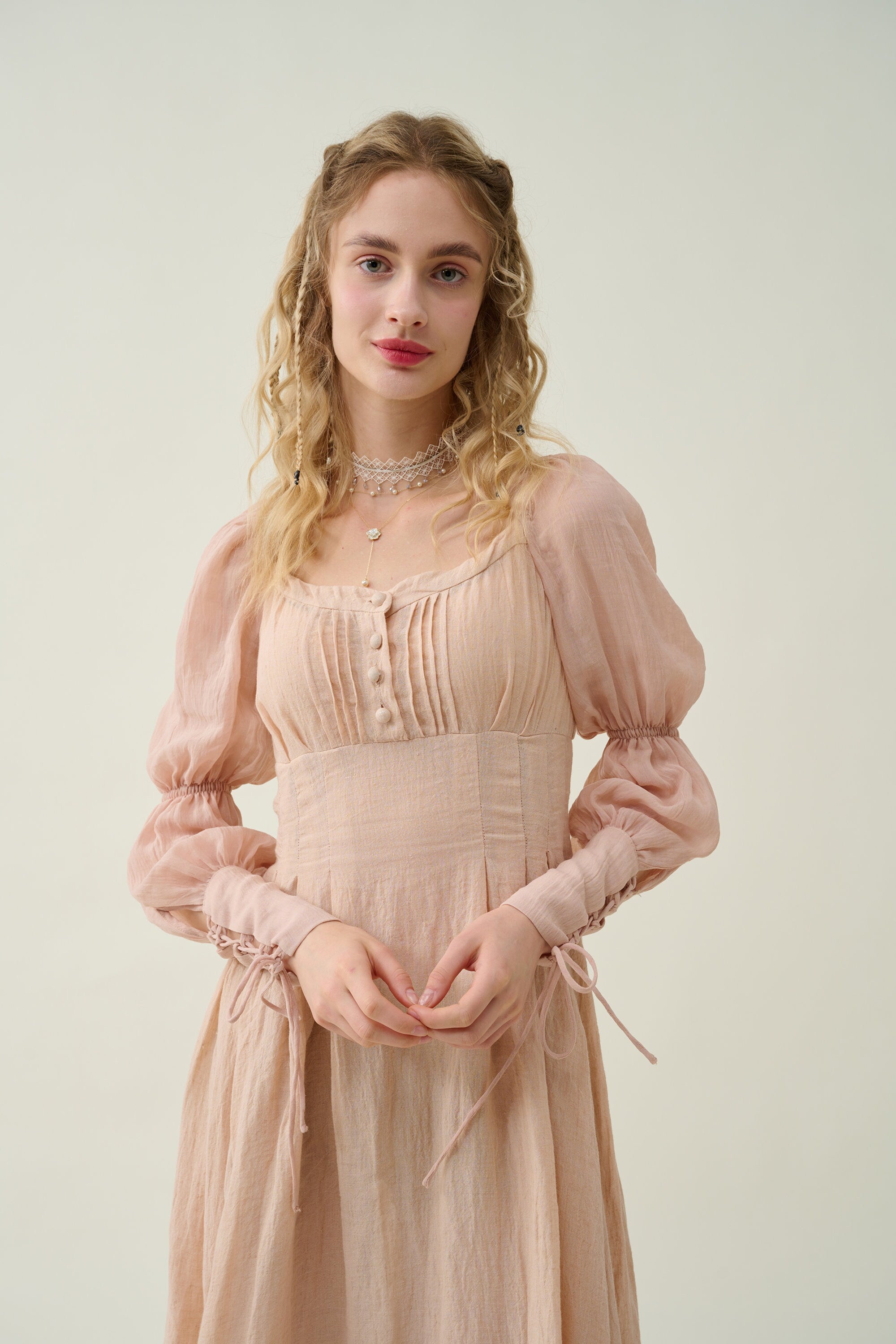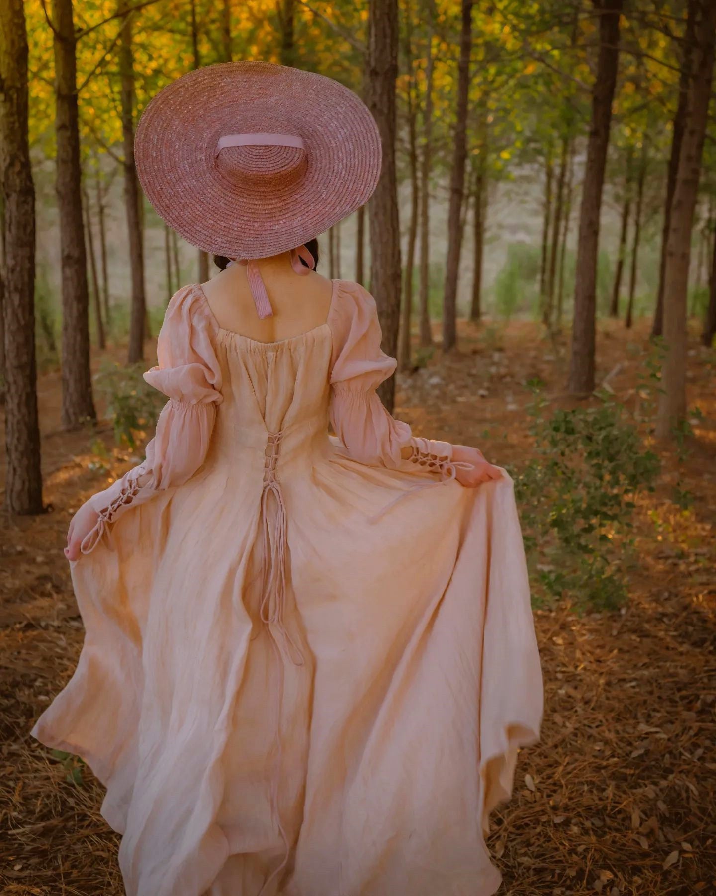 Sleeves: 80% silk, 20% linen. Dyed in same color as the main dress.