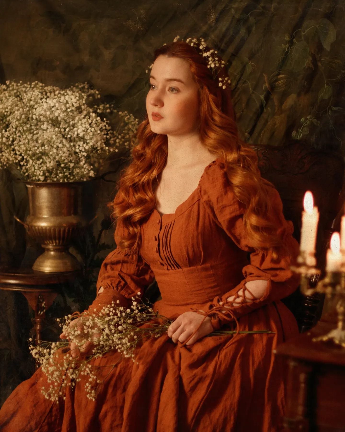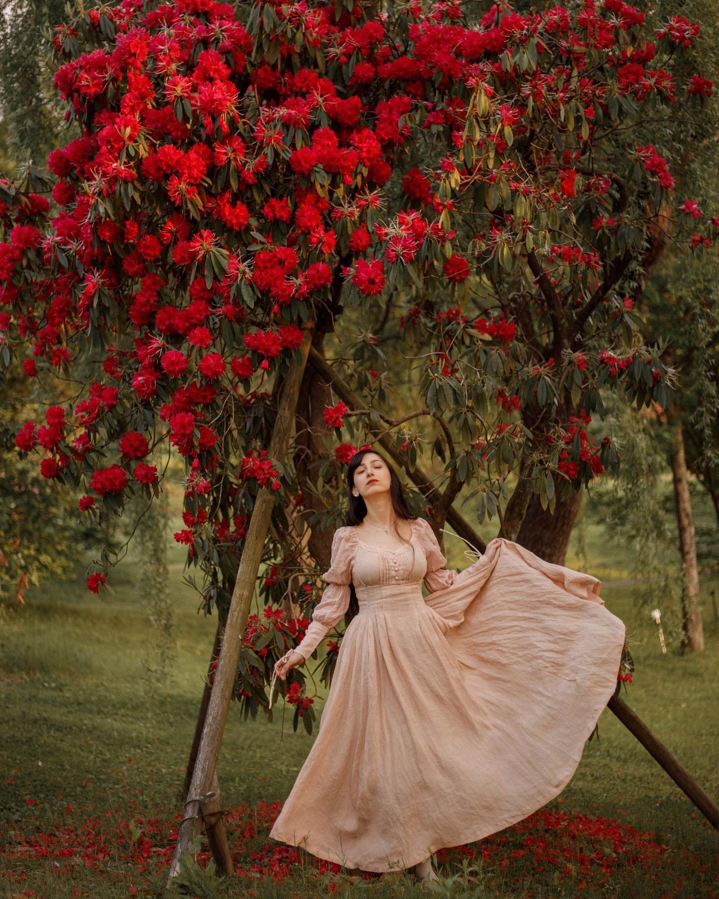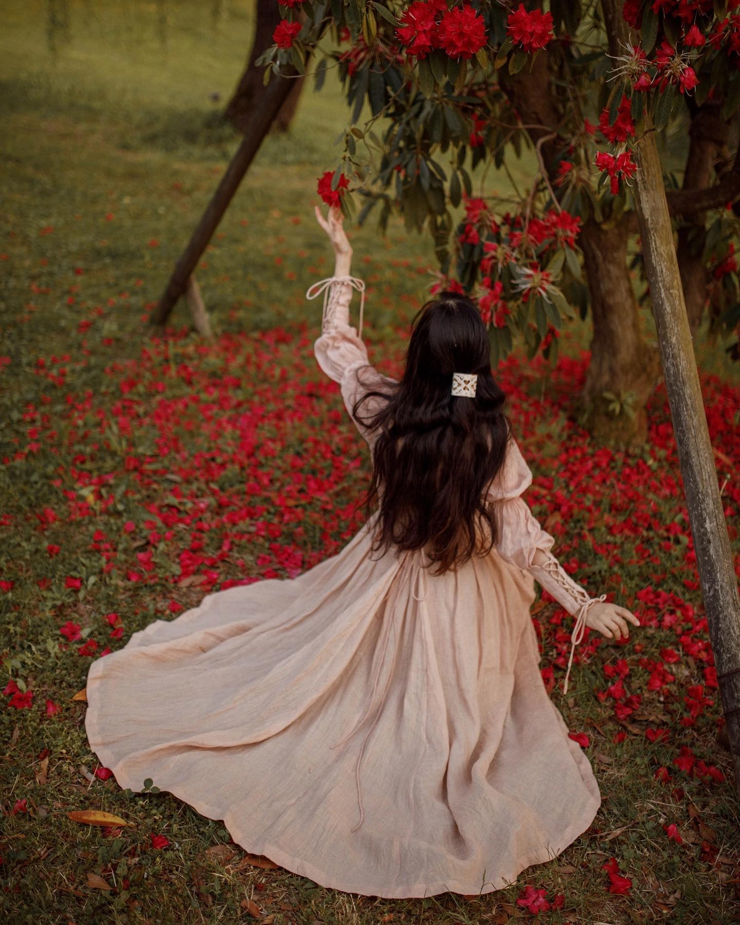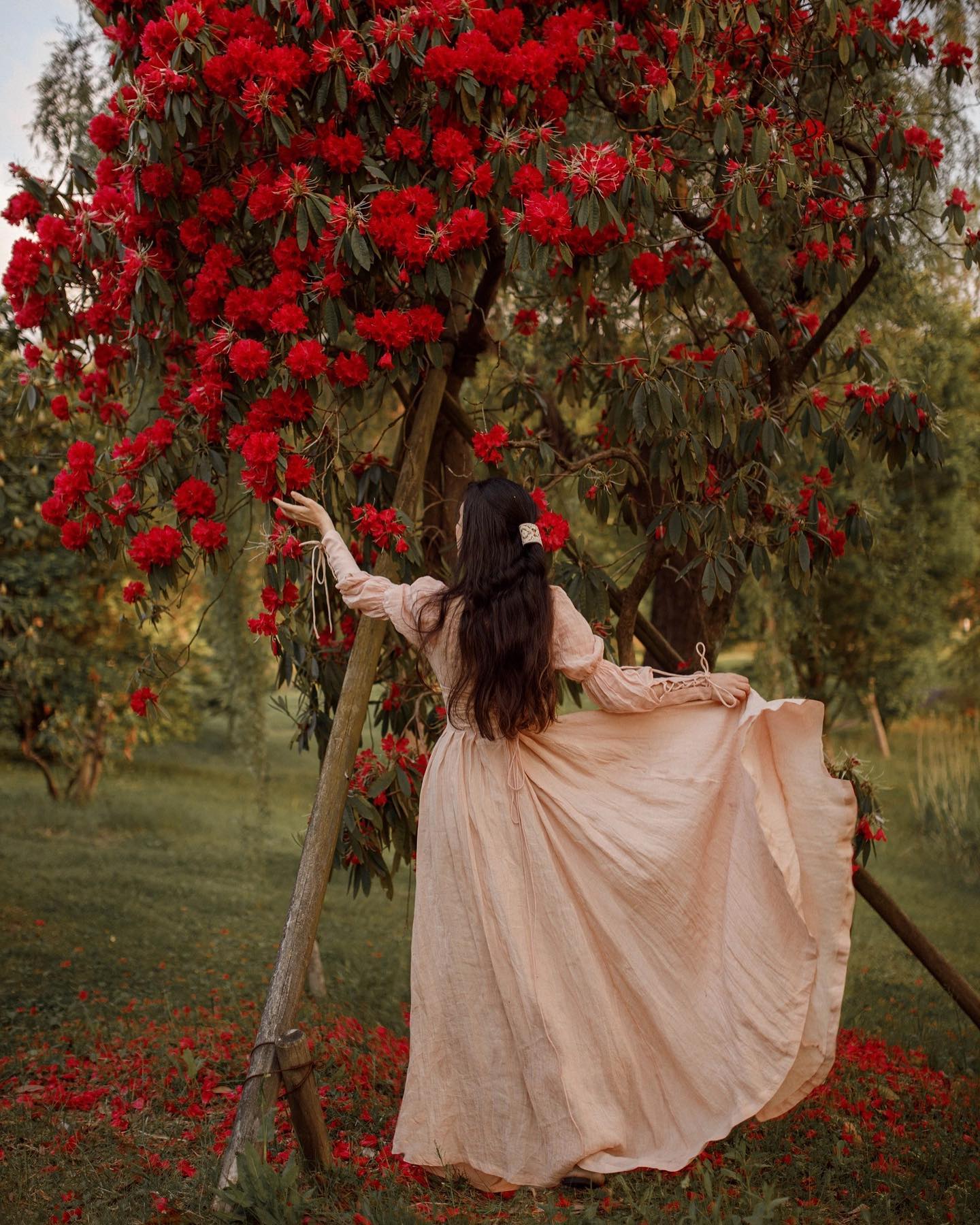 Sleeves: 80% silk, 20% linen. Dyed in same color as the main dress.
