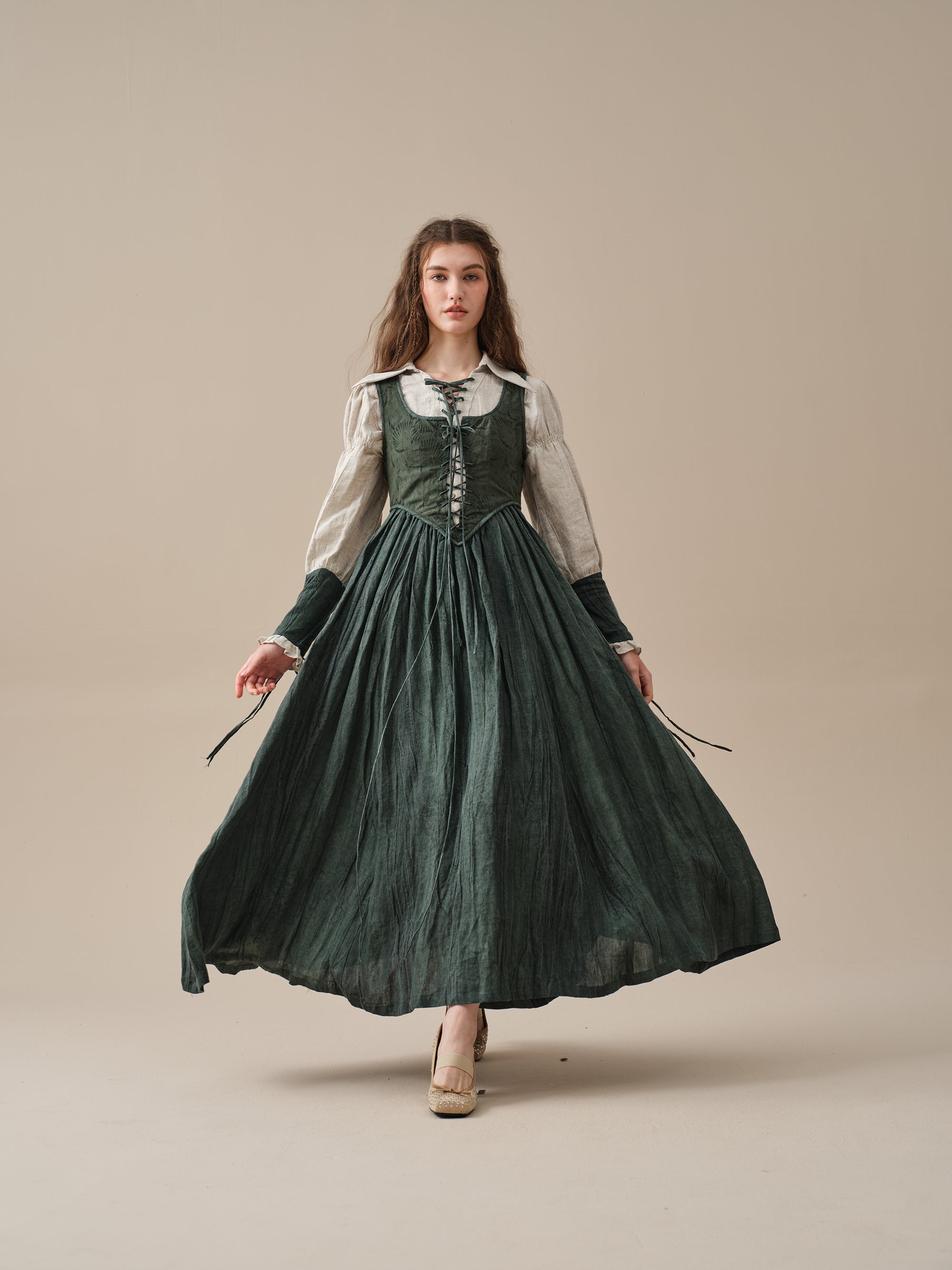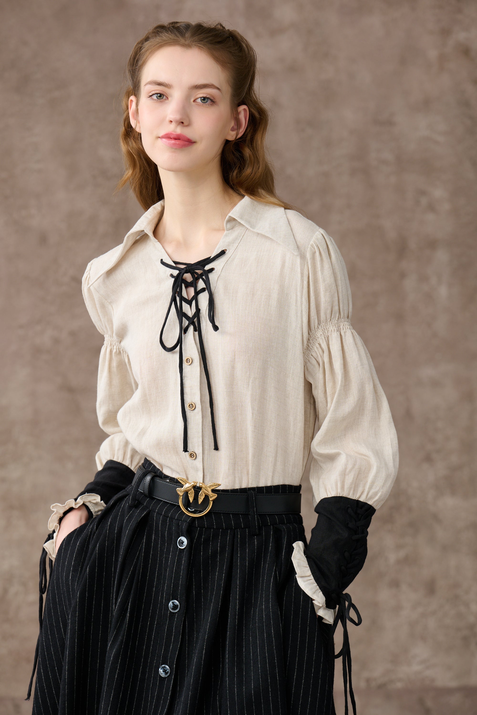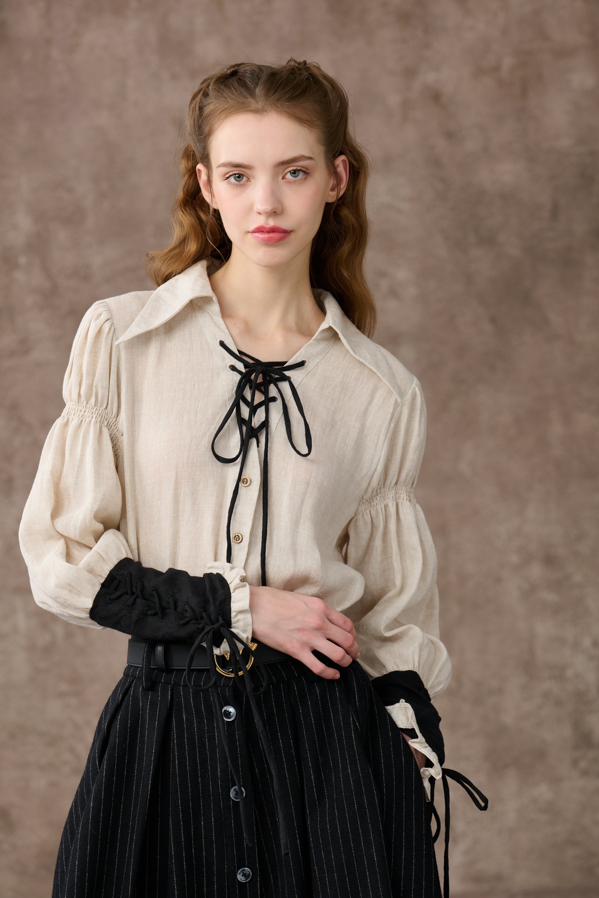 It's cut from soft linen in a relaxed silhouette and has contrast sleeves to make it stand out. Elegant ruffle details add drama to this piece, making it effortless and romantic.
