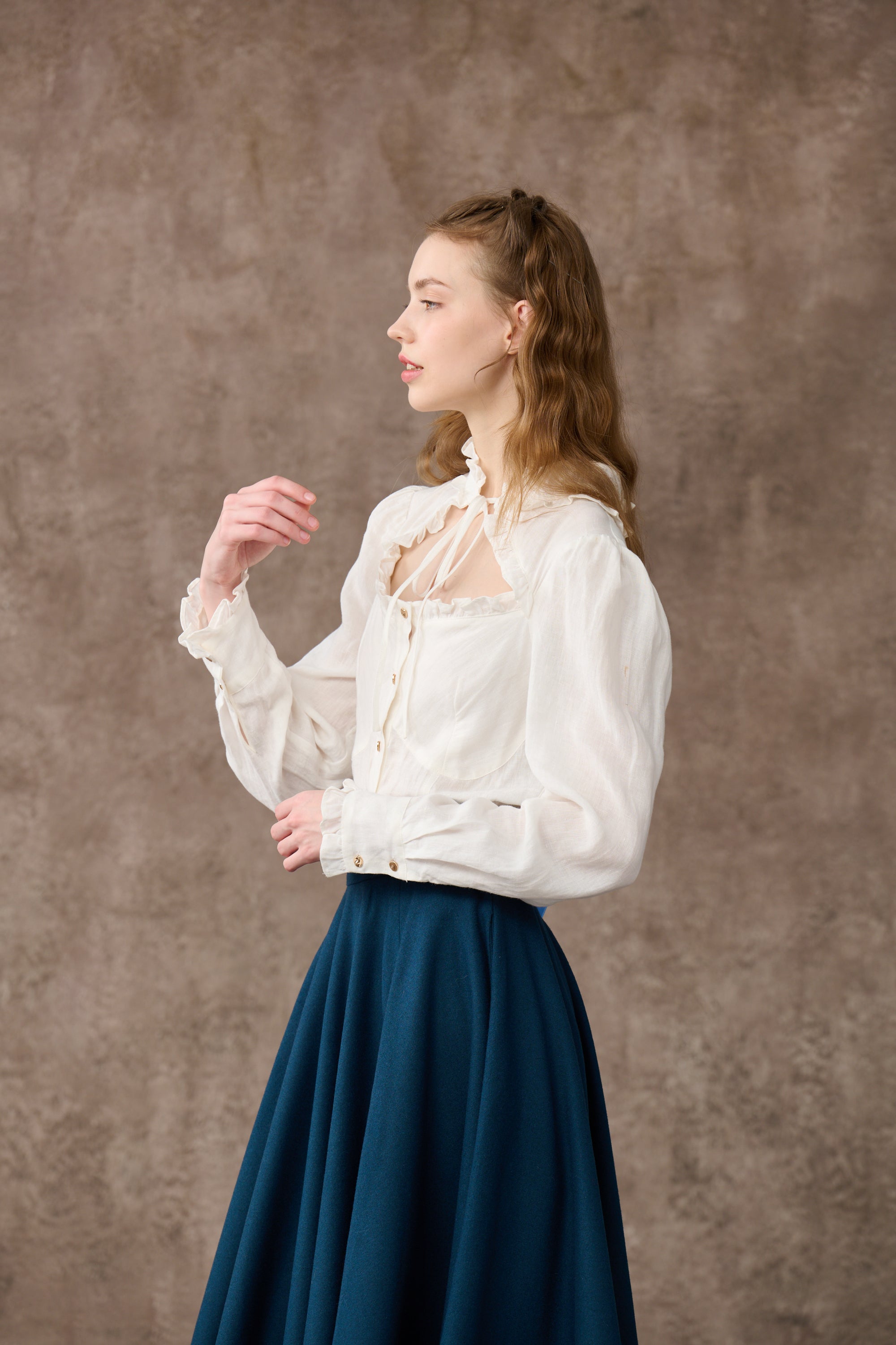 V shape ruffles on the front and back, which creates a very flattering l look when you walk.