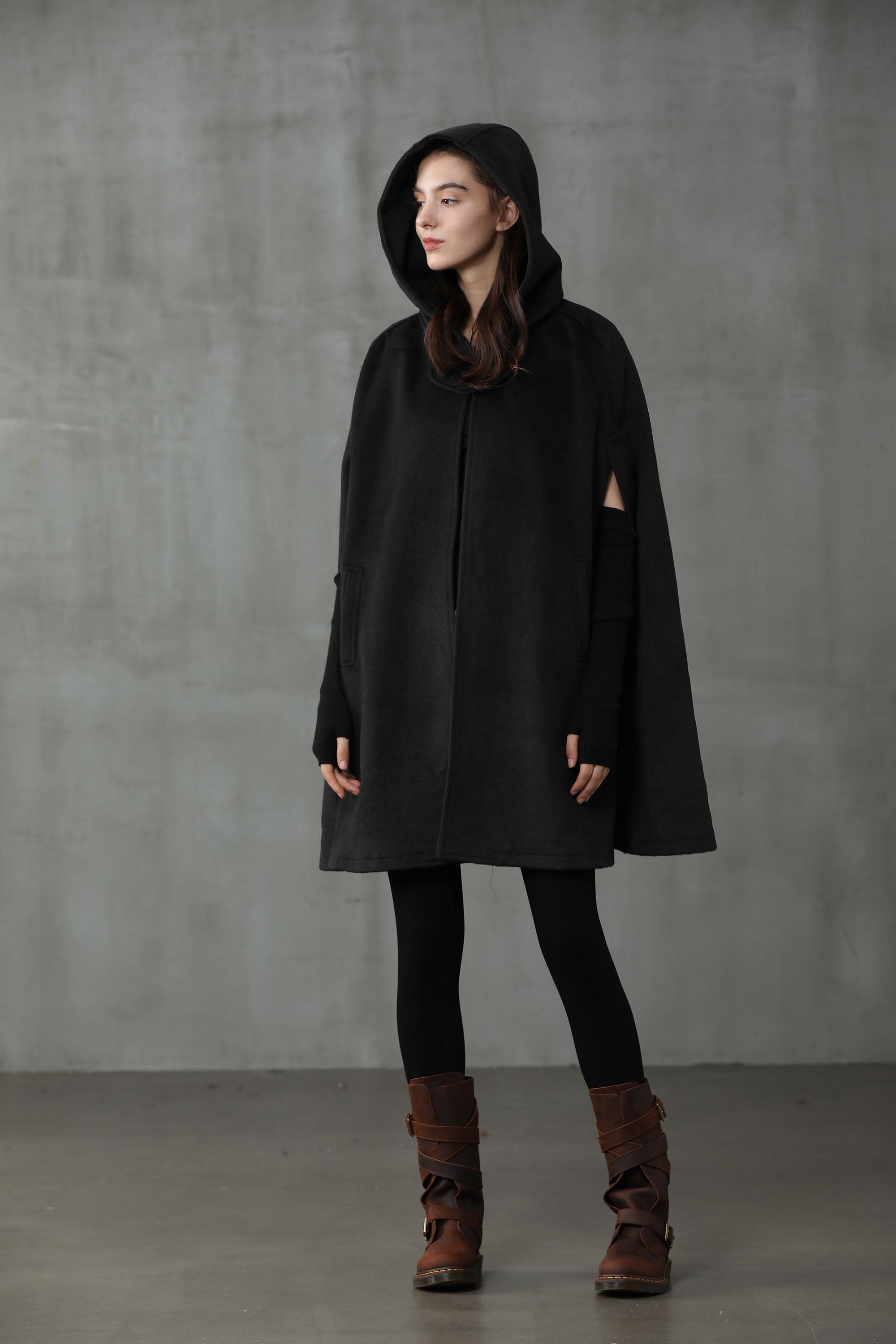 Spun from a cashmere-virgin wool blend, this black cape is timeless.