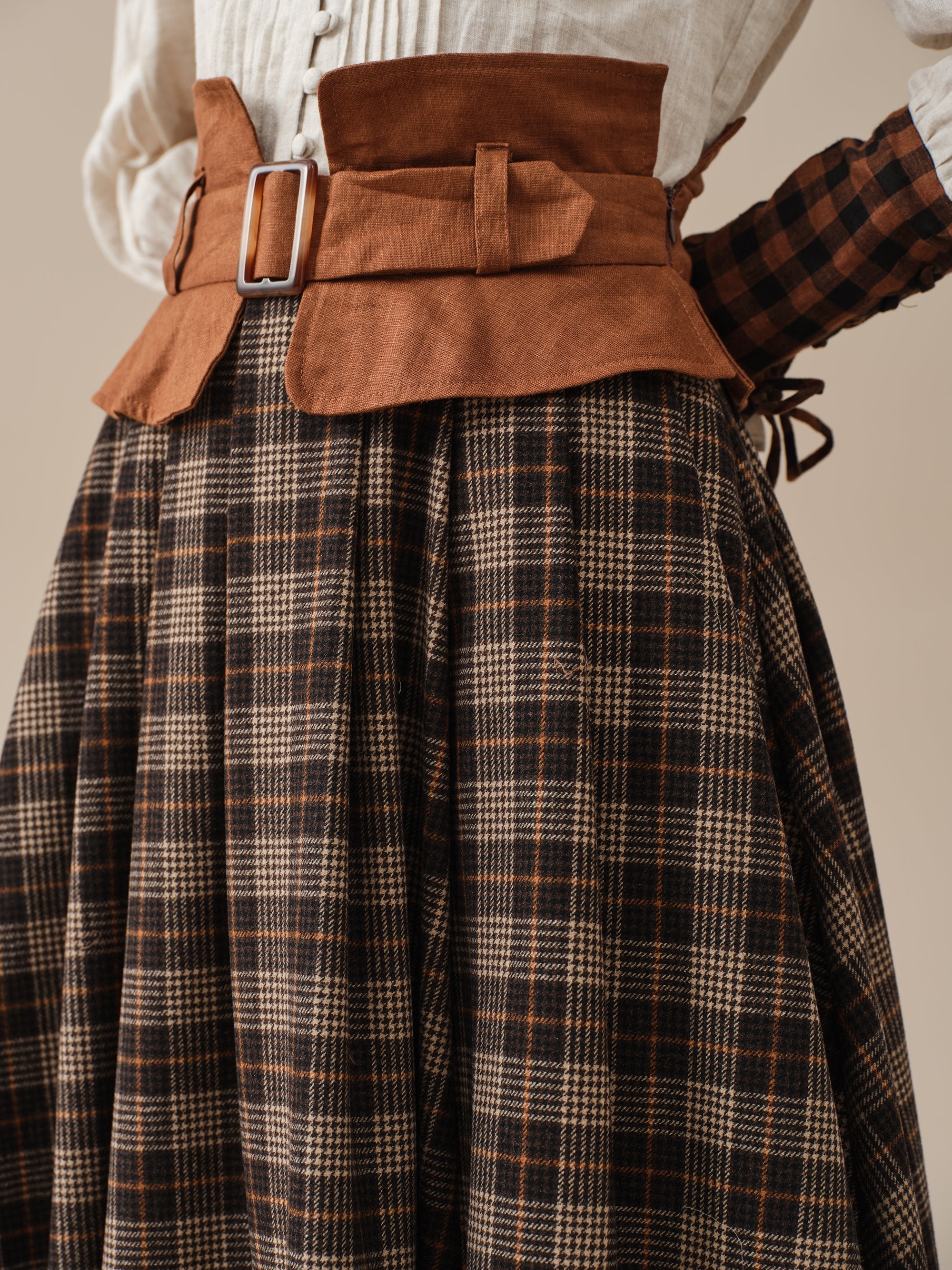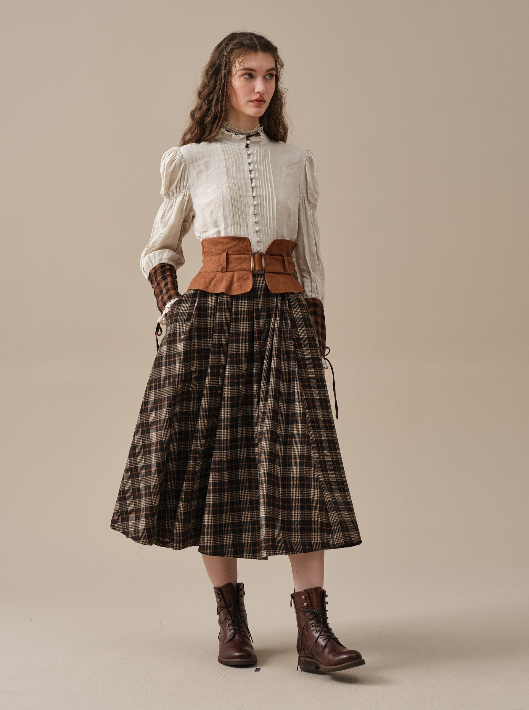vintage wool skirt,tartan skirt, midi skirt, warm wool skirt, winter skirt, A-Line Skirt