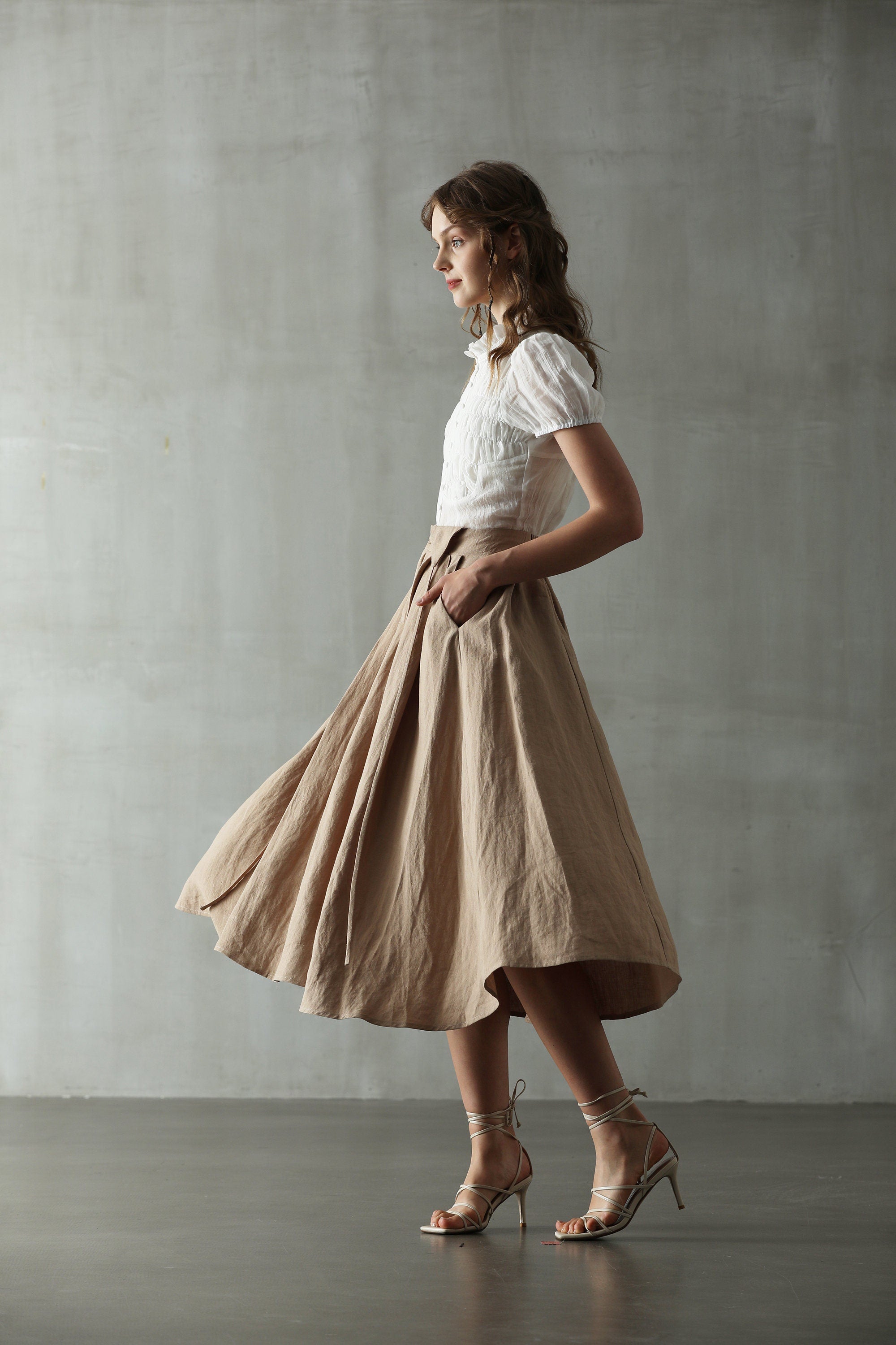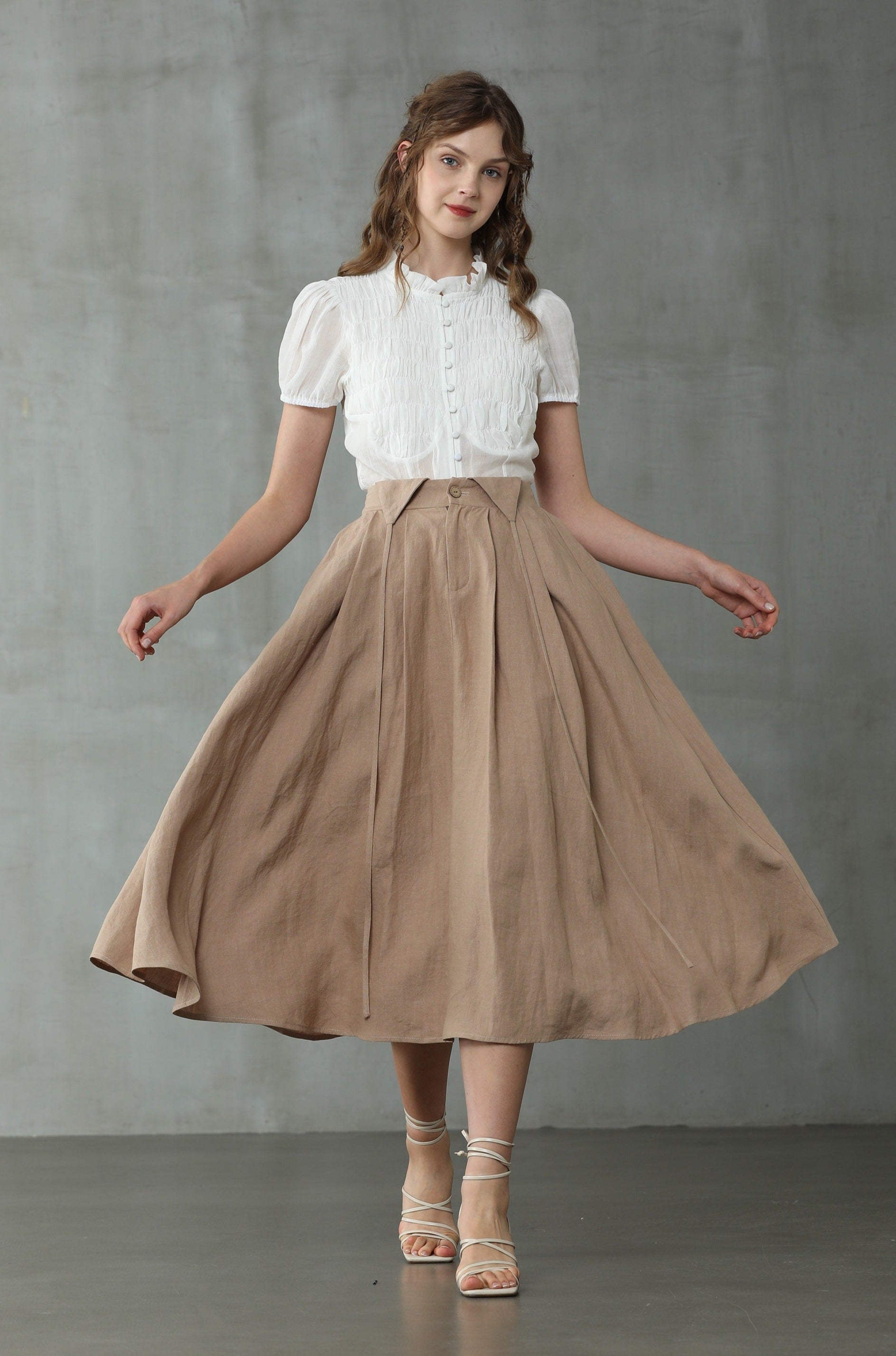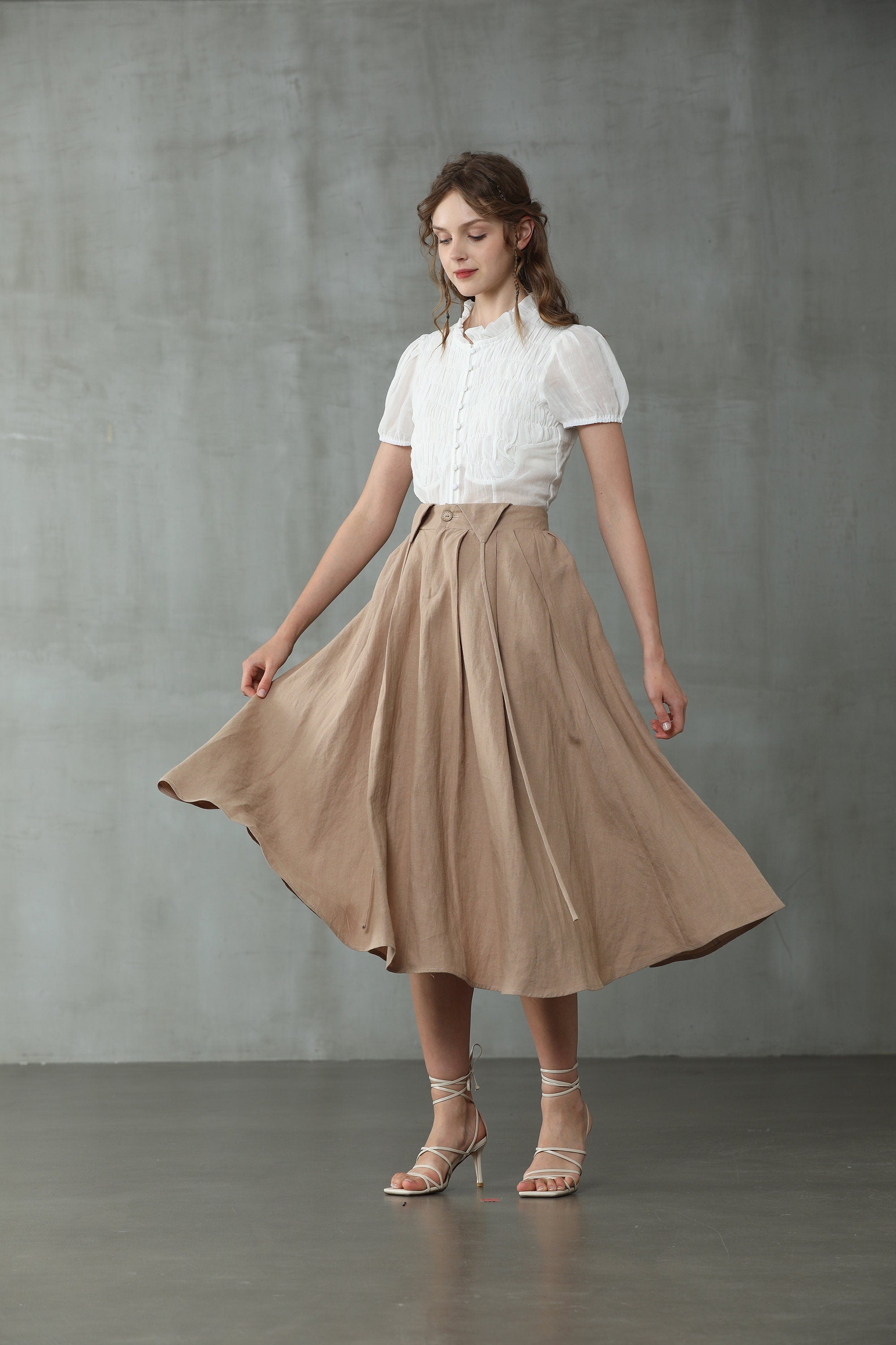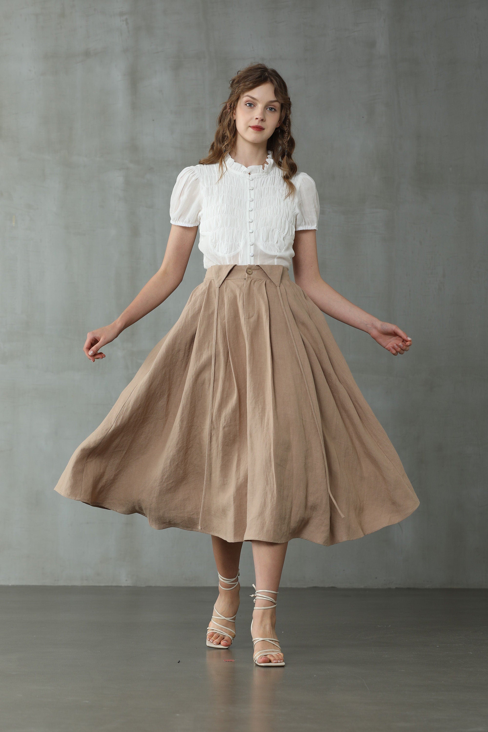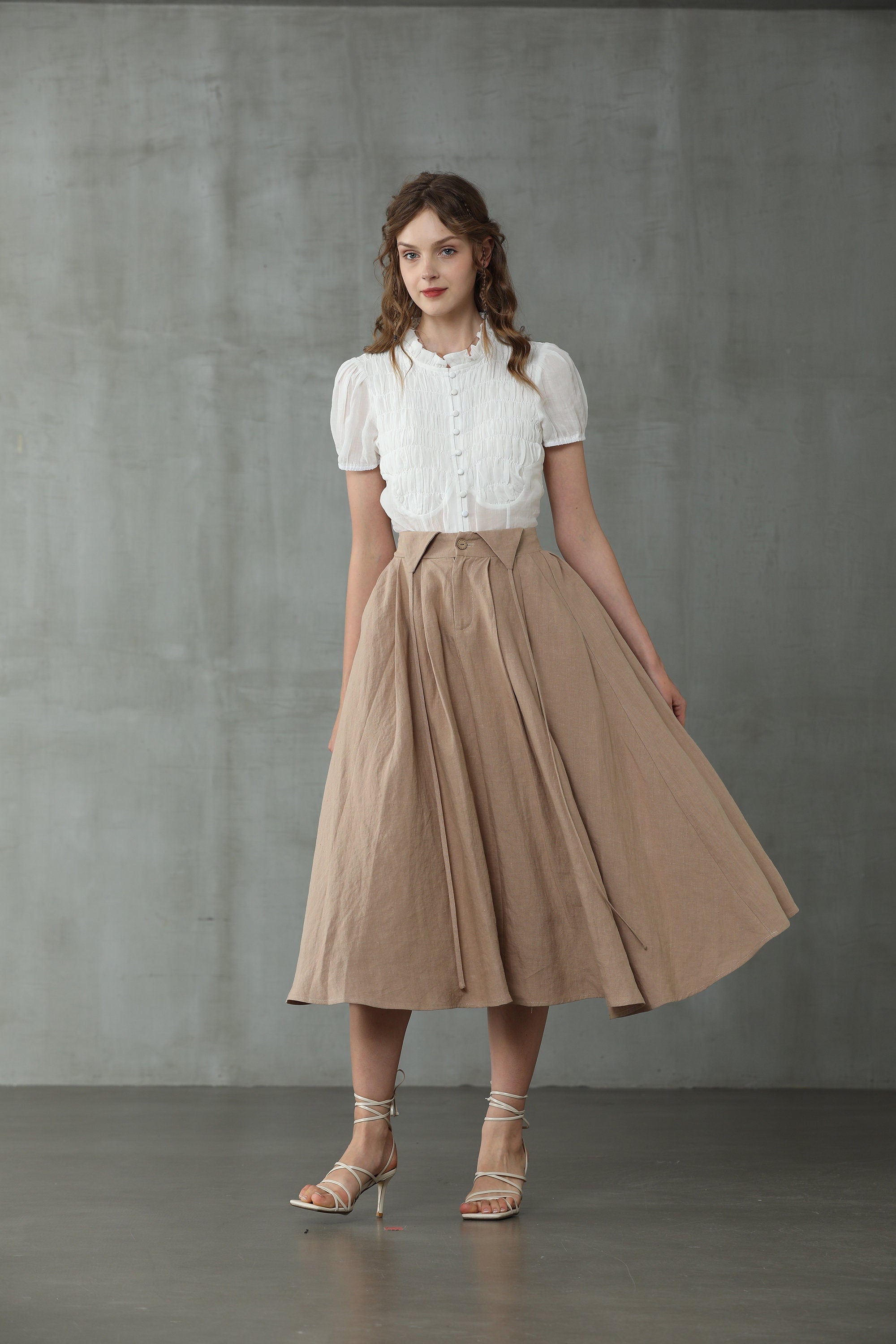 The elegant piece is finished in a beige hue and detailed with pleated. featuring a concealed fly and button fastening, partially elasticated at the waistband.