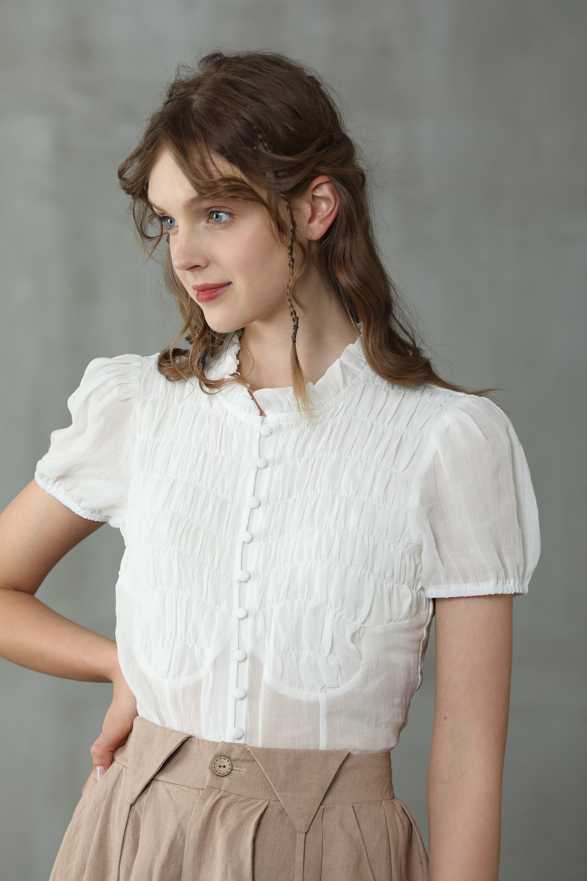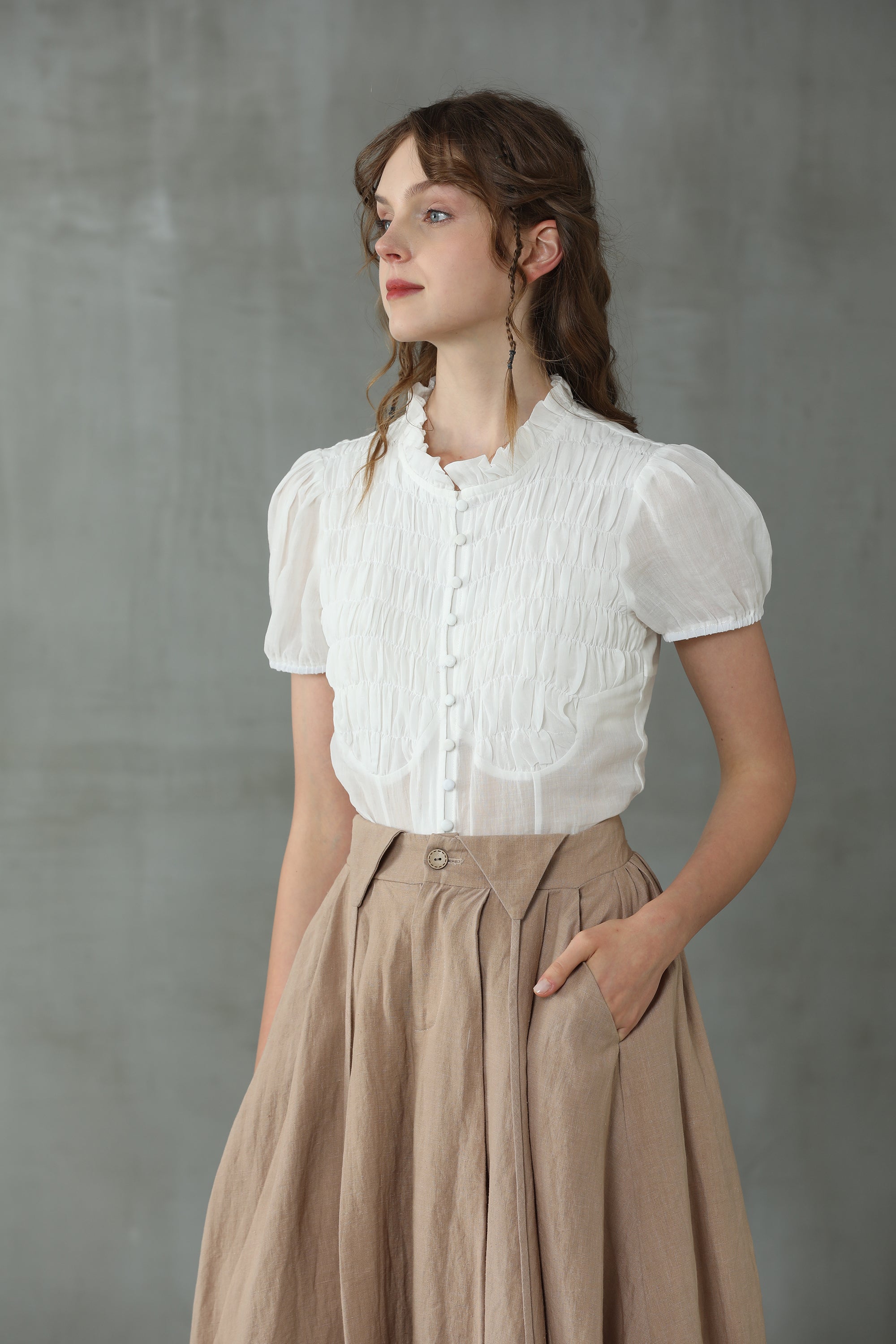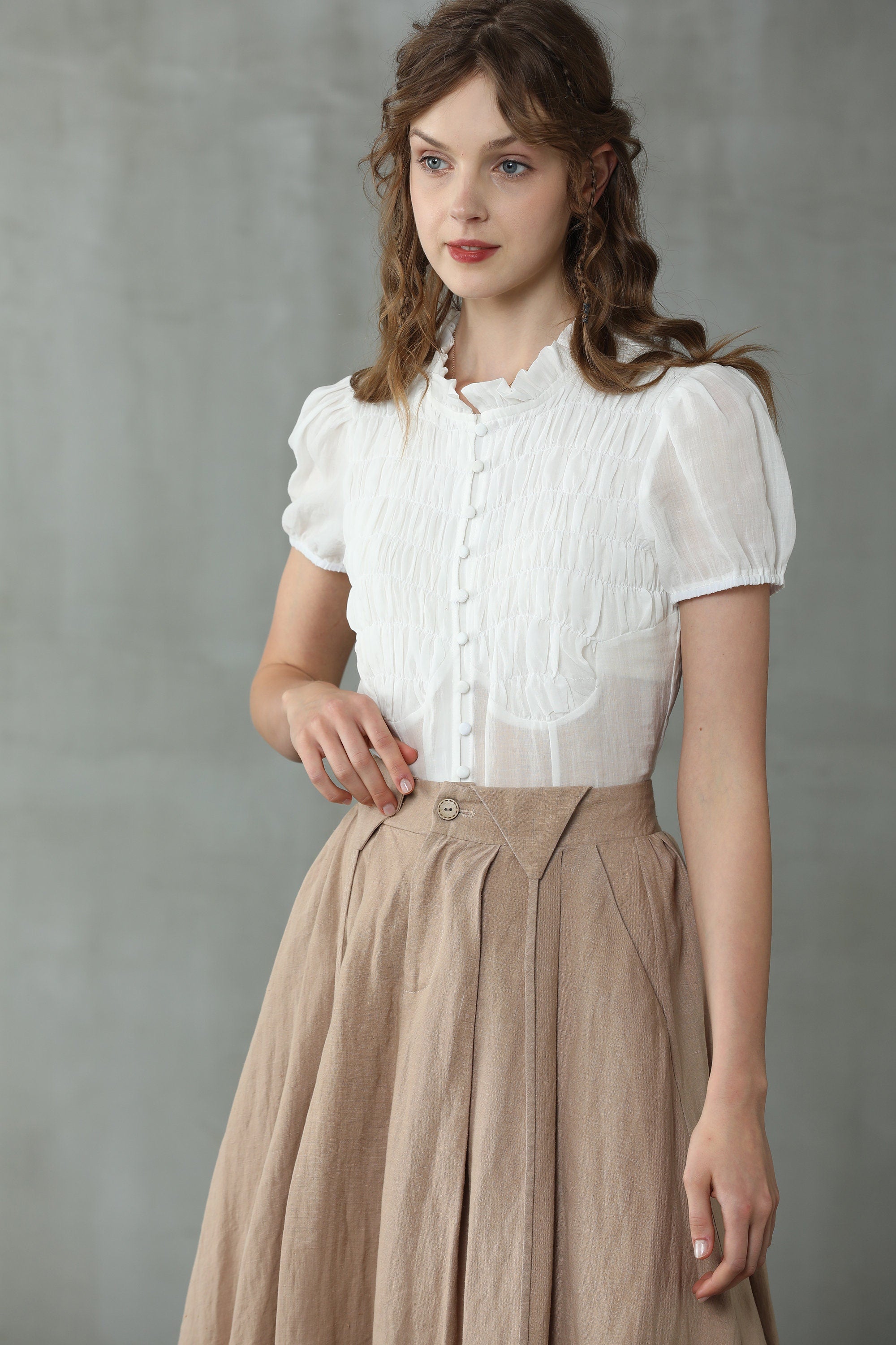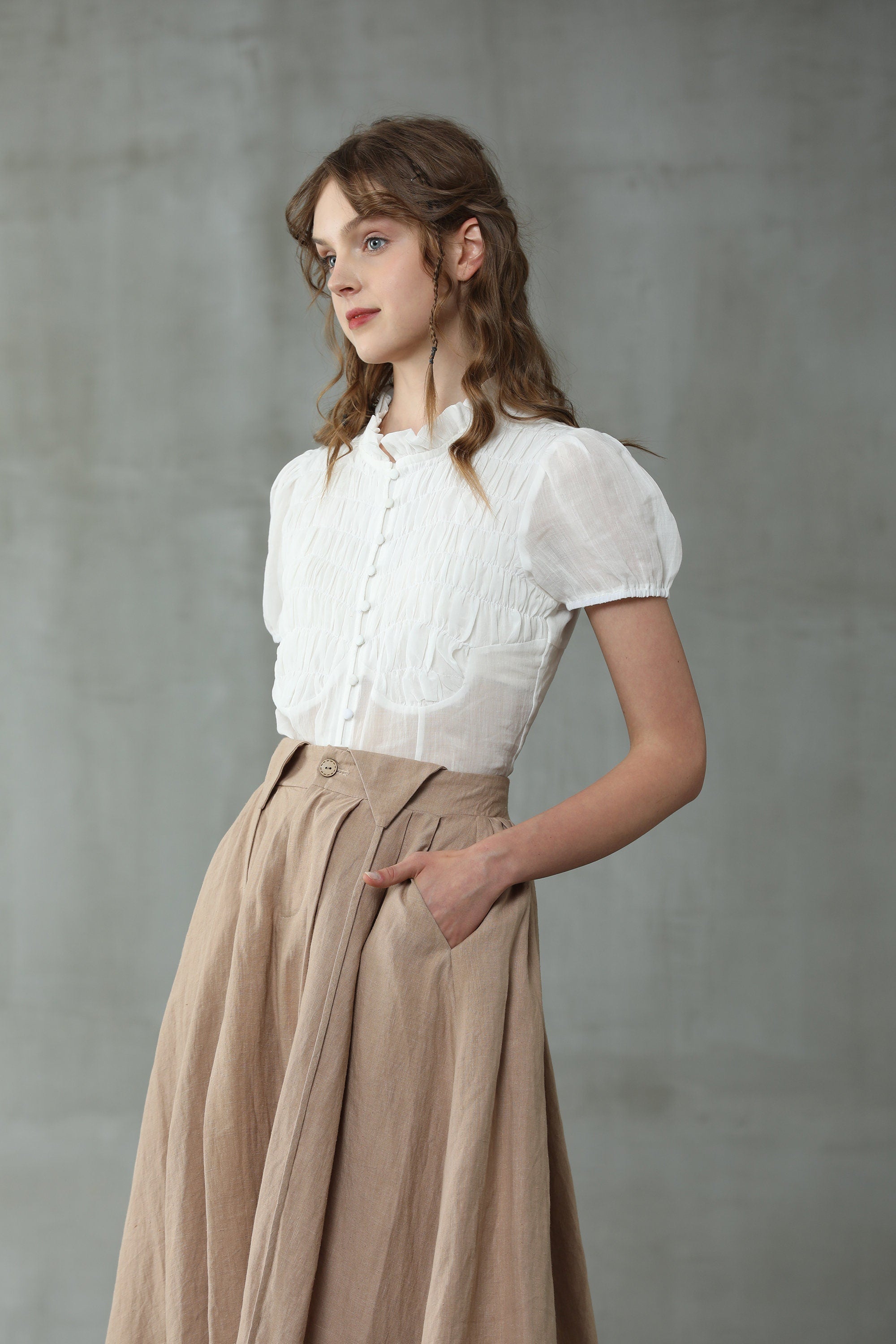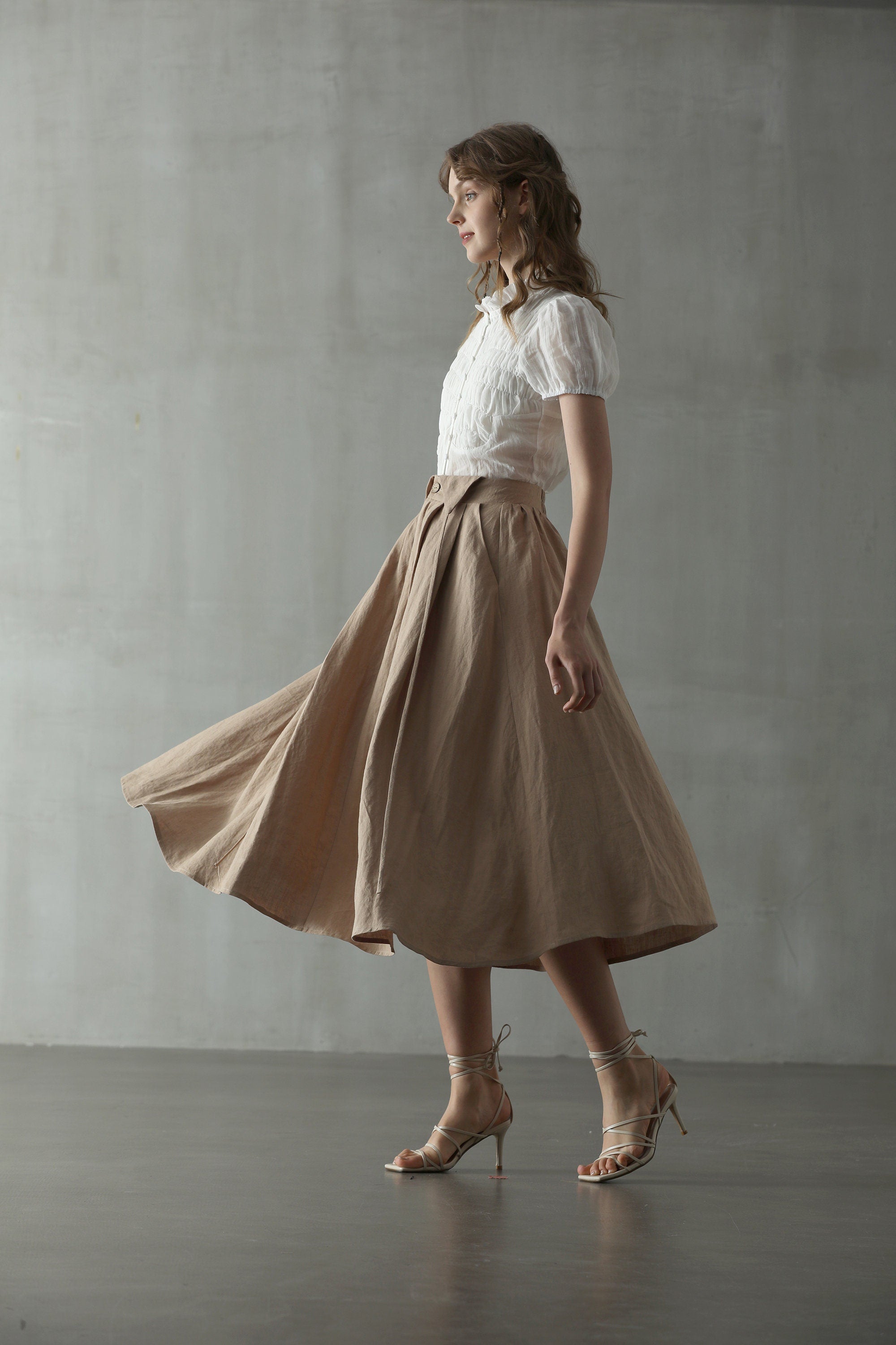 The elegant piece is finished in a beige hue and detailed with pleated. featuring a concealed fly and button fastening, partially elasticated at the waistband.
