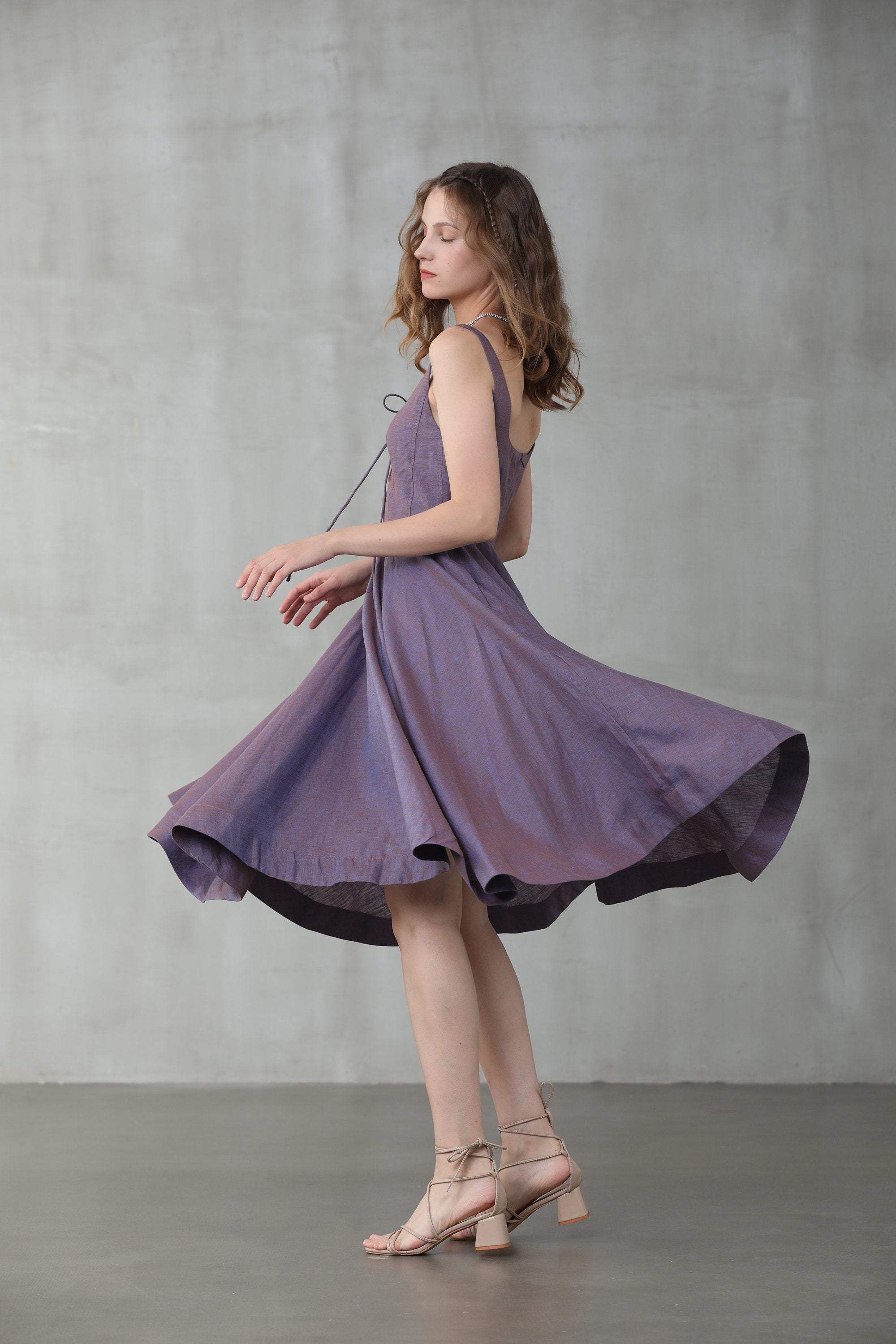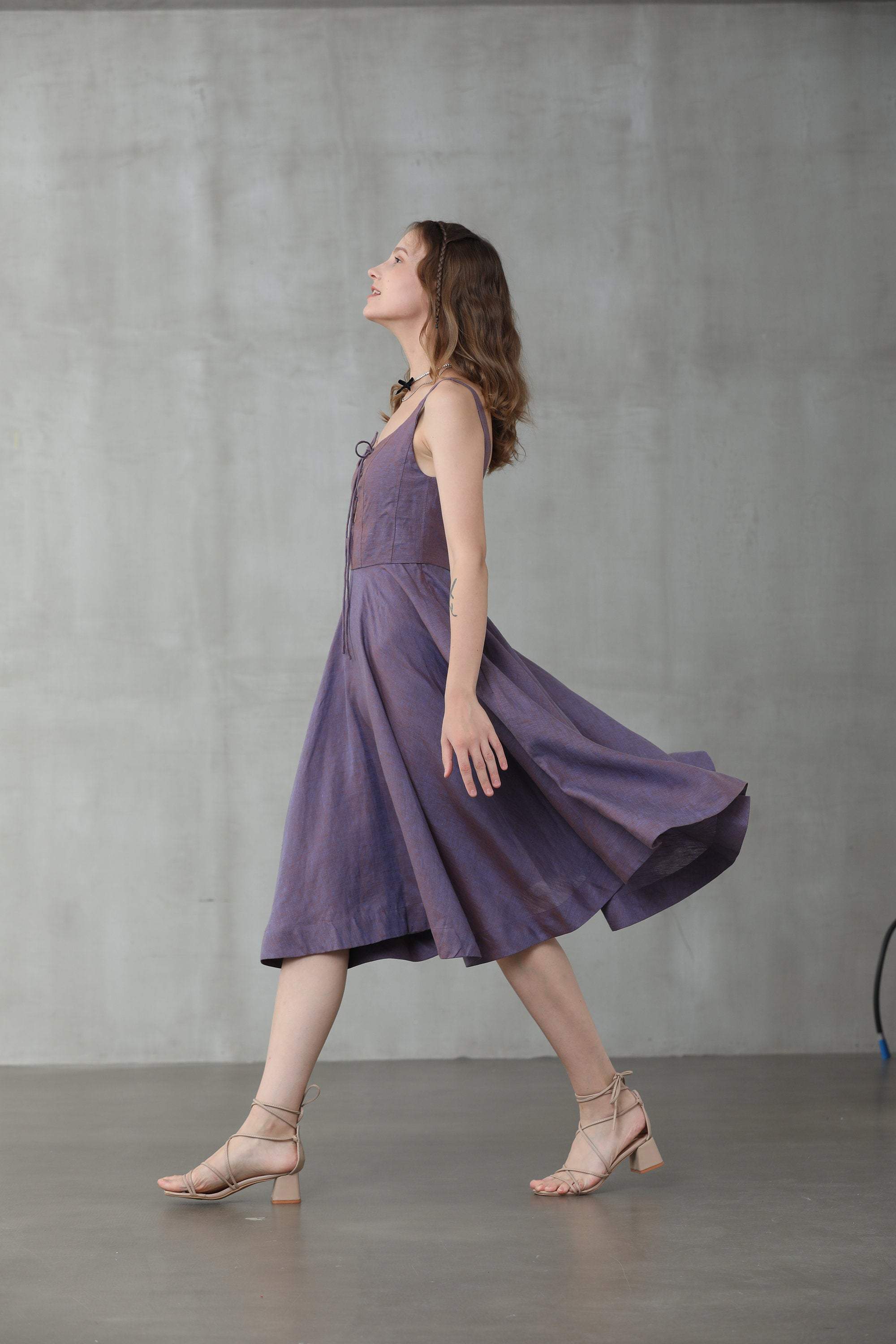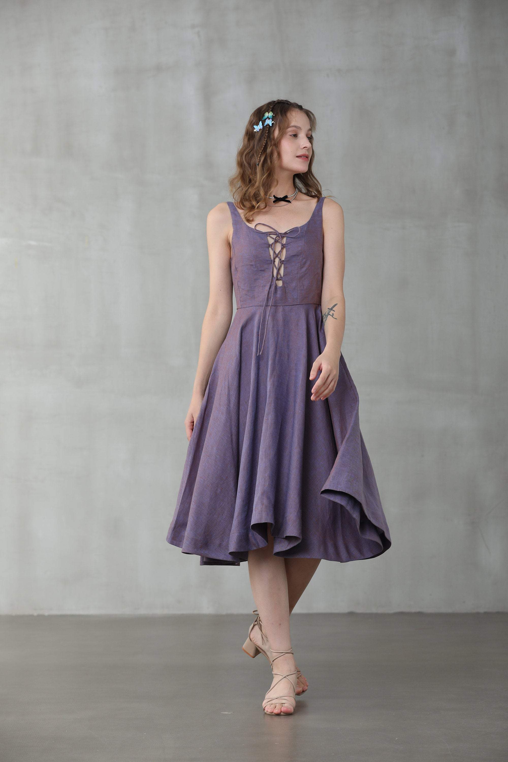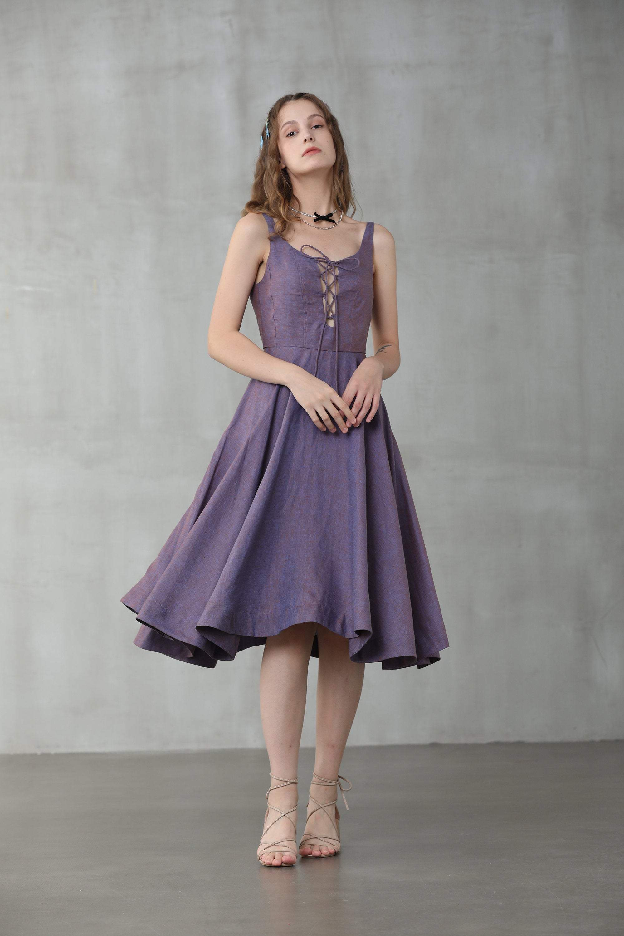 Constructed from special dyed high end linen and boasting a fit and flared hem with strings detailing, this purple linen dress will accompany you on those midnight strolls and sunset parties. You're about to steal the show. Time to turn heads.