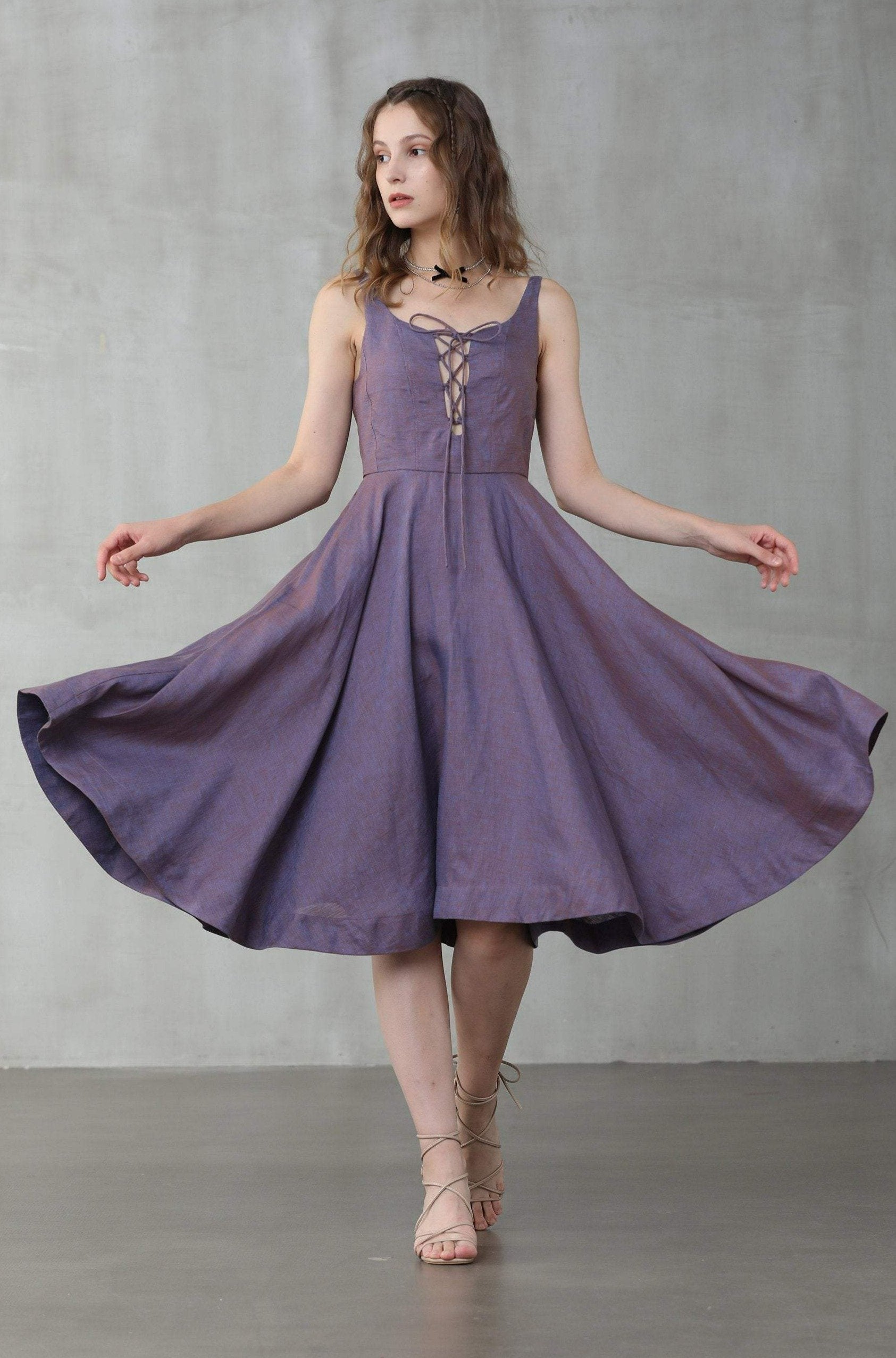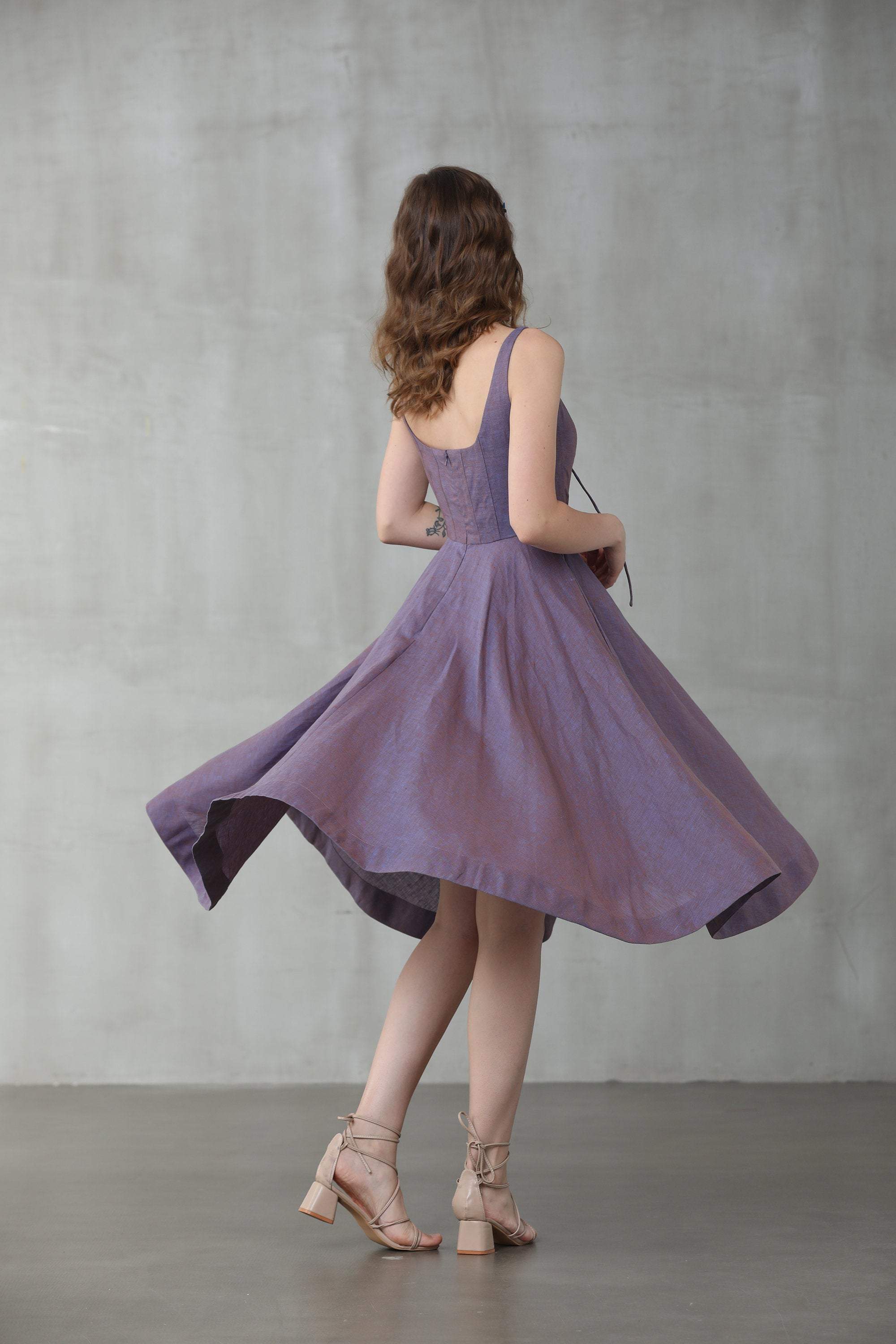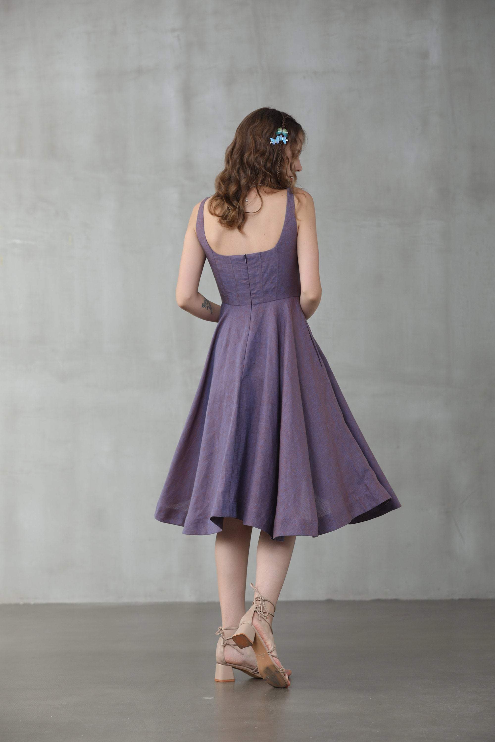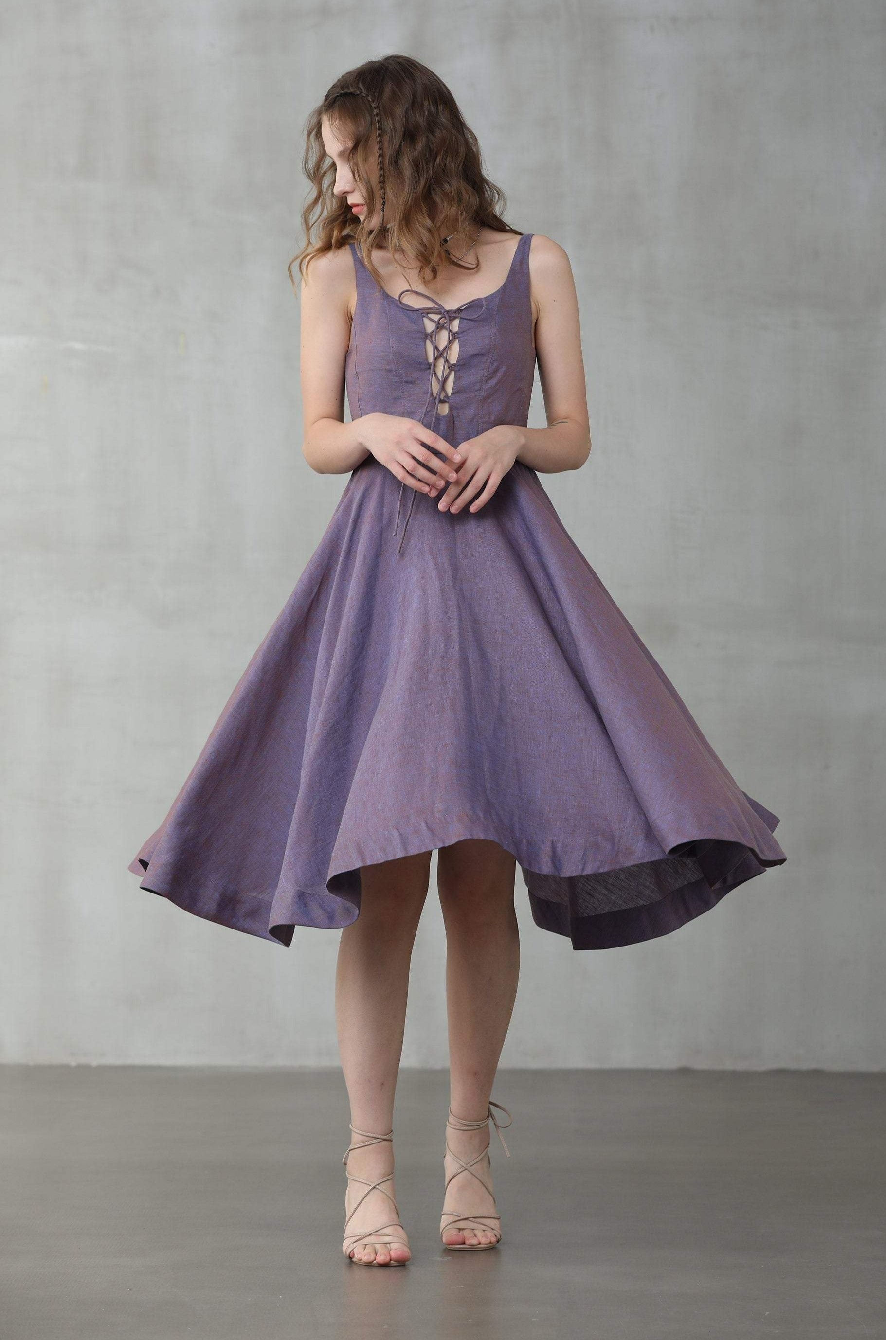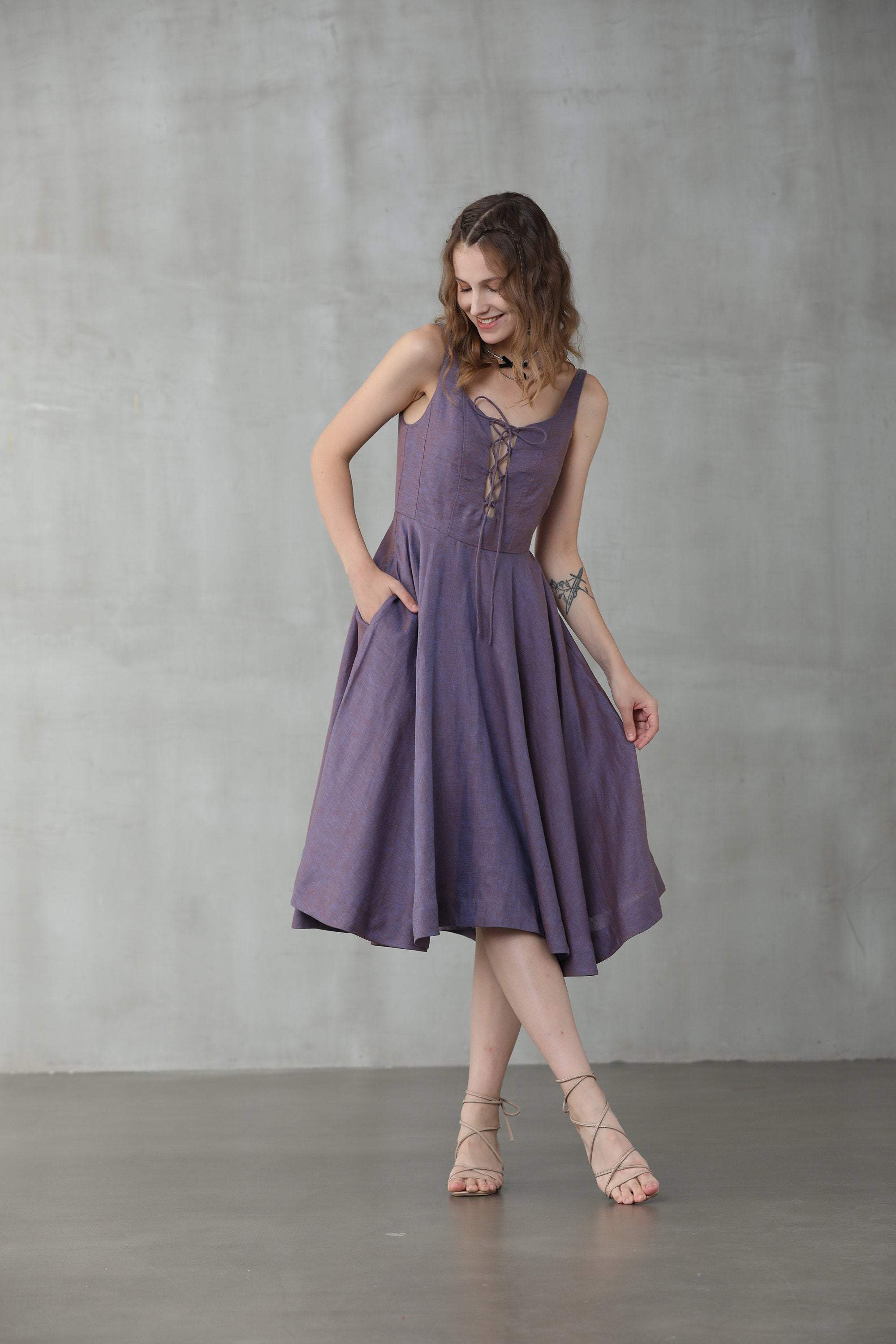 Constructed from special dyed high end linen and boasting a fit and flared hem with strings detailing, this purple linen dress will accompany you on those midnight strolls and sunset parties. You're about to steal the show. Time to turn heads.