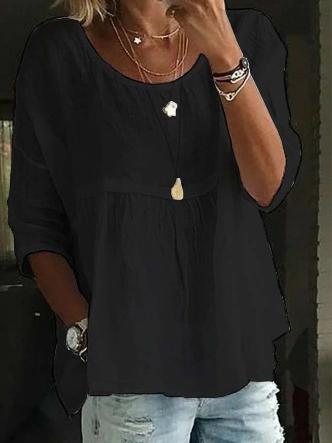 • Women's Casual Cotton Linen Round Neck Long Sleeve T-Shirt