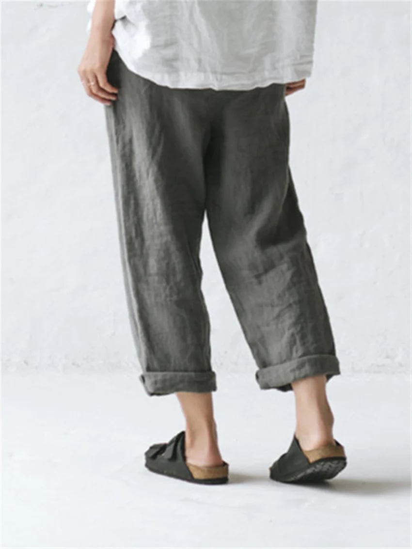 A beautifully Casual Plus Size Pants.Knitted in our textured linen and cotton.Trousers cut with a full leg silhouette that tapers to the ankle. With a wide waistband, deep front-pockets and dart details on the inside leg.Advanced and elegant color scheme in color.In four great colours that will work across your wardrobe.Not only can it bring you a comfortable wearing experience,but it can also bring you a casual feeling.