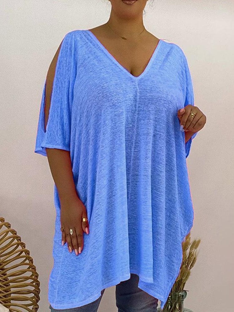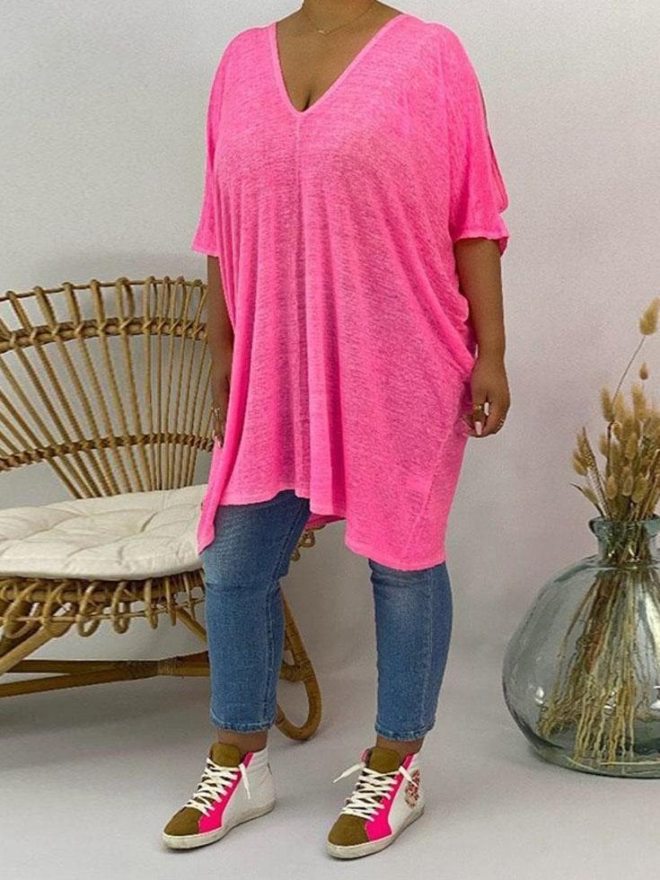 • Women's Plus Size V-Neck Loose Short Sleeve T-Shirt