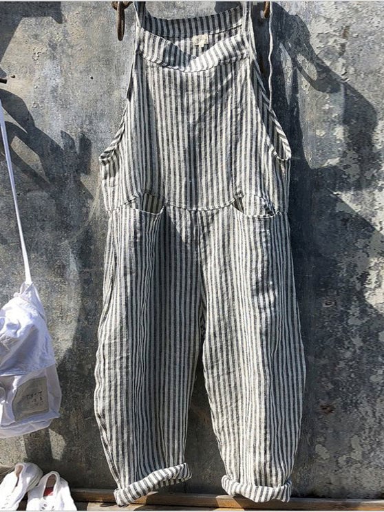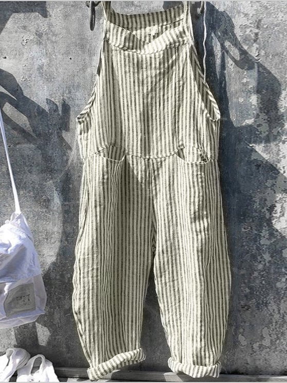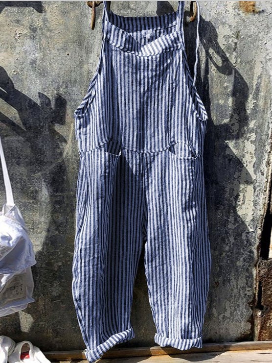 • Women's Stripe Print Lace Up Wide Leg Jumpsuit
