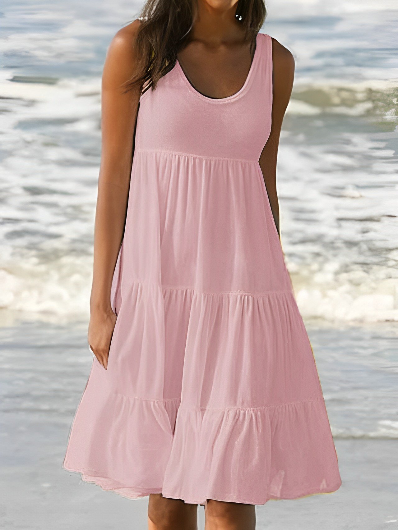 Stay on trend this season in our new casual, v neck dress. We especially love the solid color fabric and think this piece will be a new favorite in your closet!