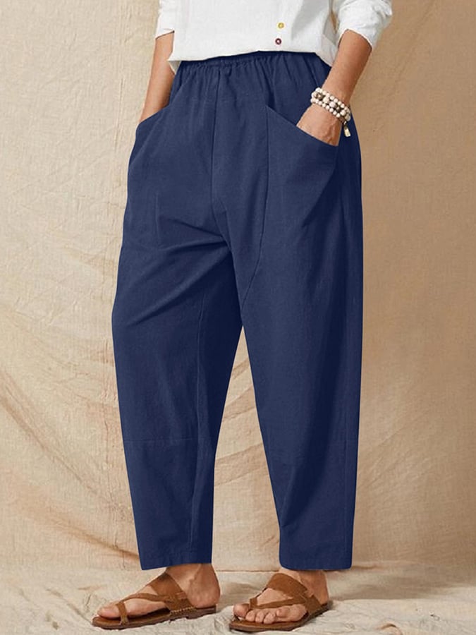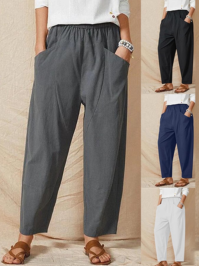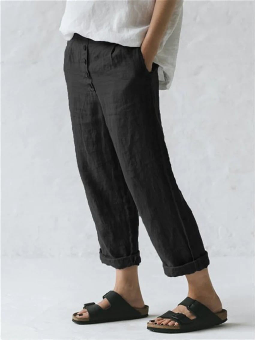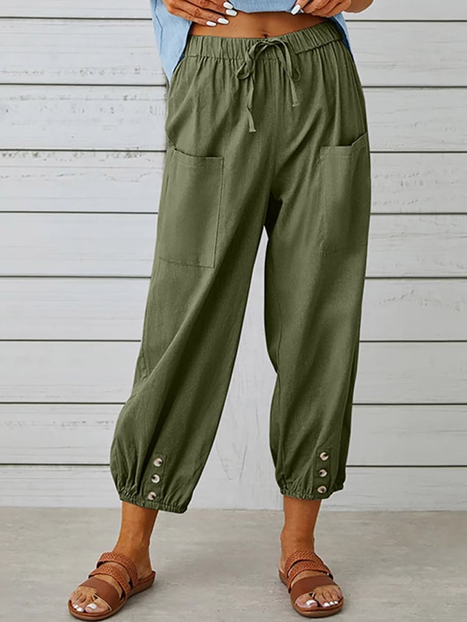 Womens Cotton Linen Pocket Button Casual Plus Size Pants