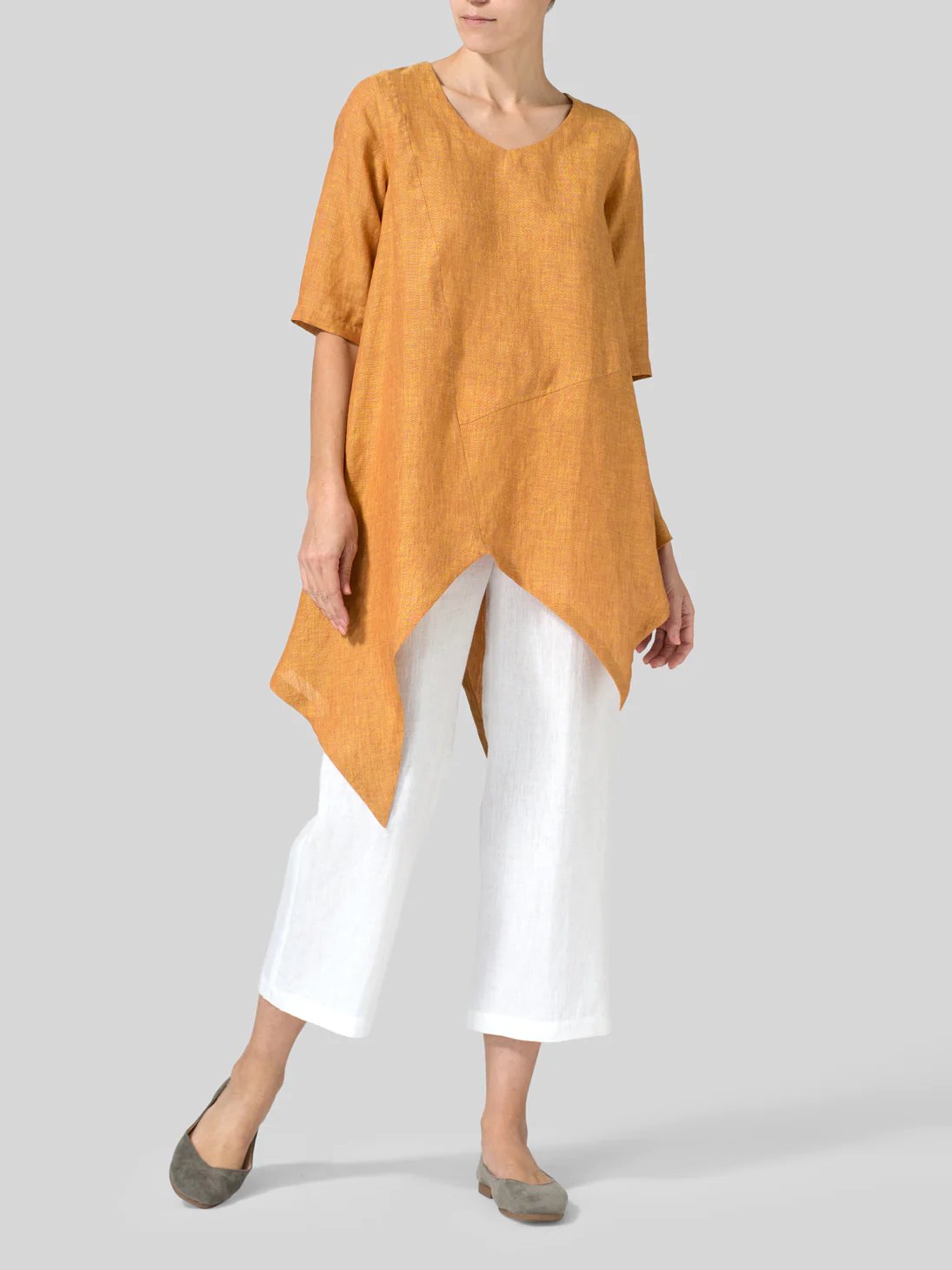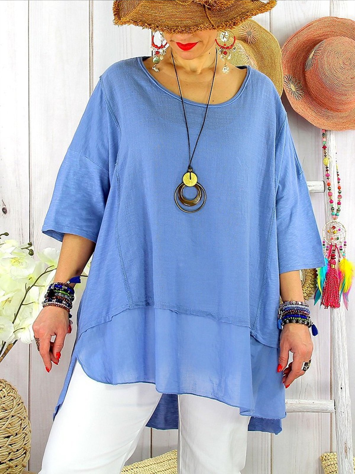 Womens Cotton Linen Irregular Layered Breathable Tunic