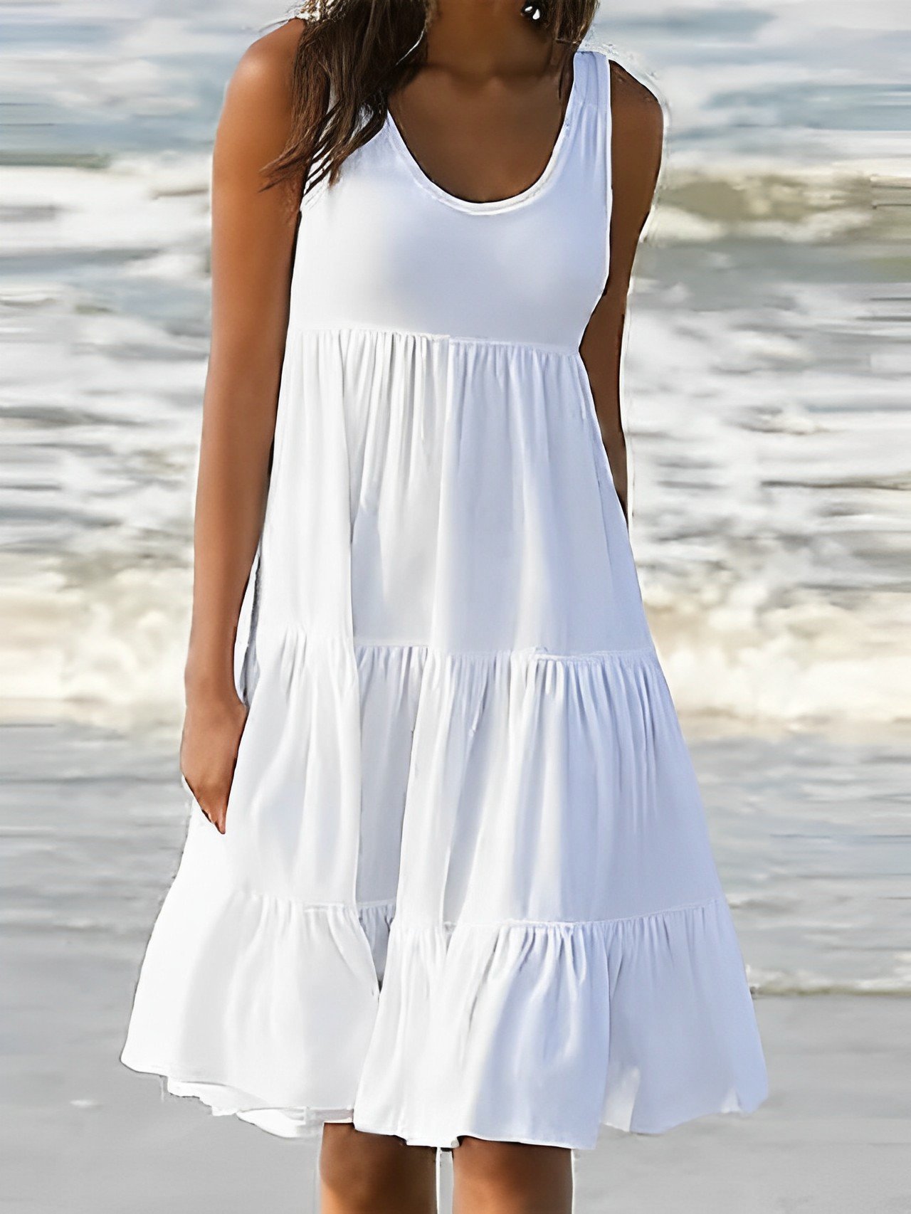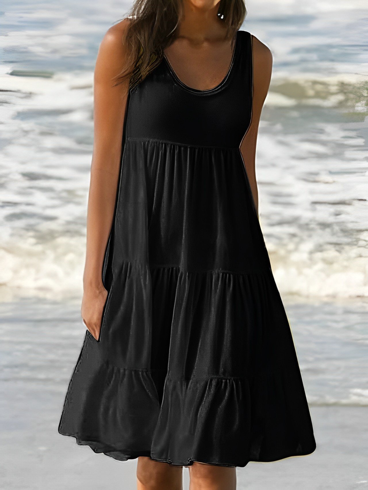 Women's Round Neck Sleeveless Double Patch Pocket Dress