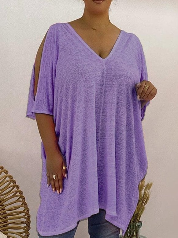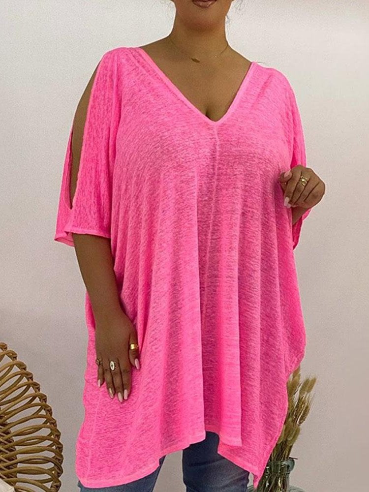 Women's Plus Size V-Neck Loose Short Sleeve T-Shirt