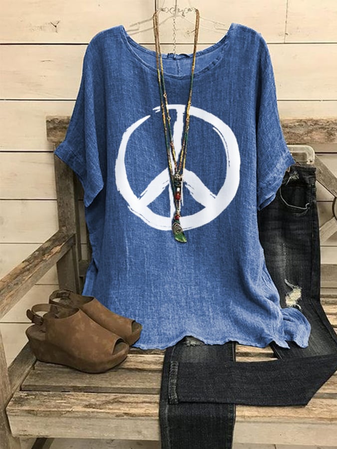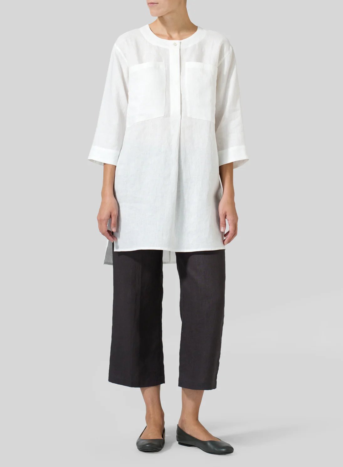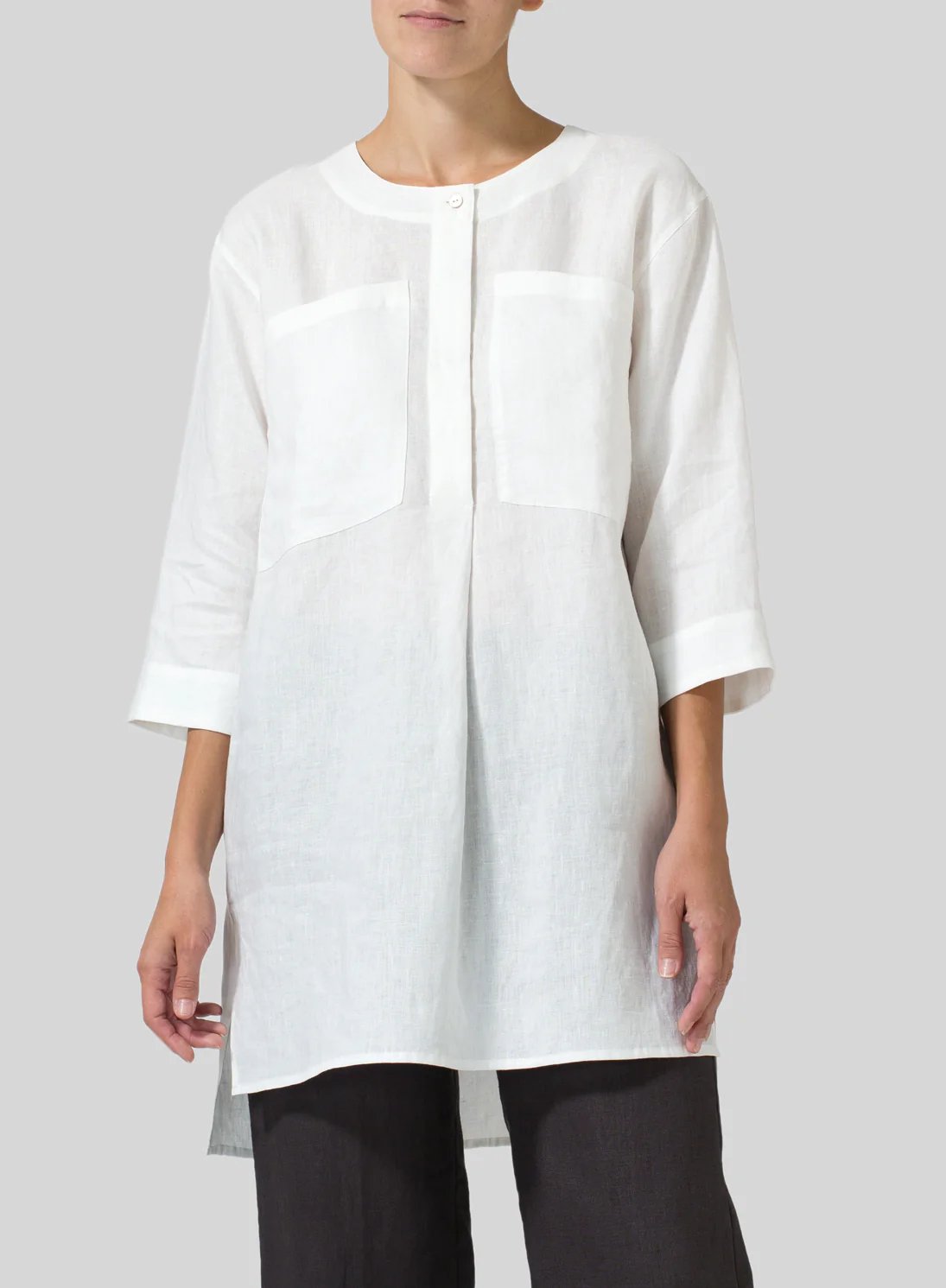 Women's Cotton Linen Pocket Crew Neck Shirt
