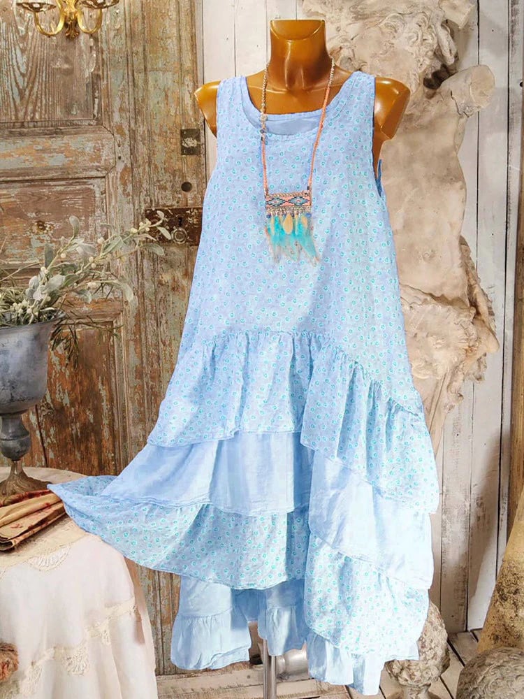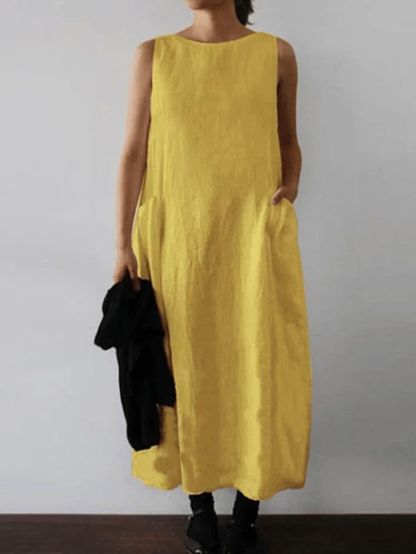 Women's Printed Sleeveless Maxi Hem Cotton Linen Dress