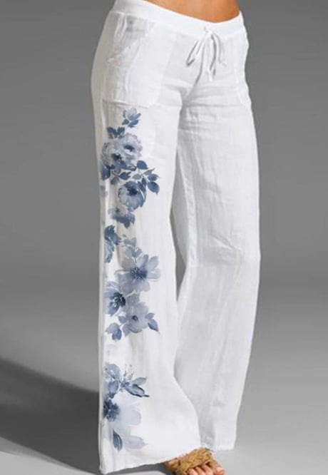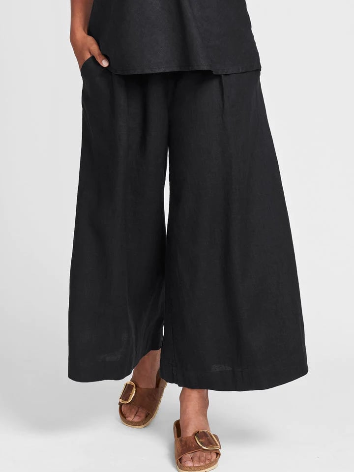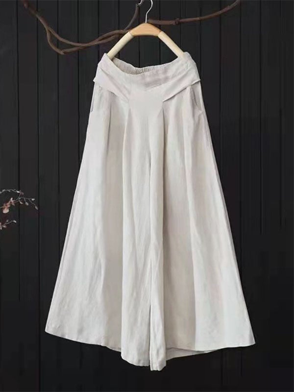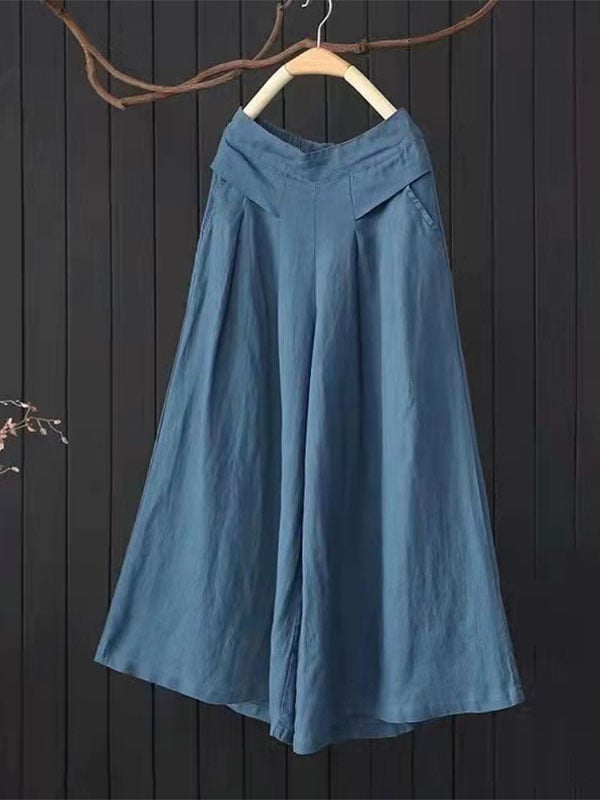 Womens Cotton Linen Elastic Waist Wide Leg Pants