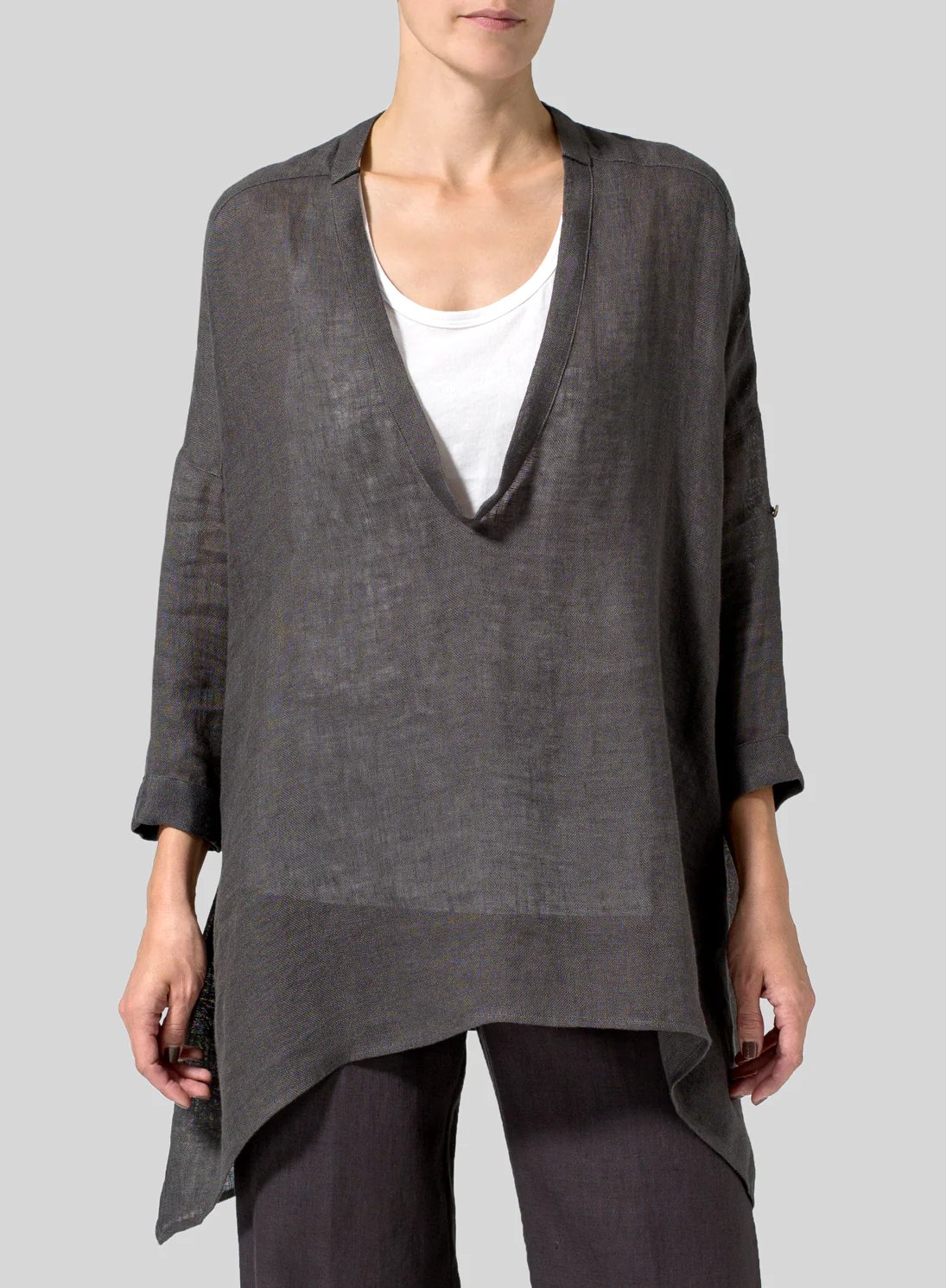 Womens Cotton Linen Loose Deep V Neck Pullover