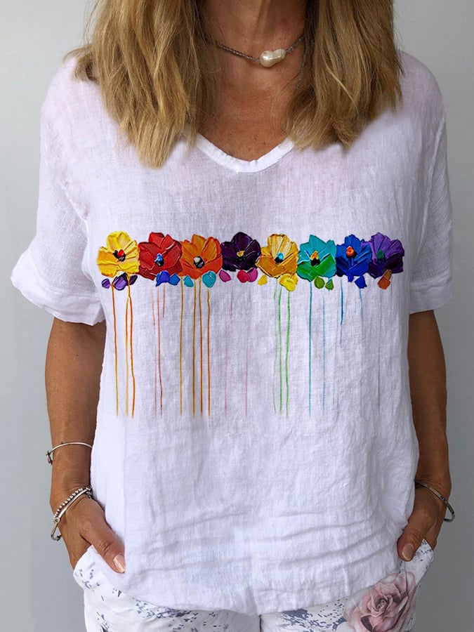 Women's Oil Painting Floral Print Casual Cotton Shirt