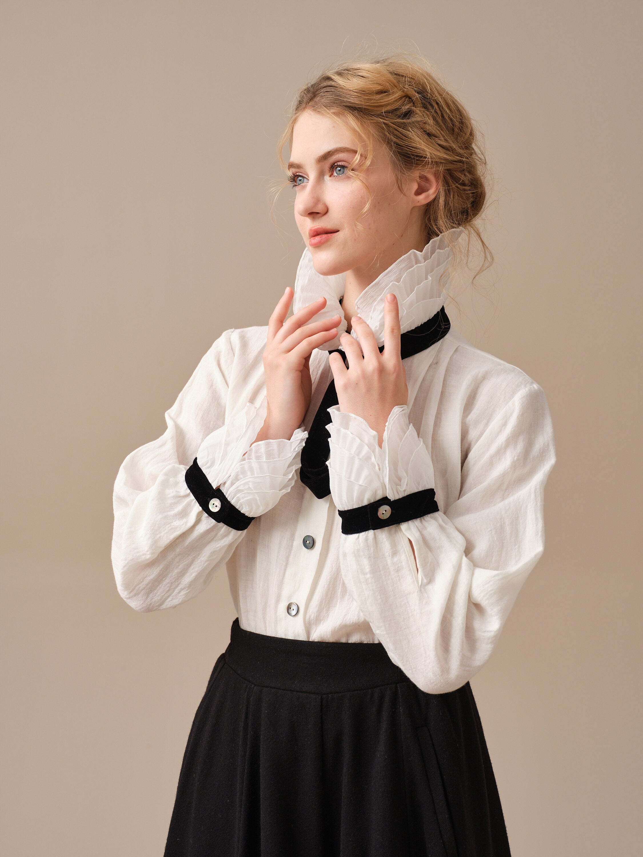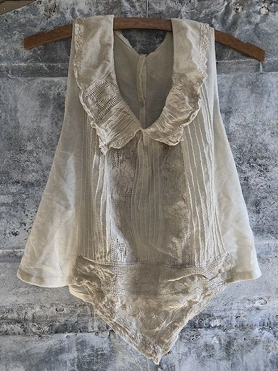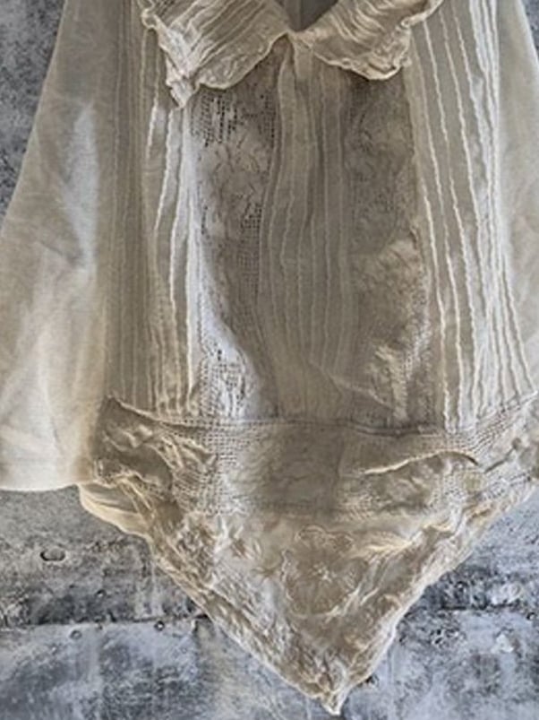 Women's Hollow V-neck Collar Cotton Linen Shirt