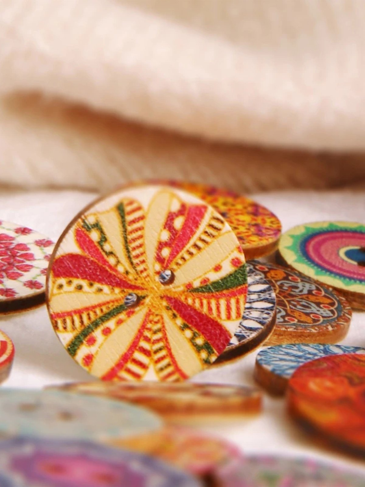 50 pieces of 25mm multicolor wooden buttons round sewing buttons for DIY woven bags, hats and decorations