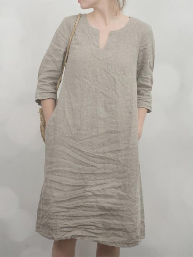 Women's Vintage Cotton Linen Long Sleeve Dress
