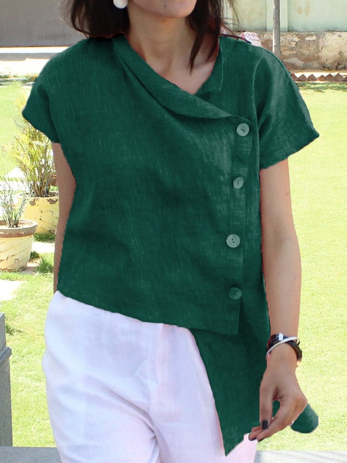 Women's Cotton Linen Irregular Hem Casual Shirt