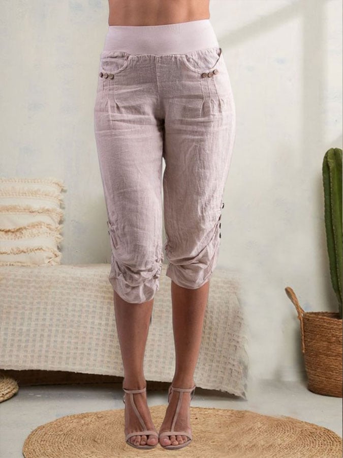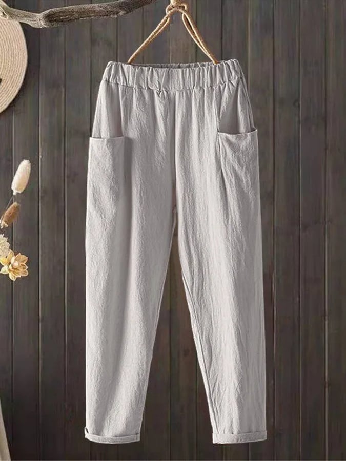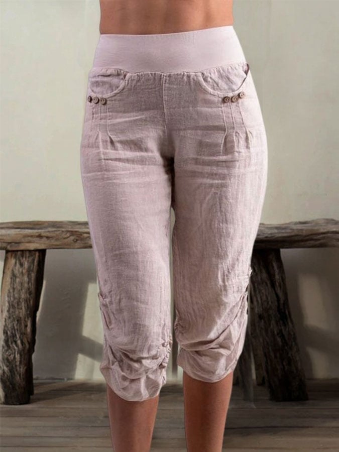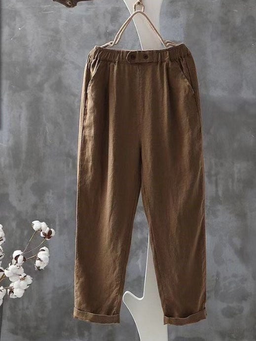 Women's Casual Solid Color Loose Imitation Cotton And Linen Cropped Carrot Pants