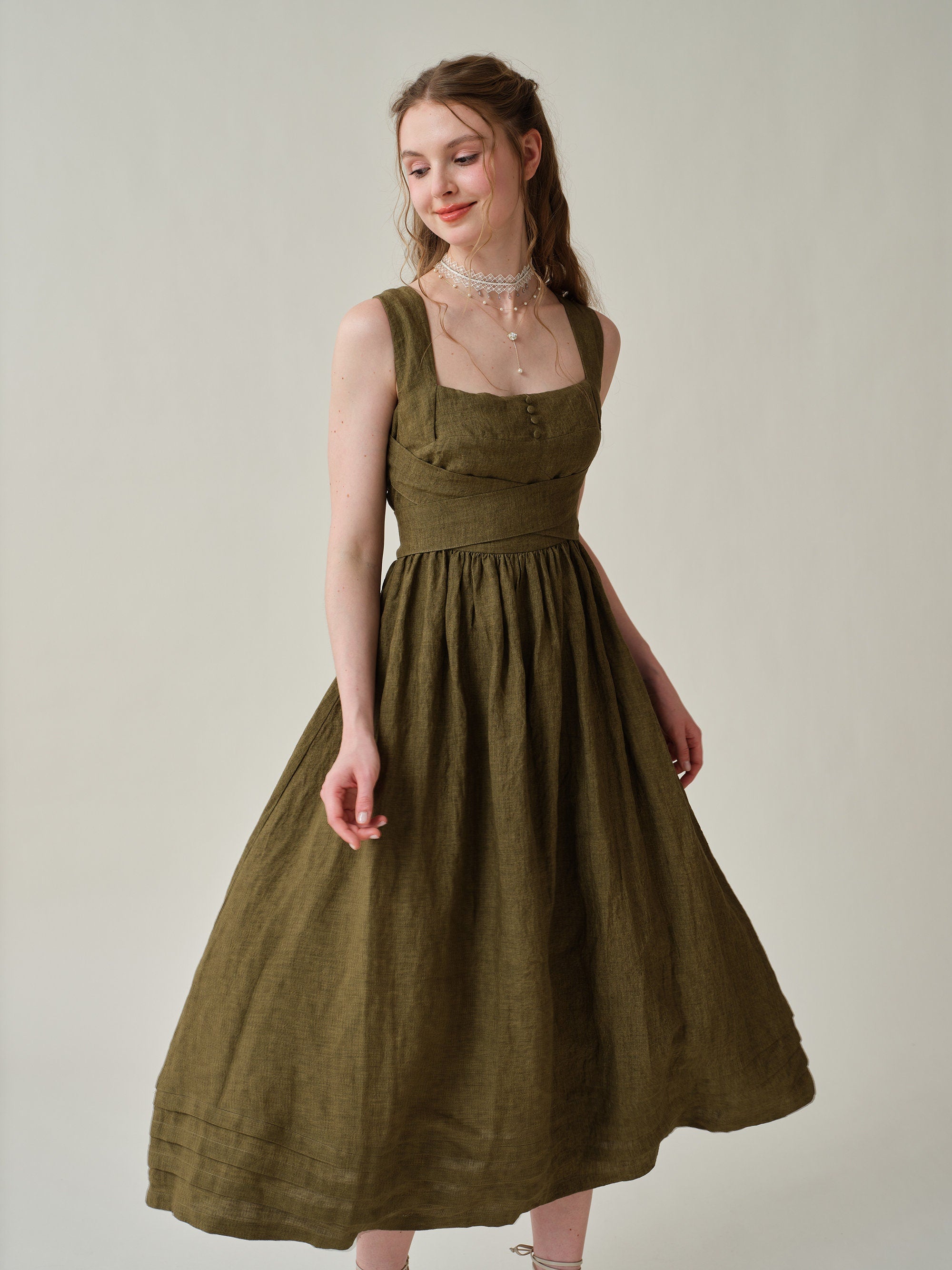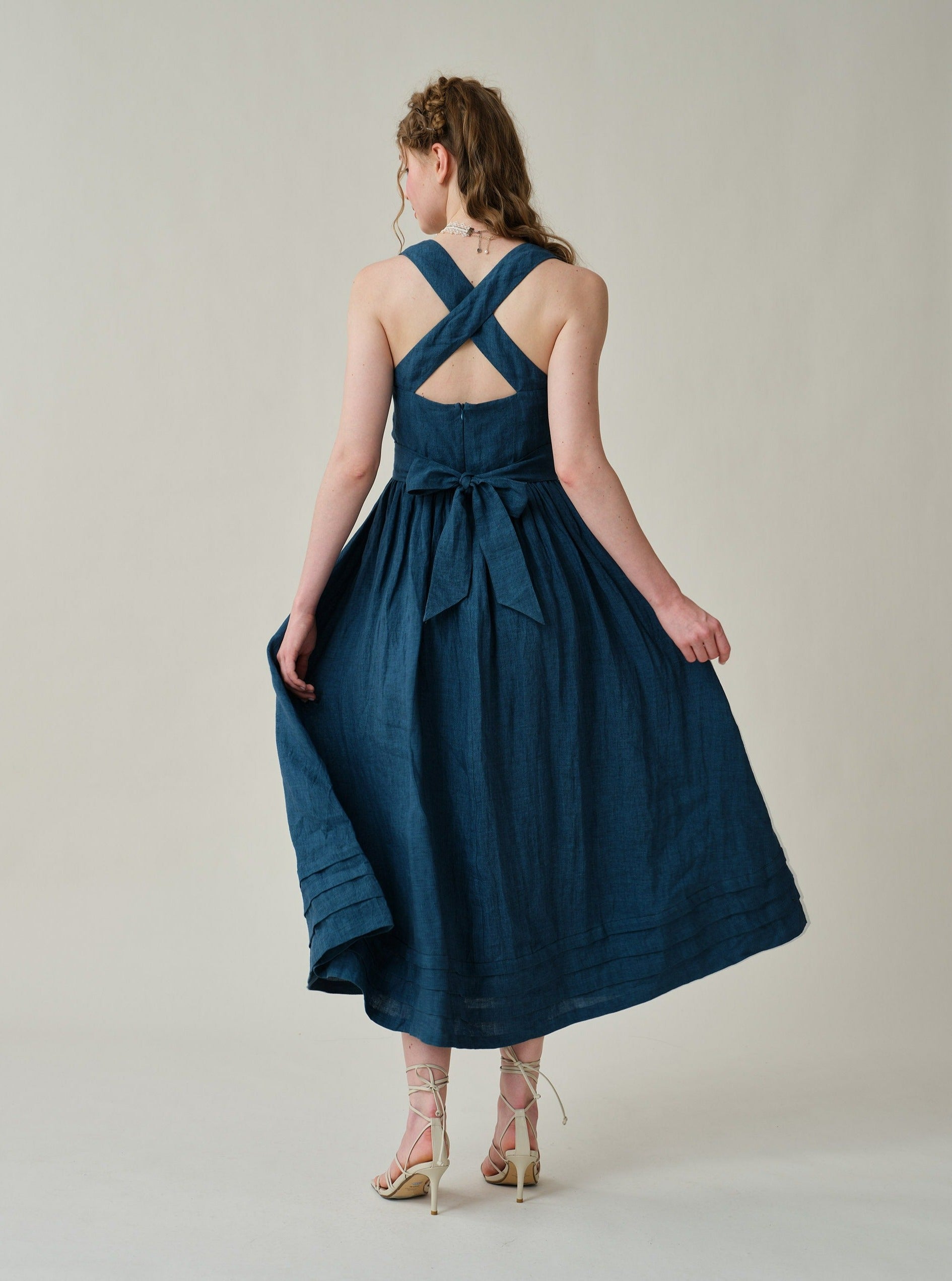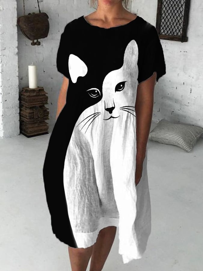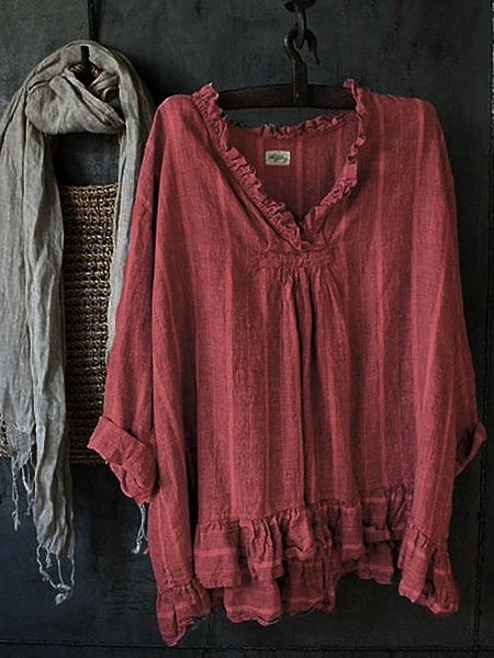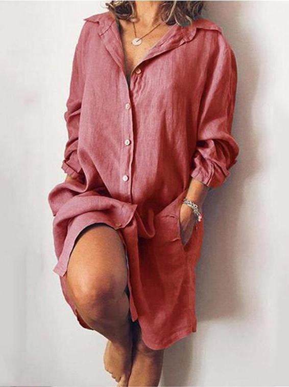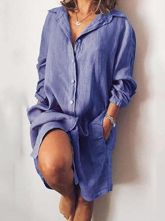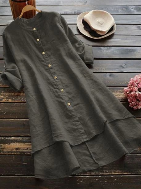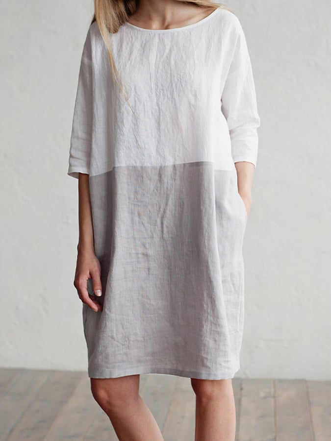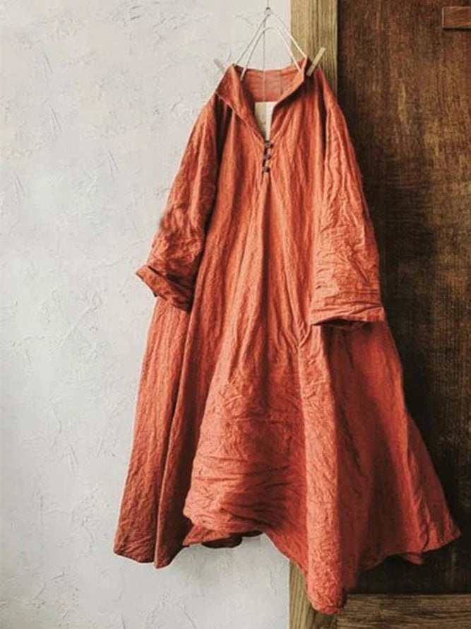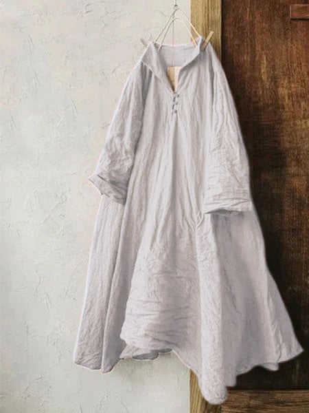 Vintage 3/4 Sleeve Plain V Neck Casual Weaving Dress