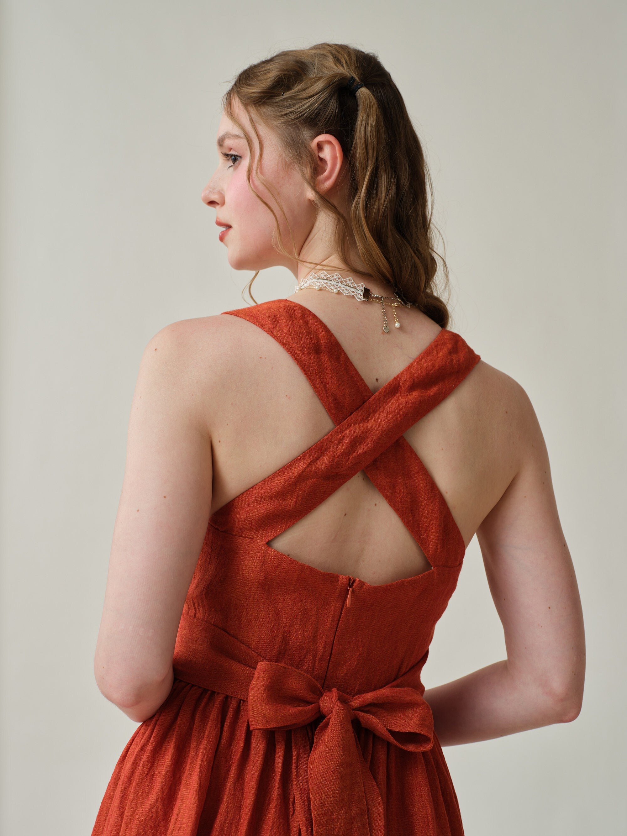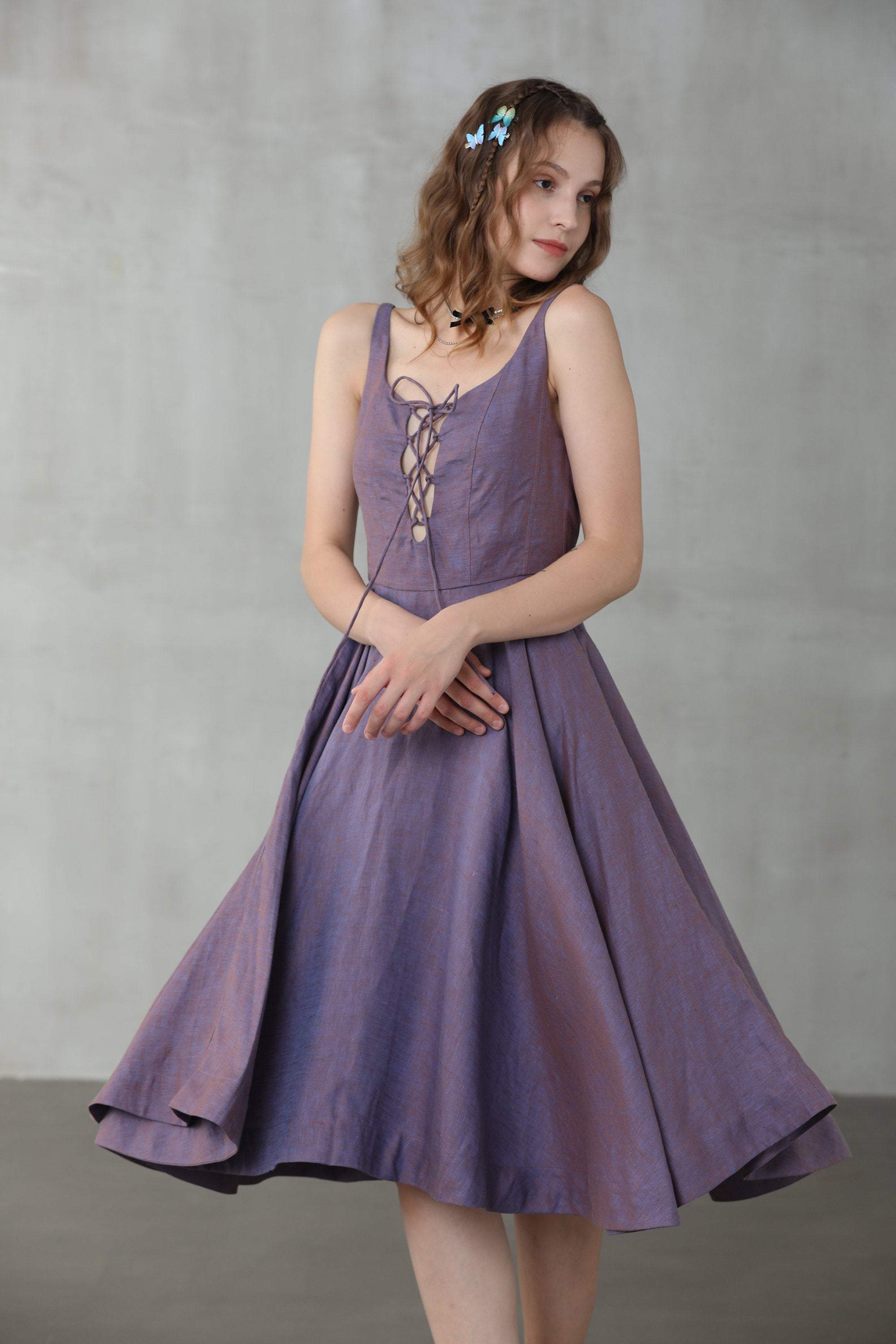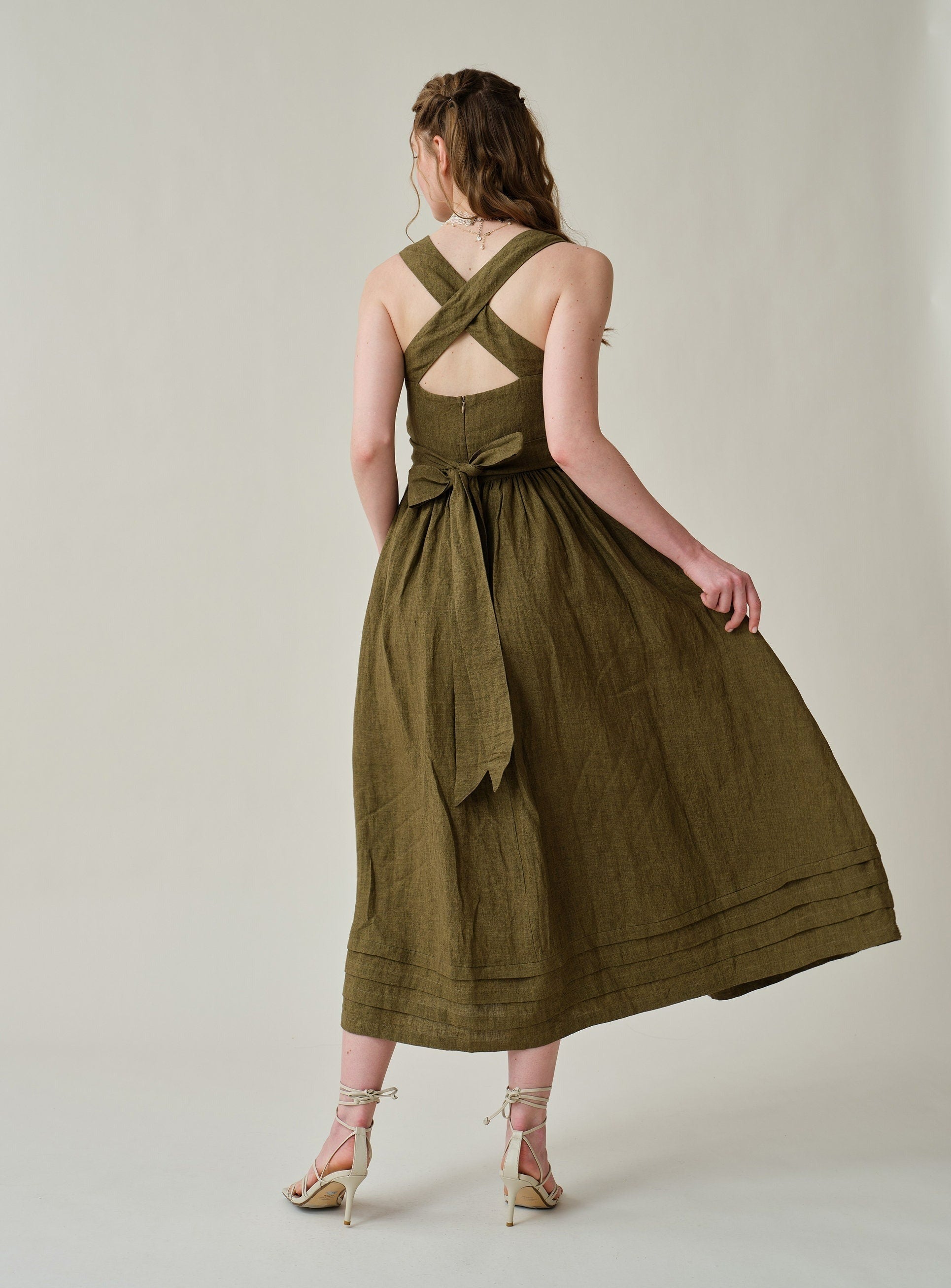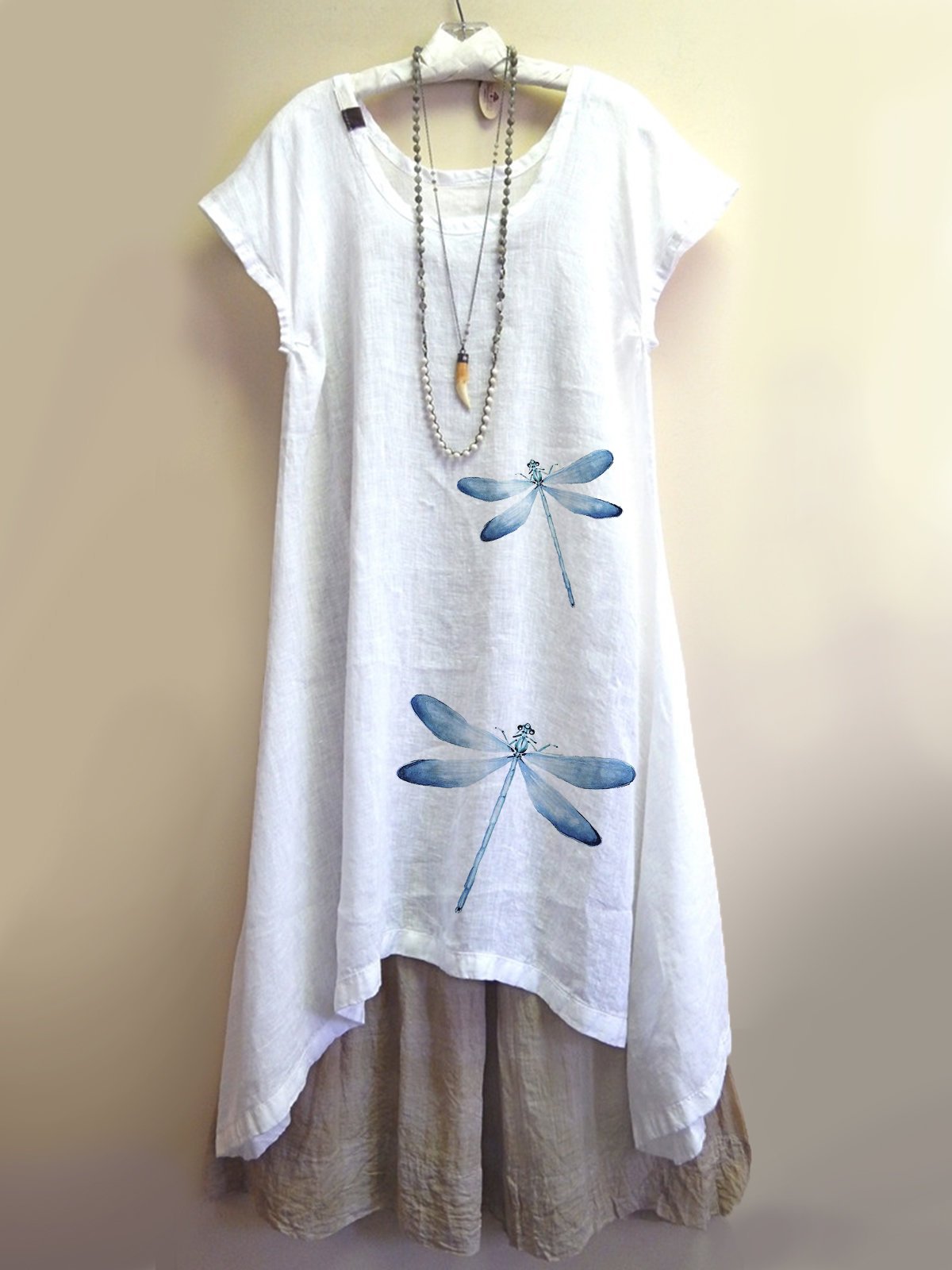 Vintage 3/4 Sleeve Plain V Neck Casual Weaving Dress
