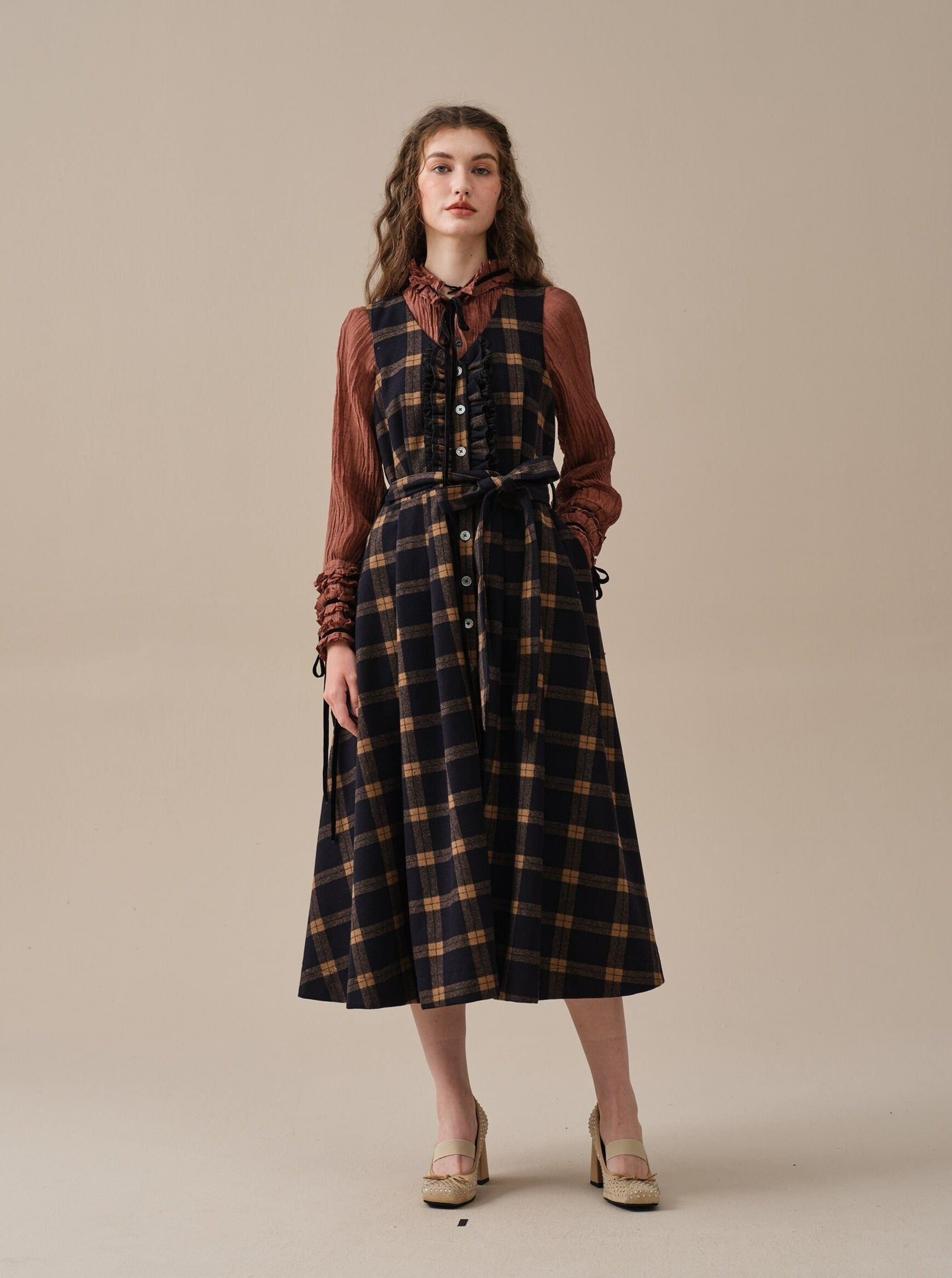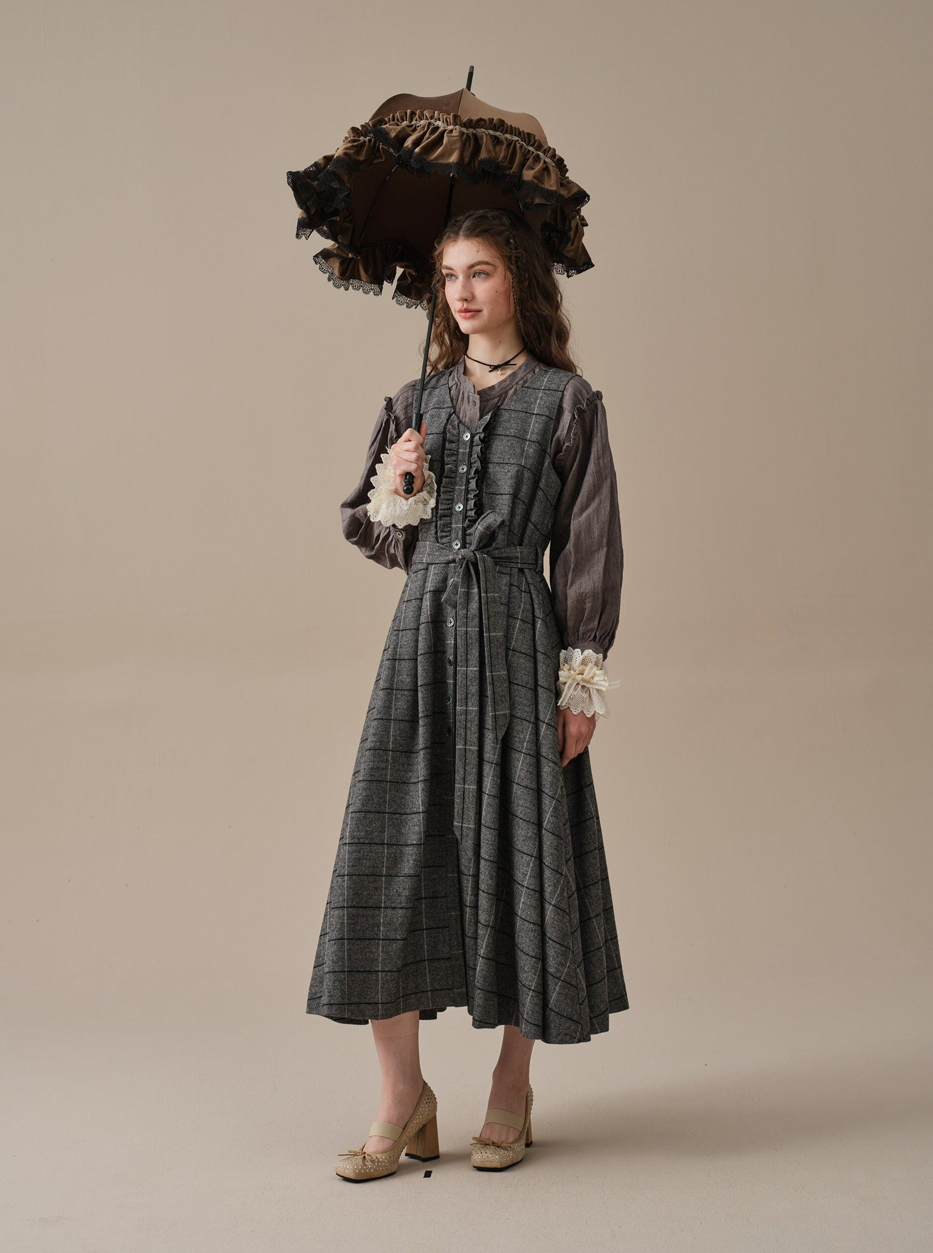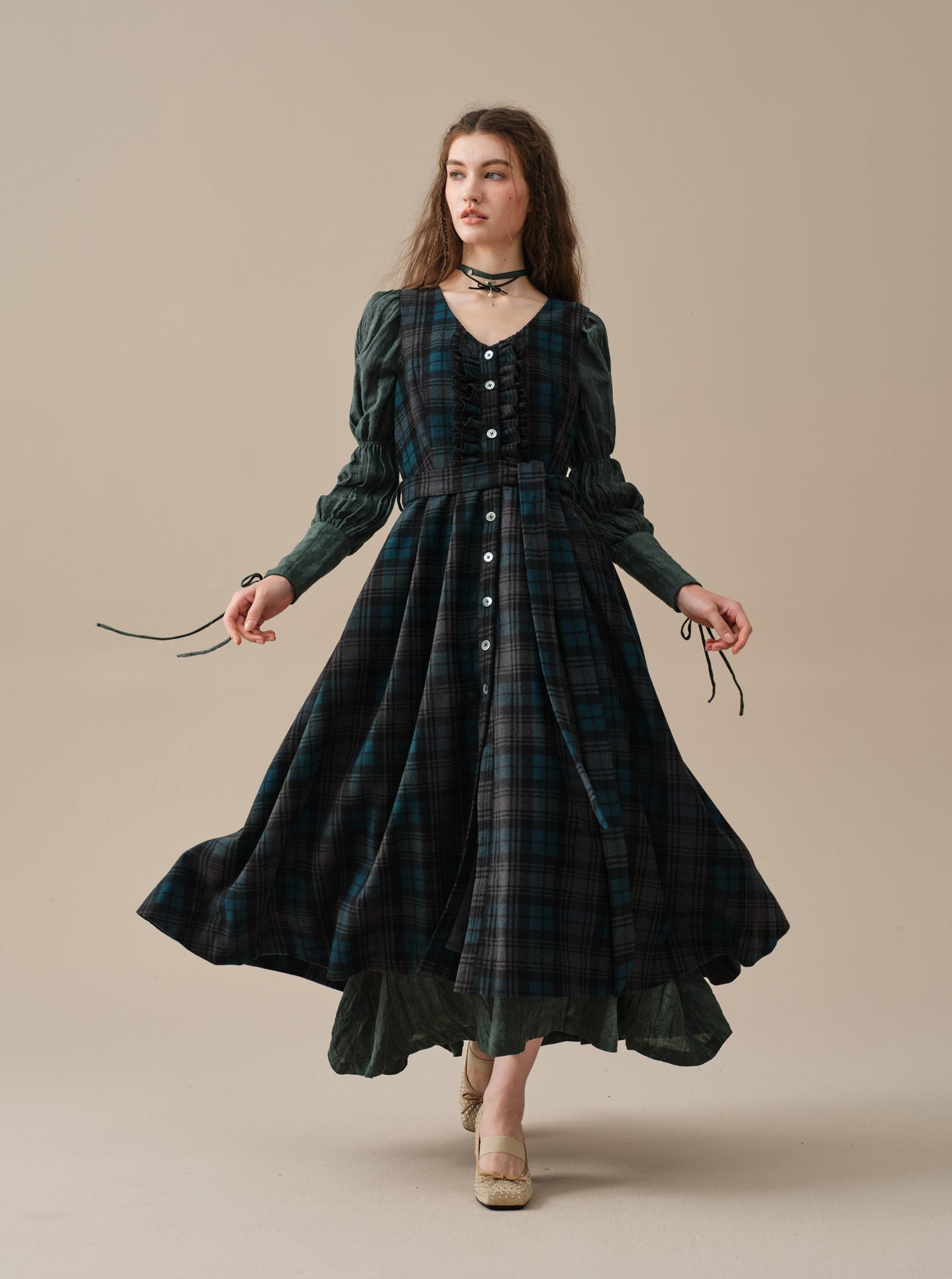 Vintage Long Sleeve Side Pocket Maxi Dress