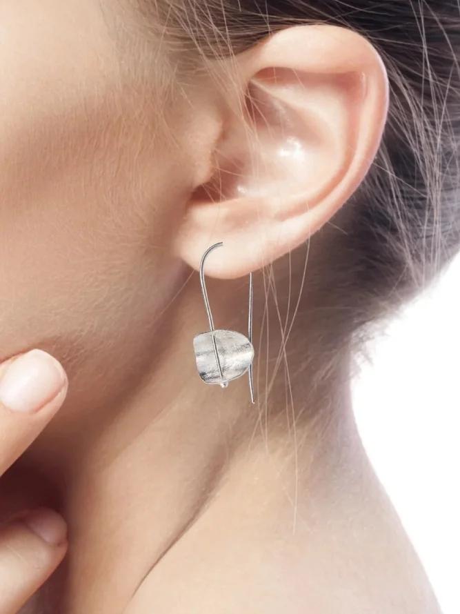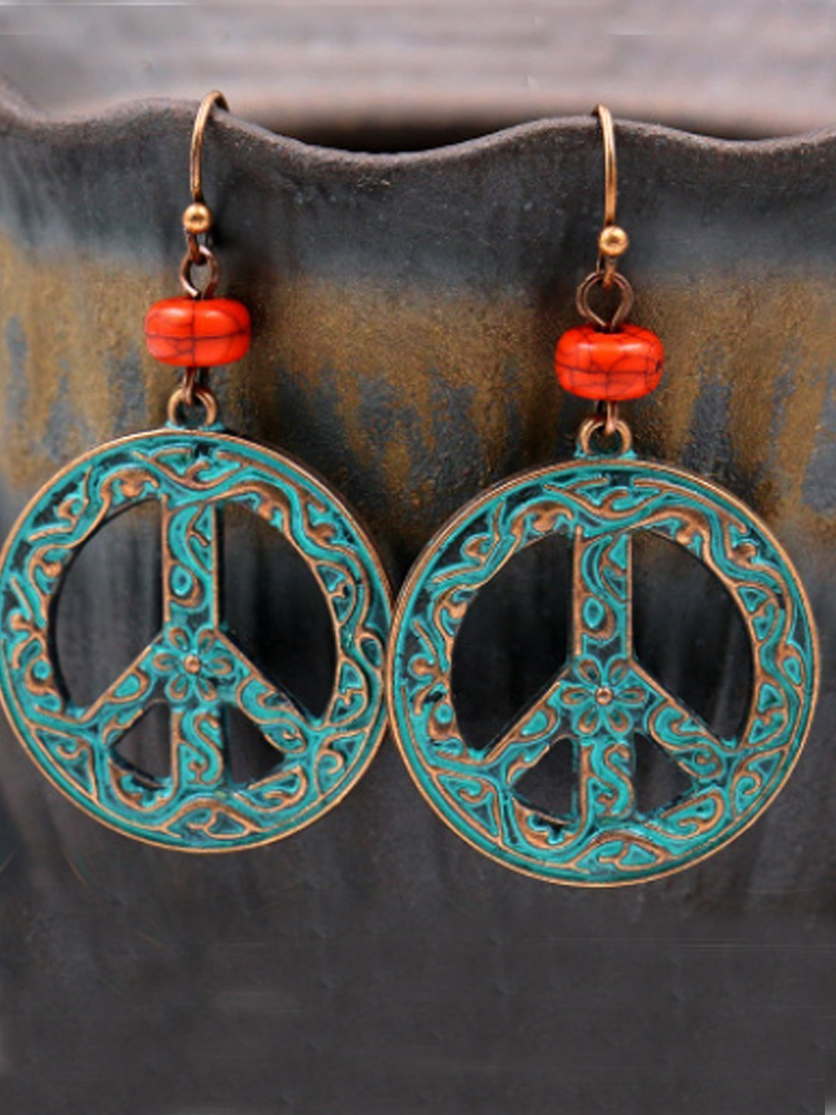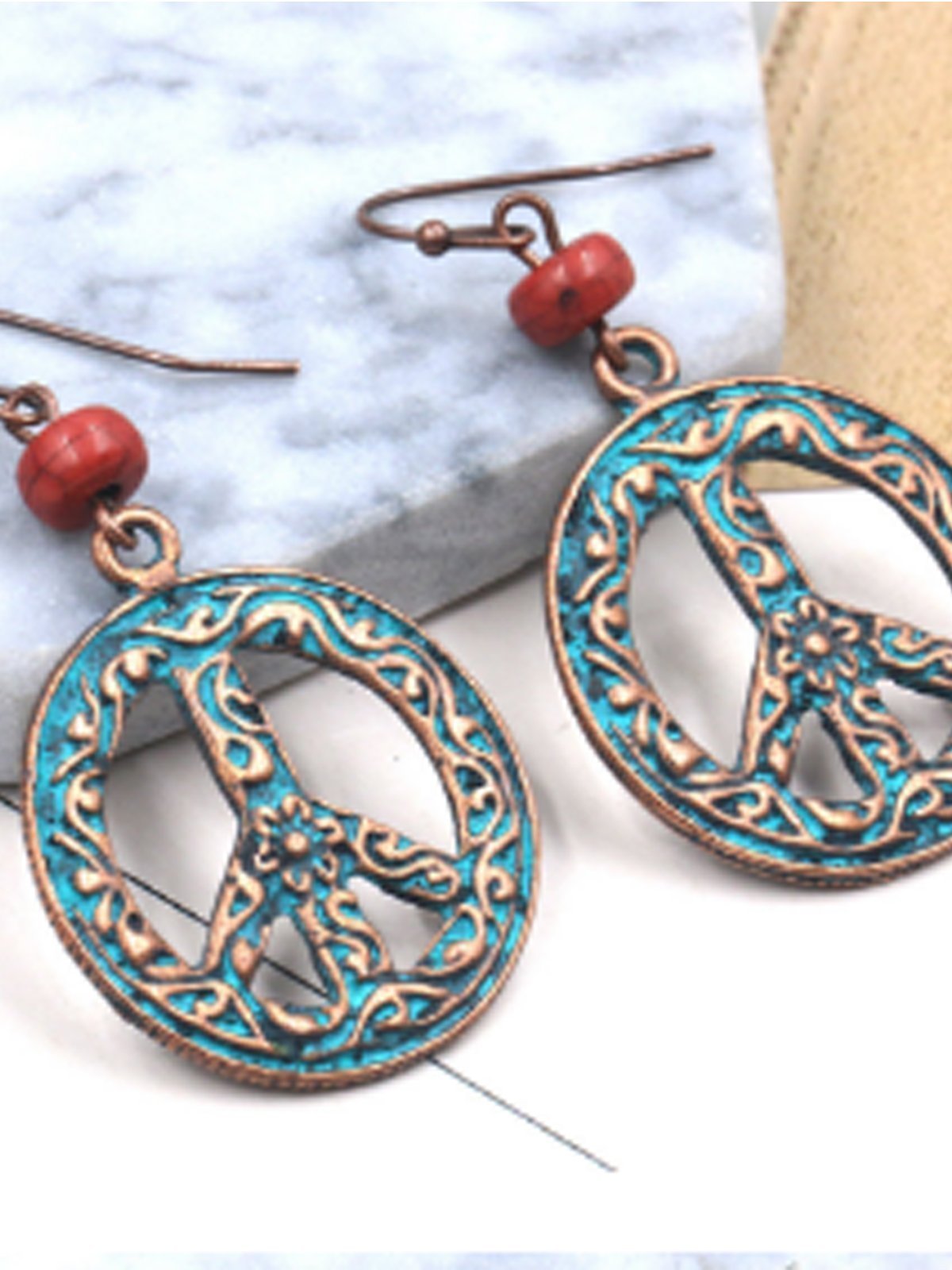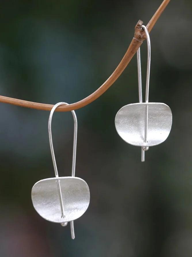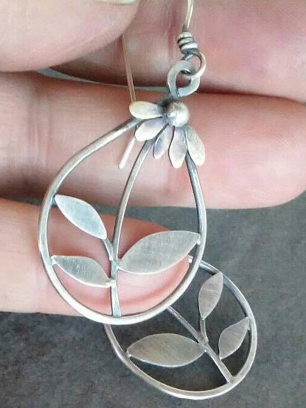Vintage Style Silver Metal Distressed Floral Pattern Earrings Ethnic Jewelry
