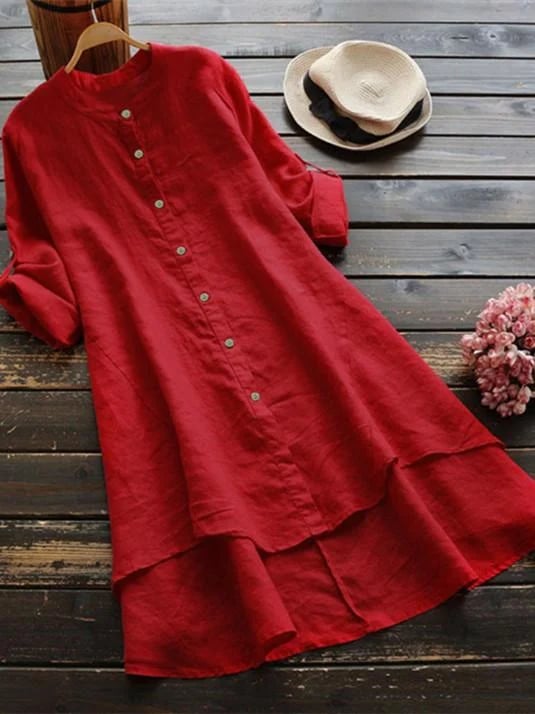 Women's Casual Solid Color Irregular Stitching V-Neck Dress