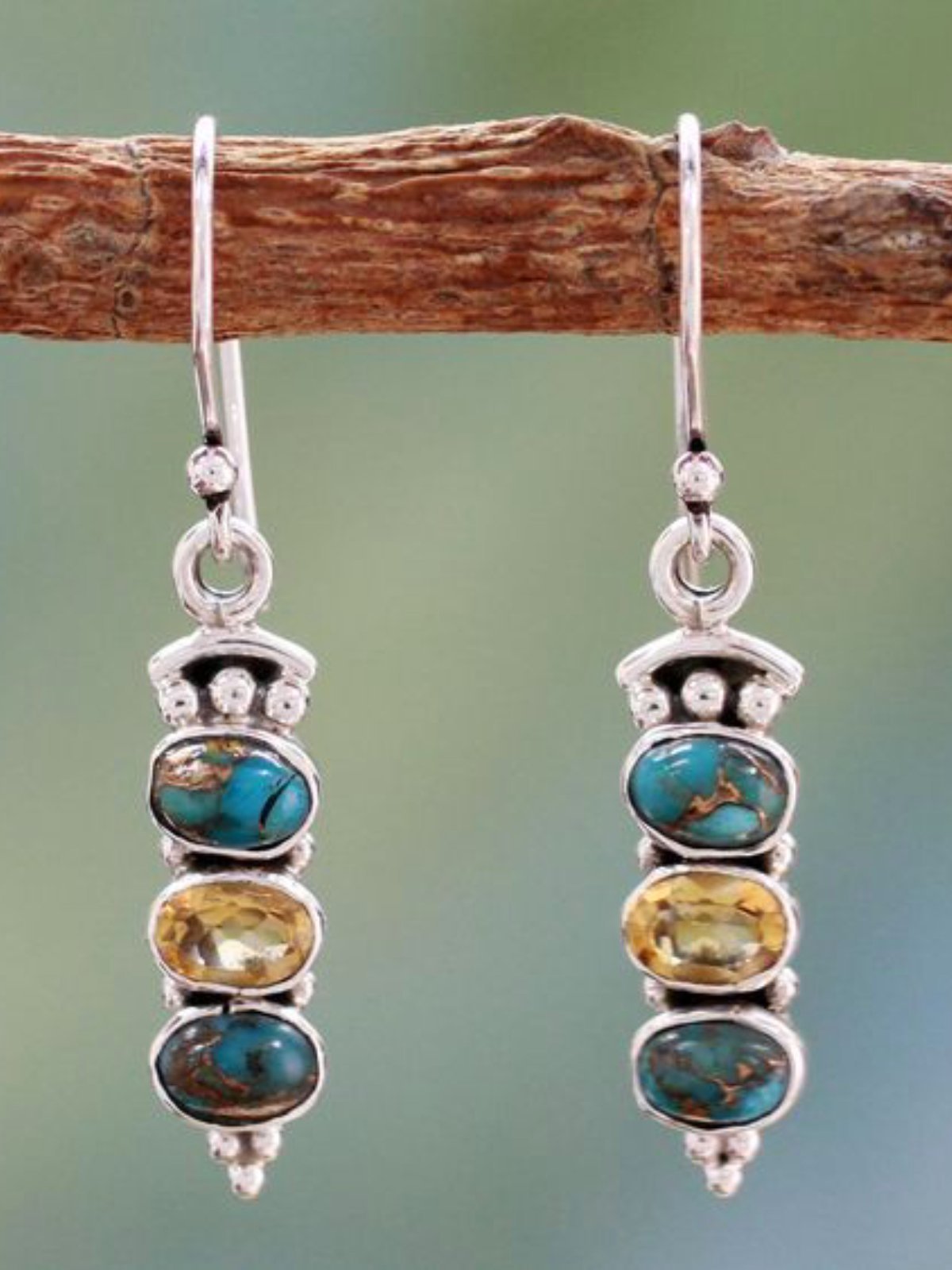 Vintage Silver Floral Earrings Bohemian Ethnic Style Dress Women Jewelry