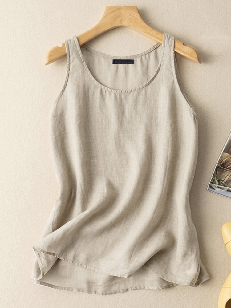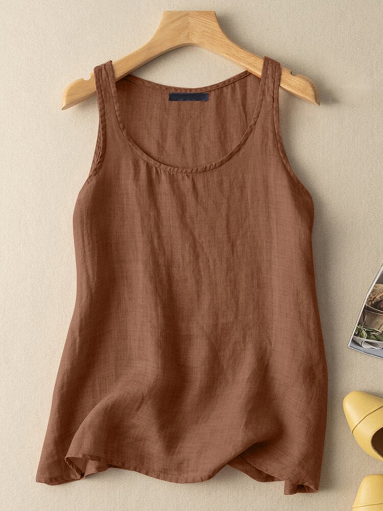 Solid Round Neck Sleeveless Casual Cotton Tank Top