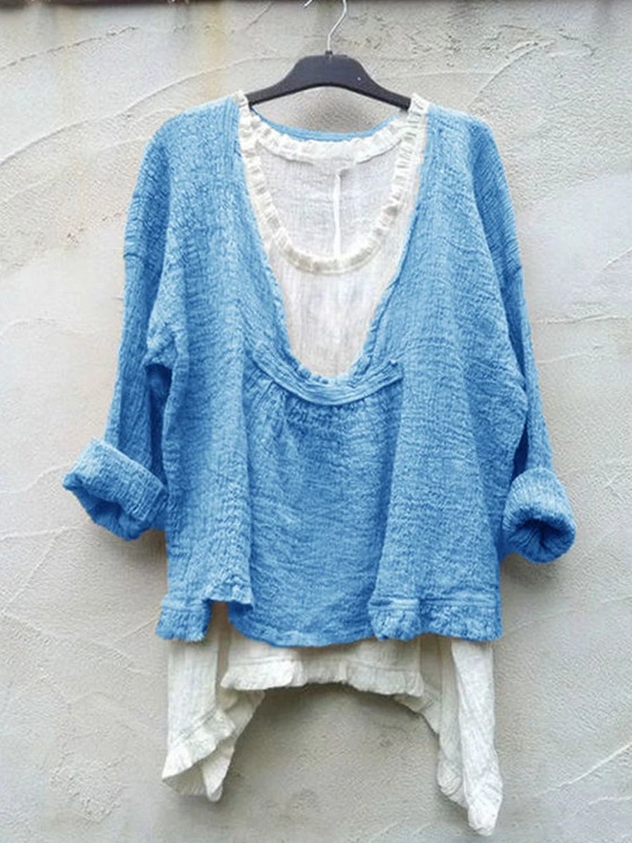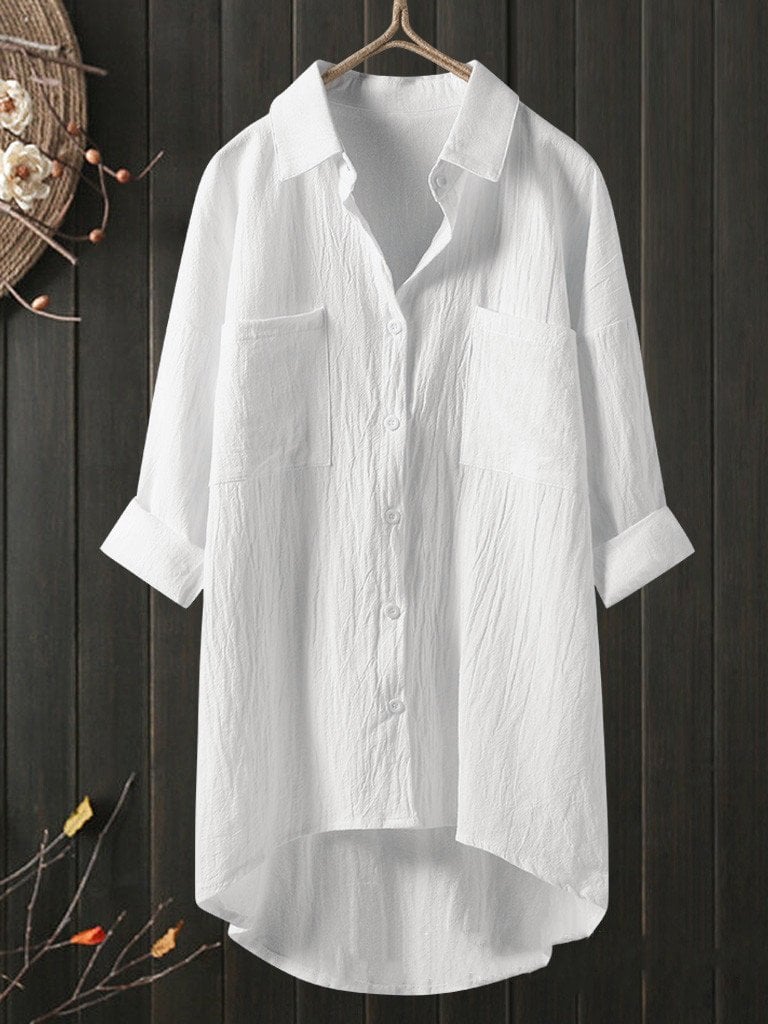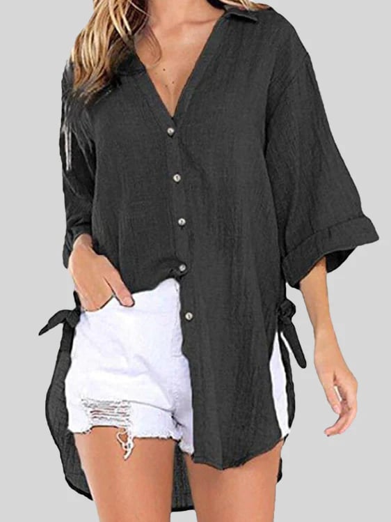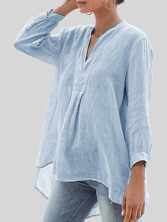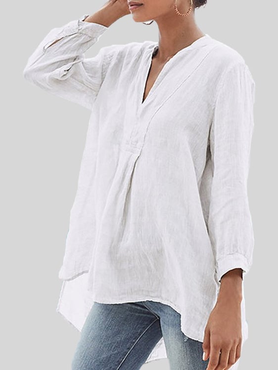 Solid Color V-Neck Front Short Back Long Bracelet Sleeve Fashion Shirt