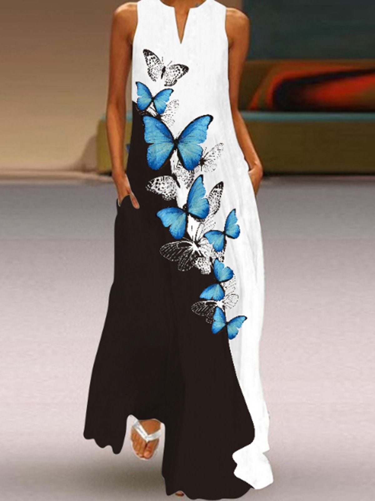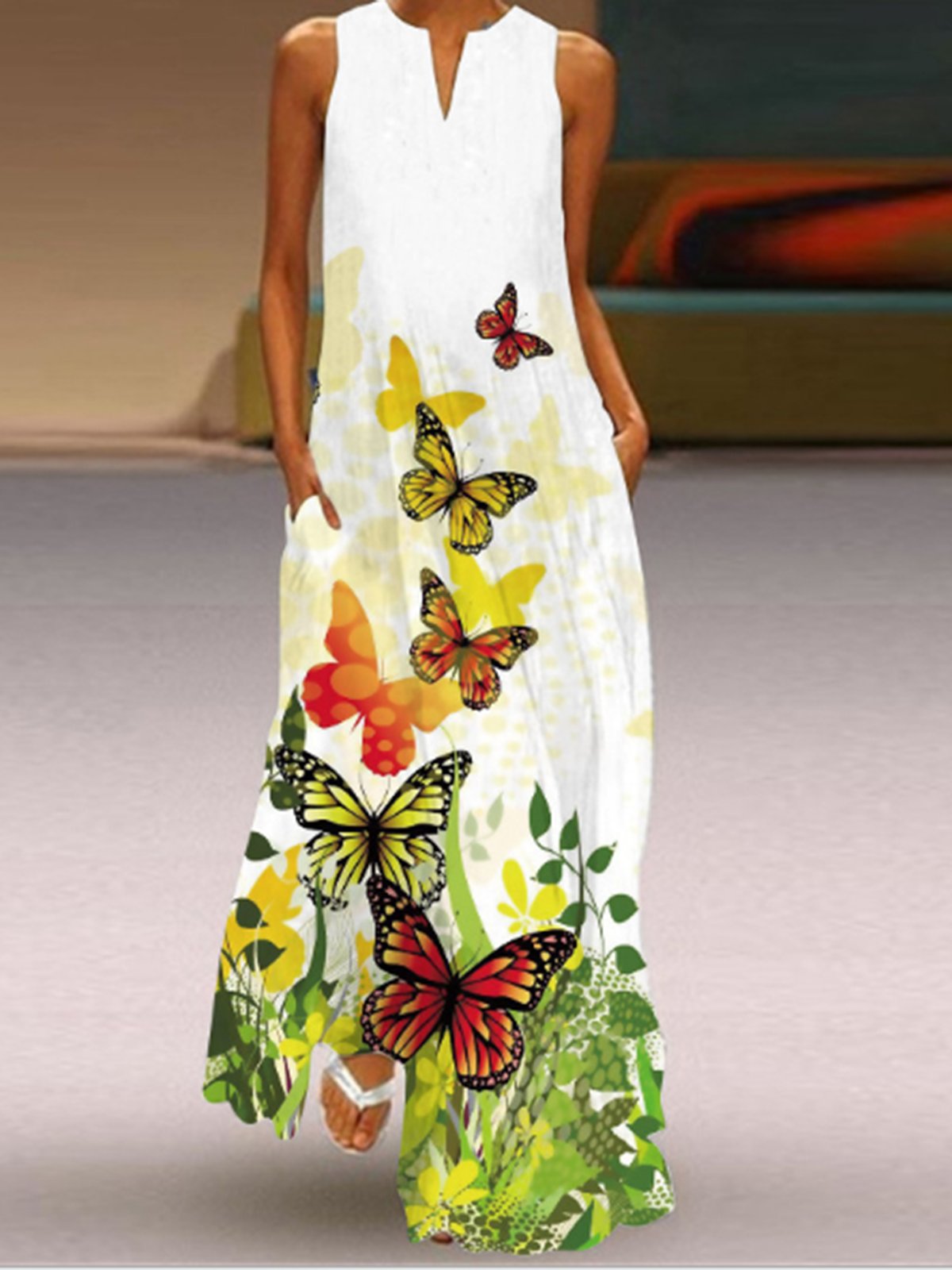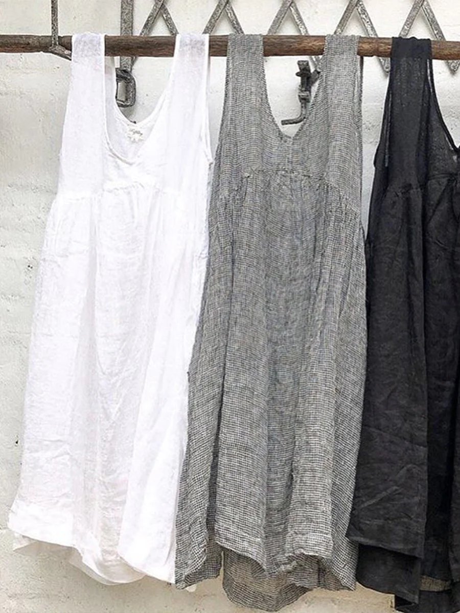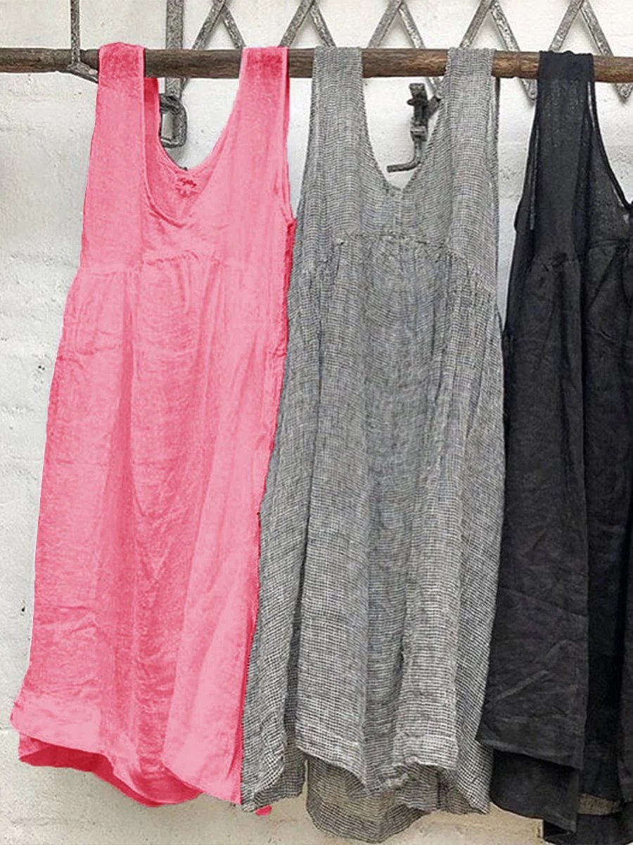 Solid Color Sleeveless Loose Cotton Linen Pocket Dress