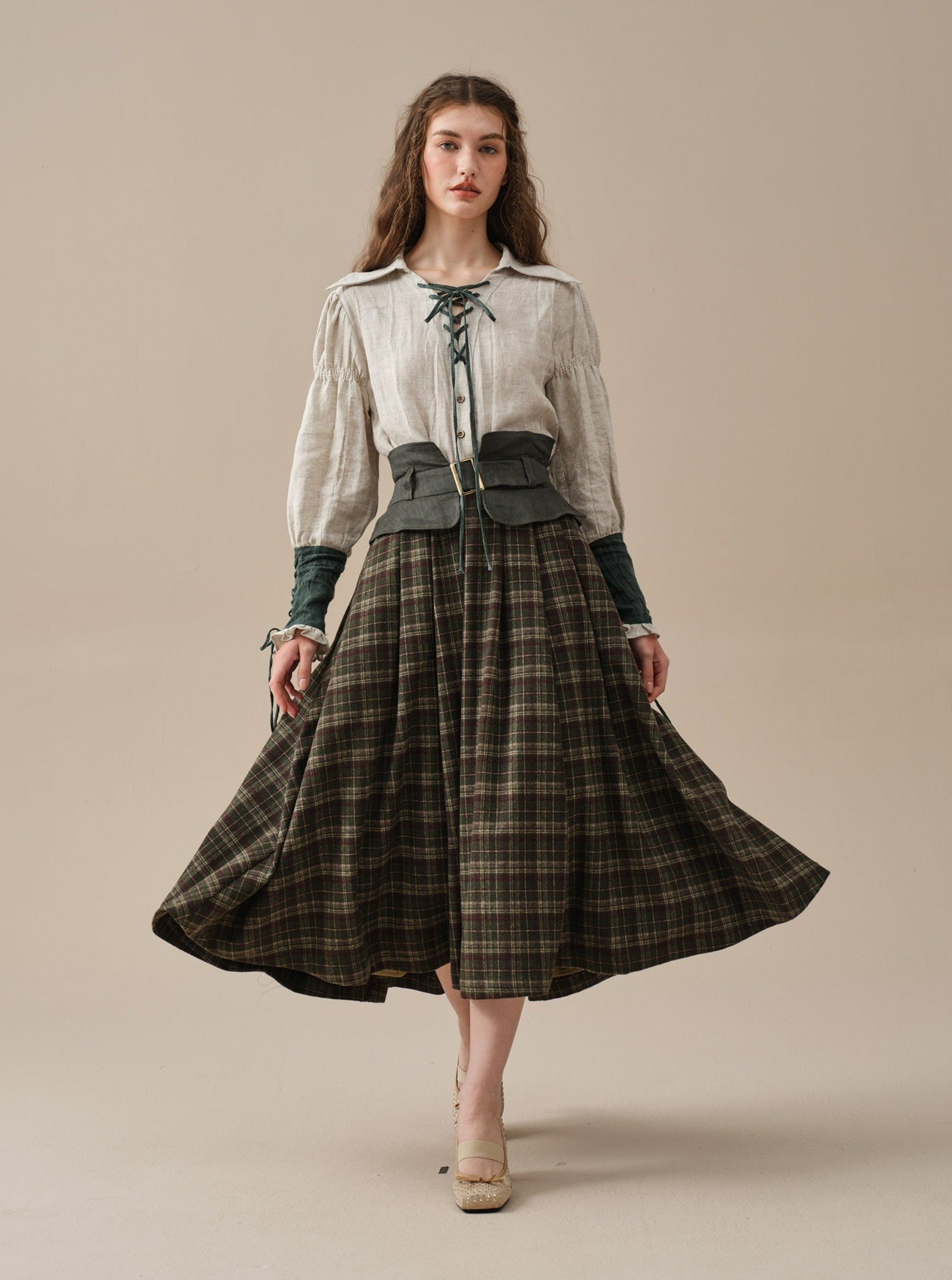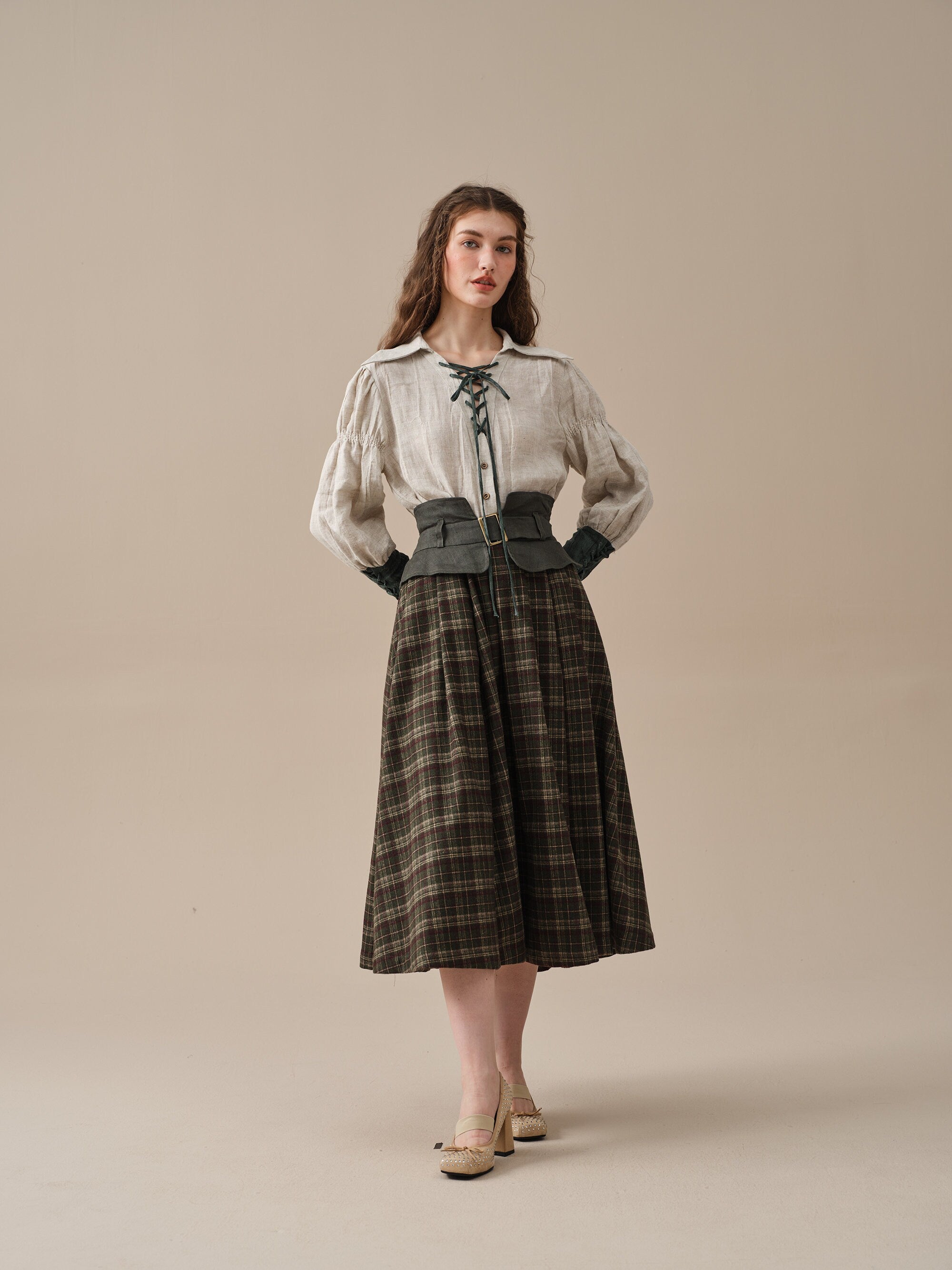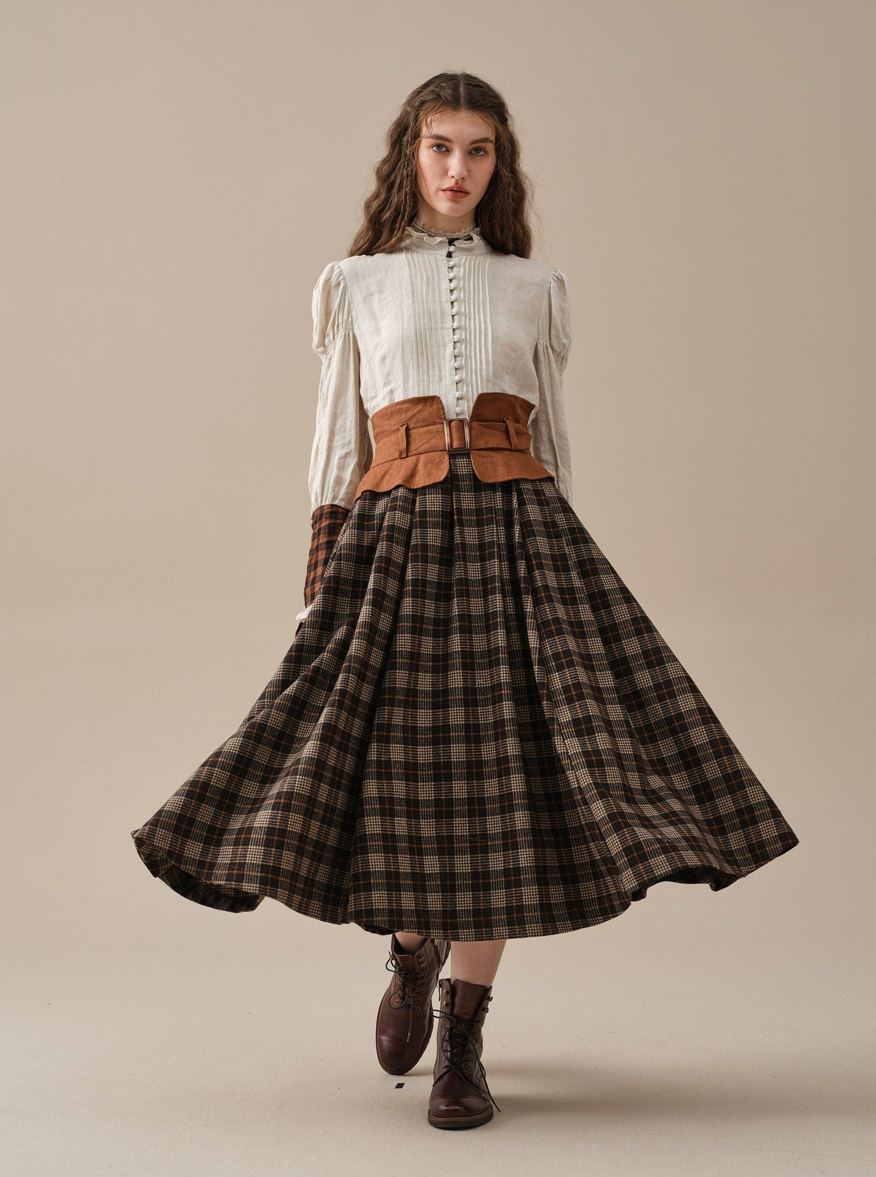 the Great Perhaps 2 | Tartan Wool Skirt in brown